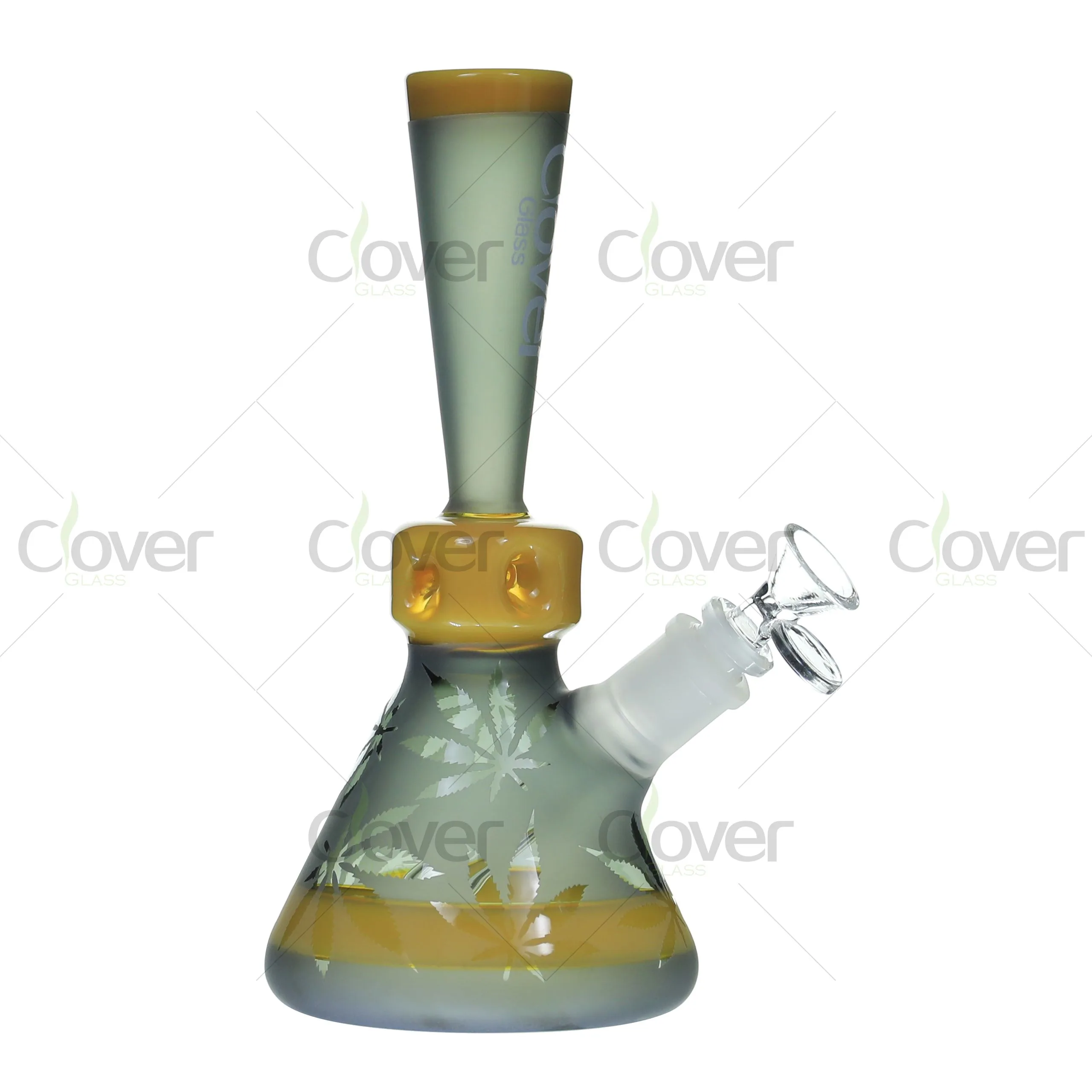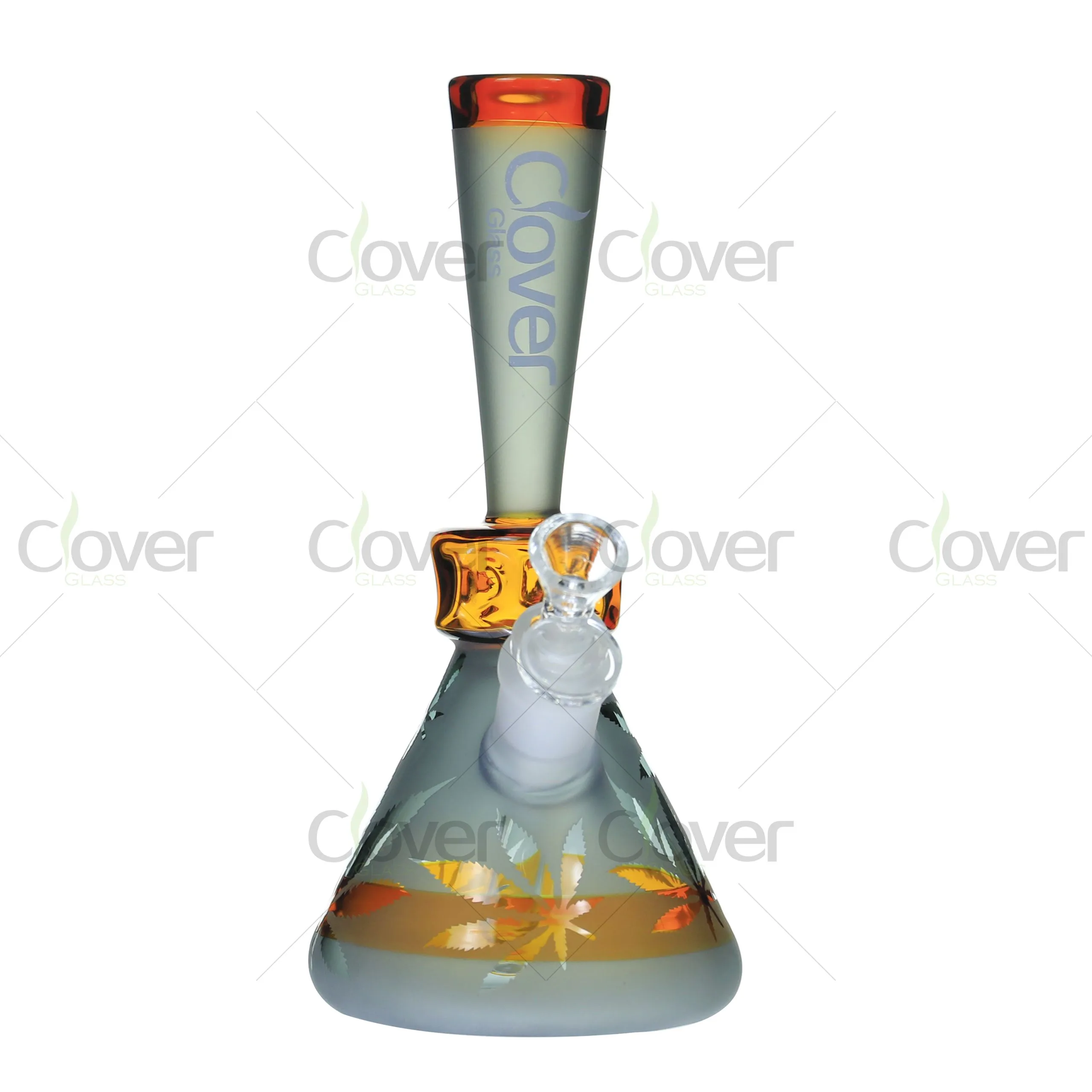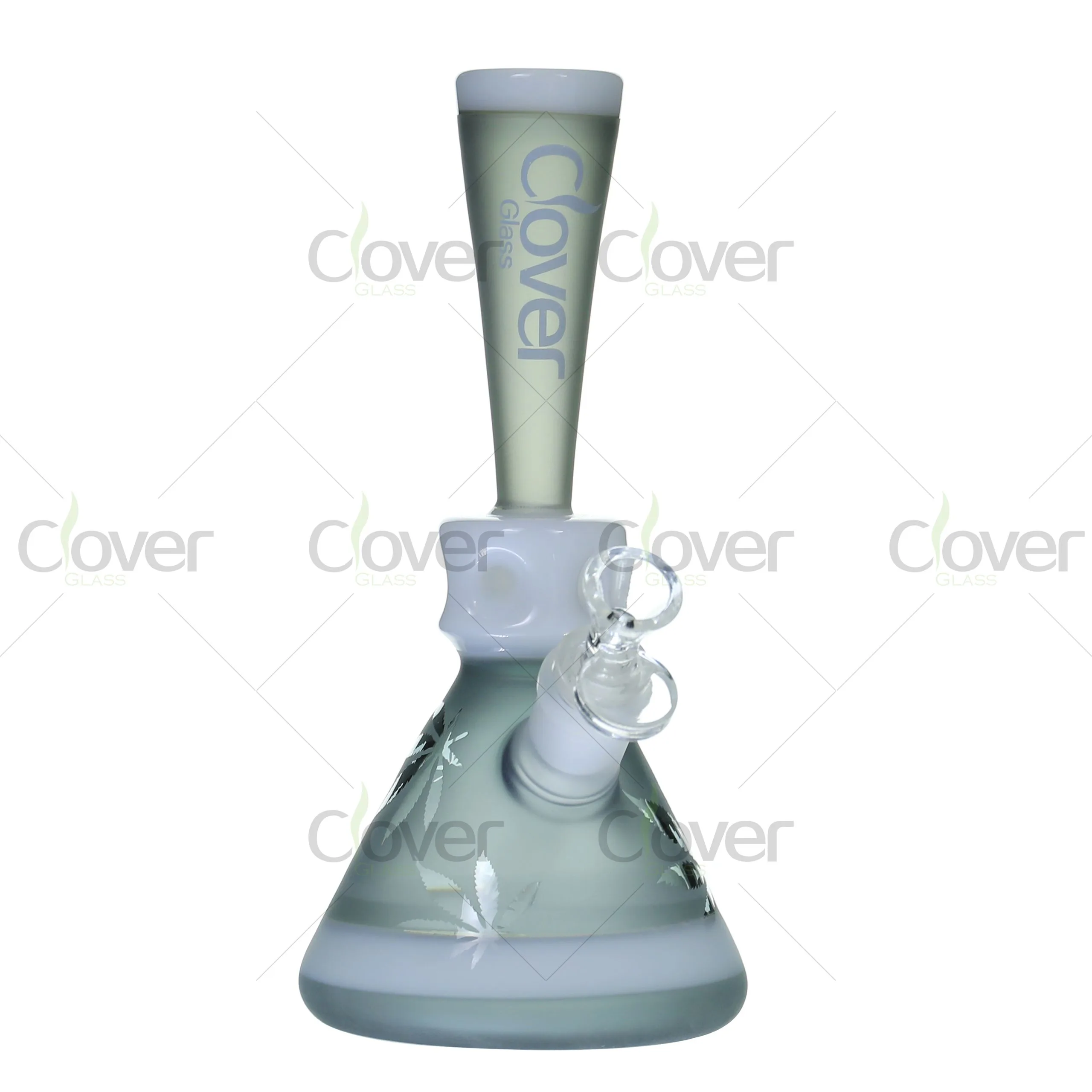 10.24″ Frosted Leaf Beaker Bong with Ice Catcher – 5mm Thick – Clover Glass