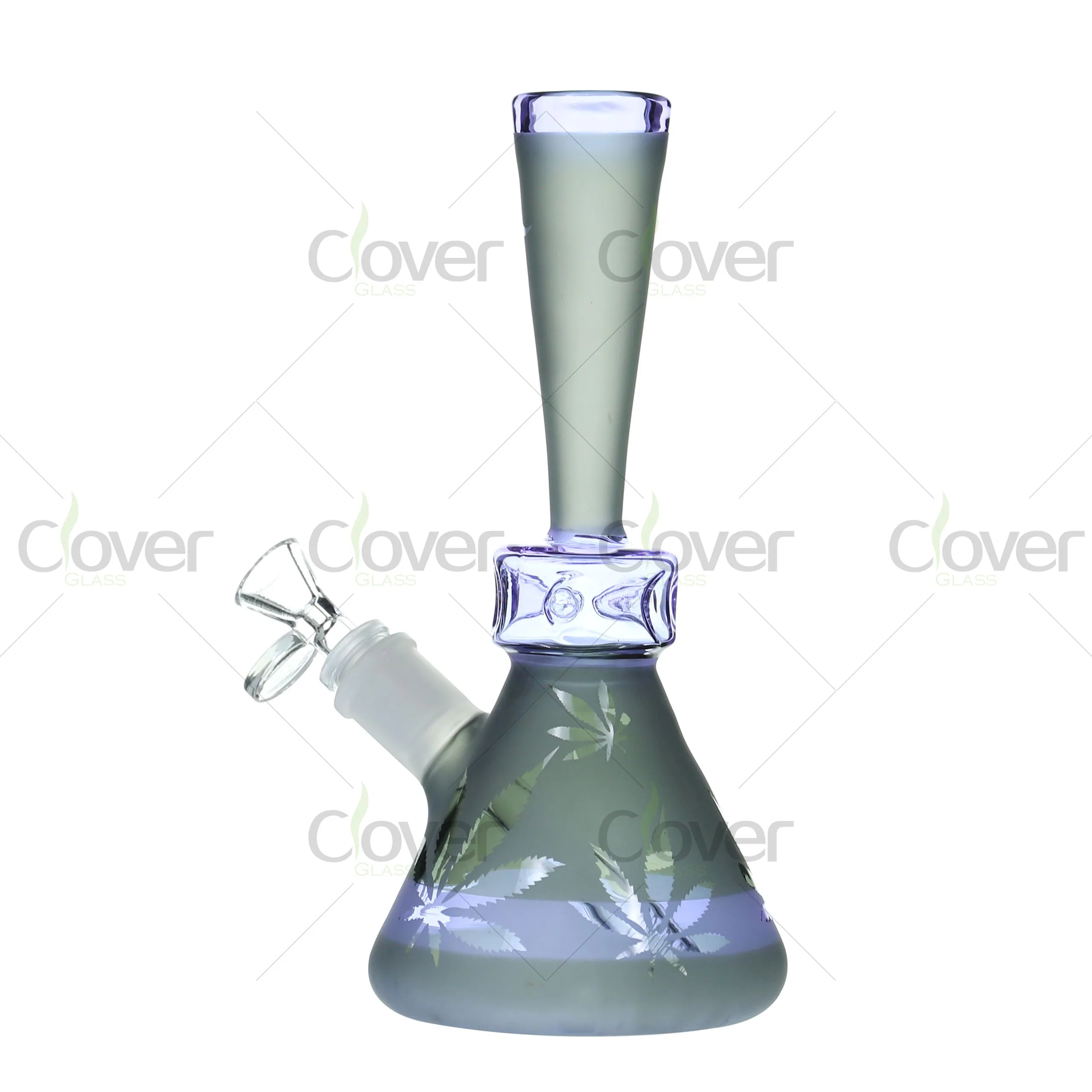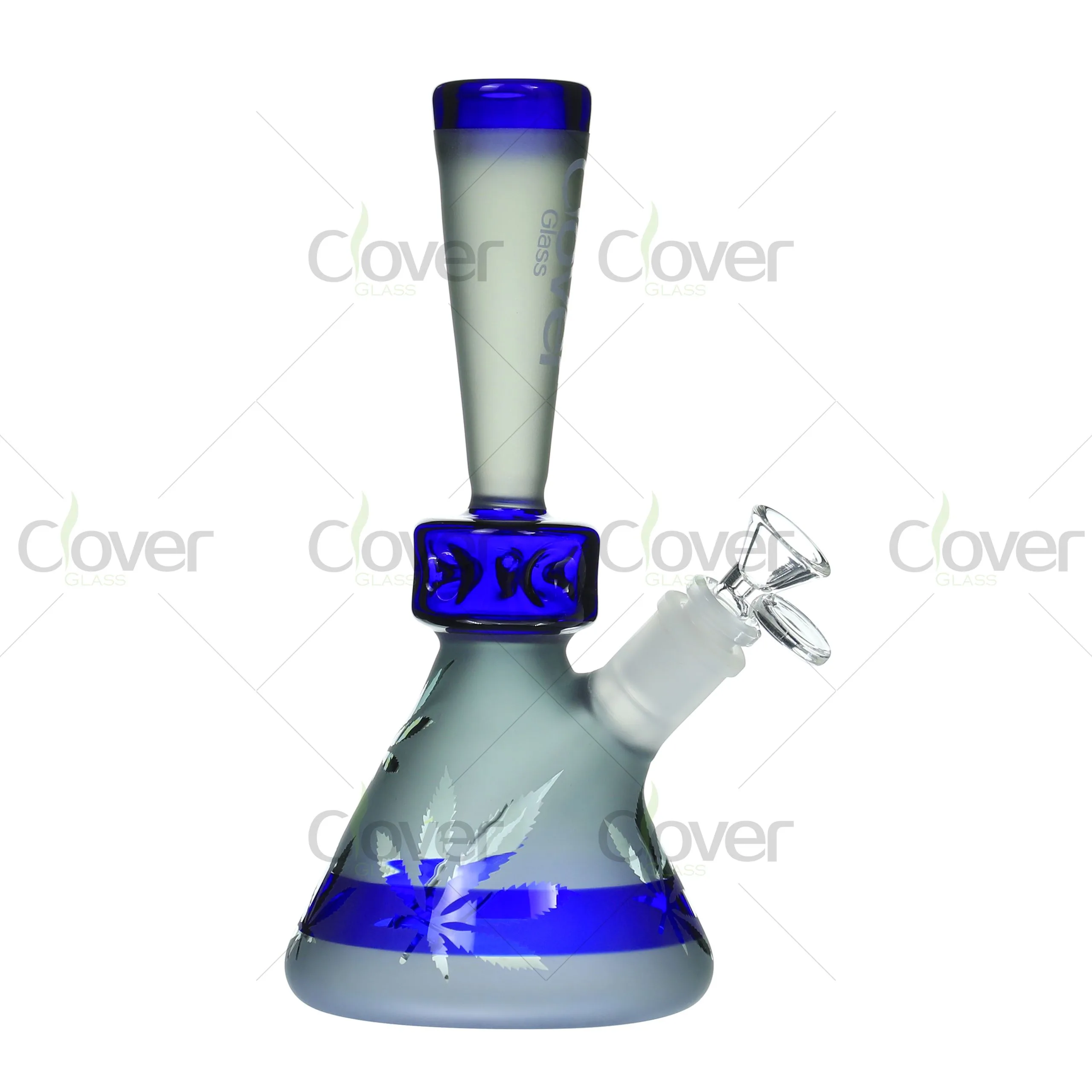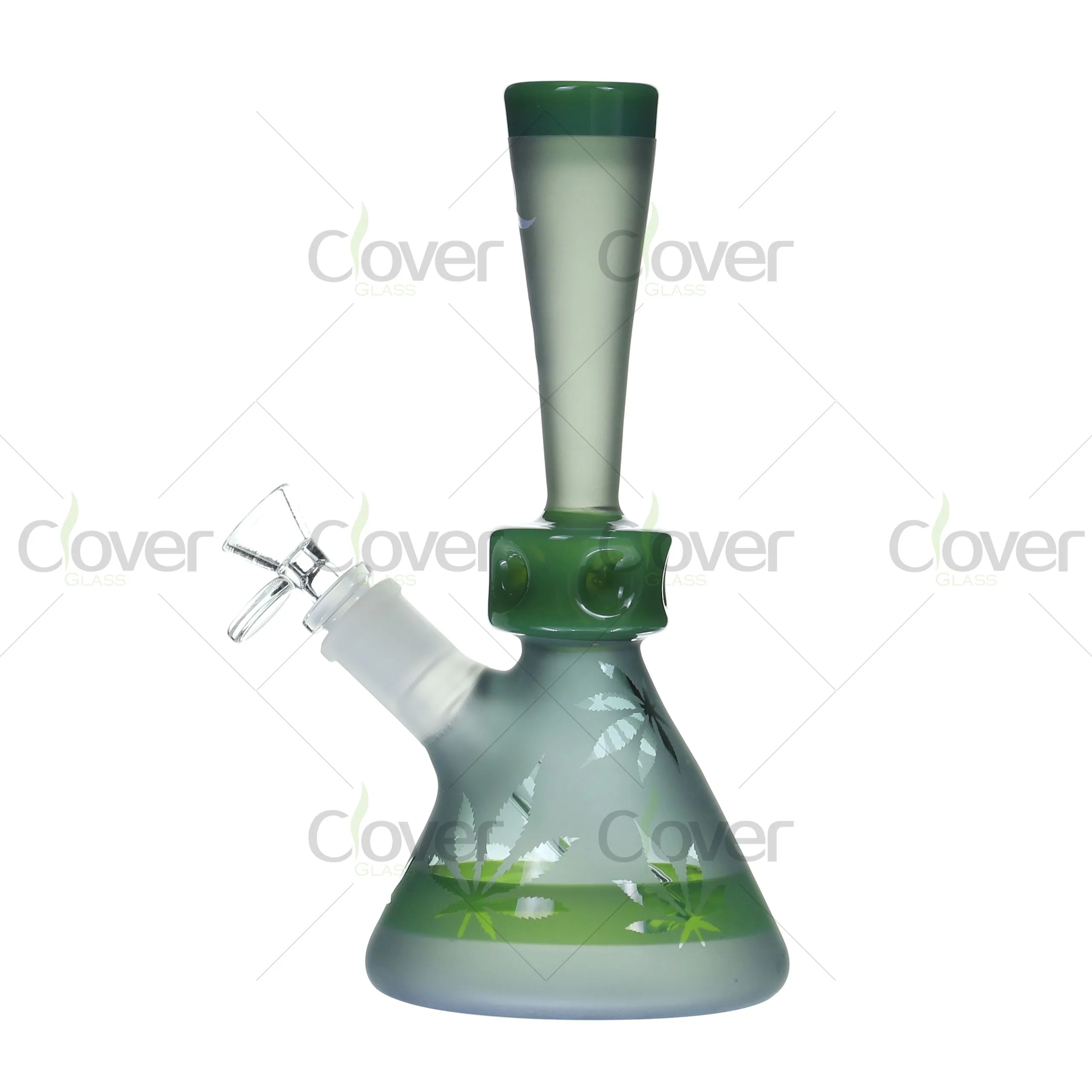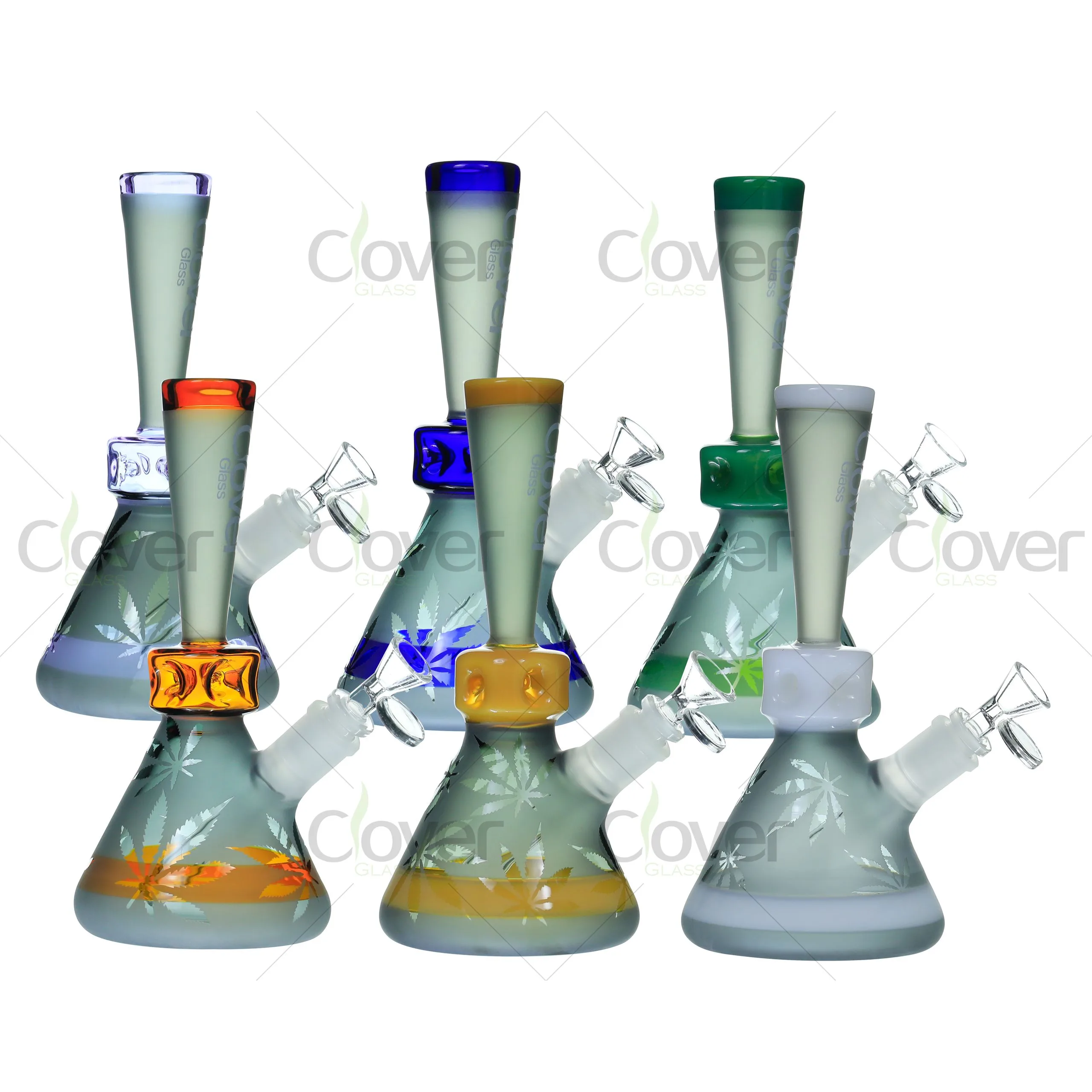 10.24″ Frosted Leaf Beaker Bong with Ice Catcher – 5mm Thick – Clover Glass