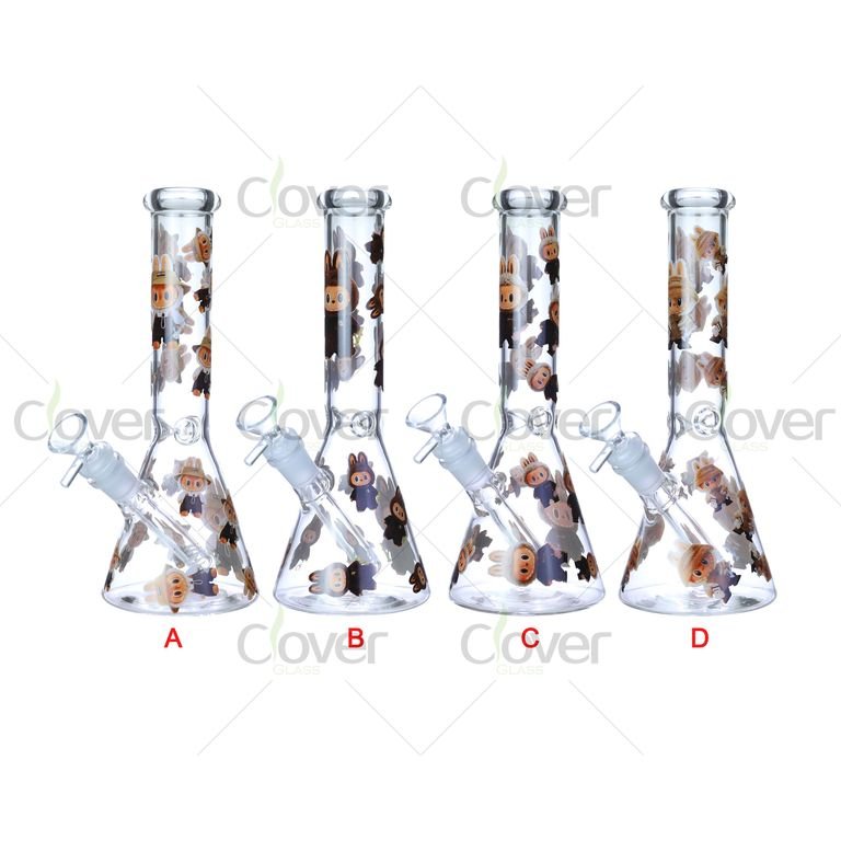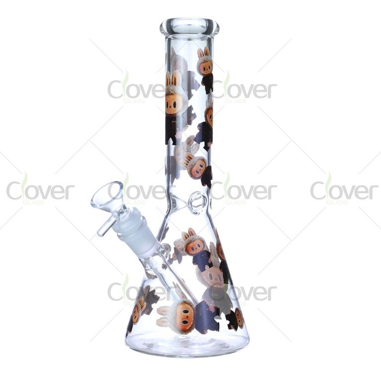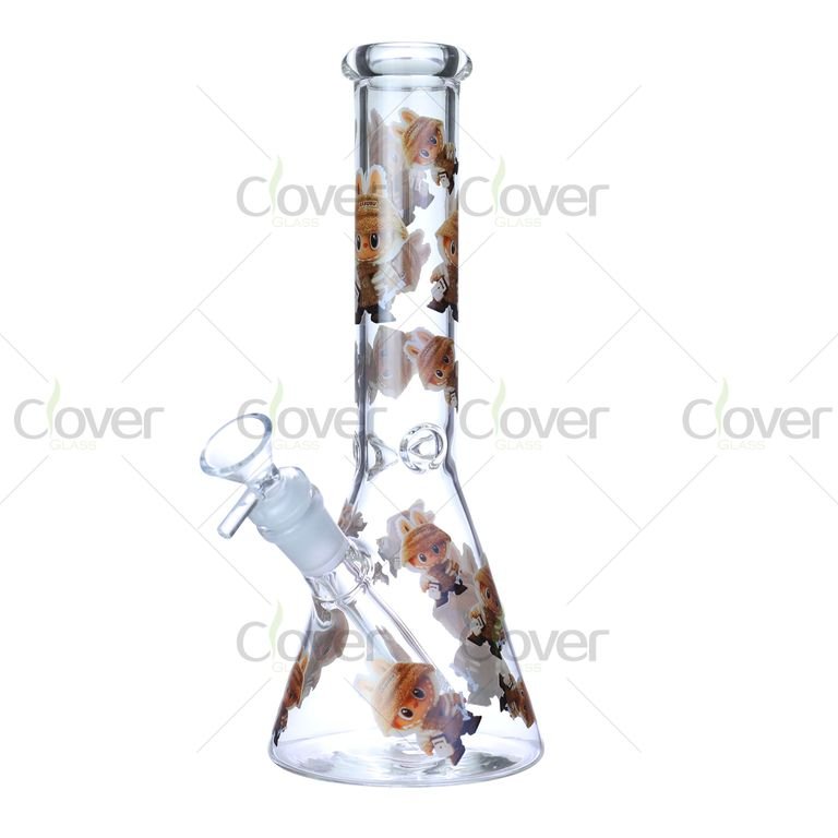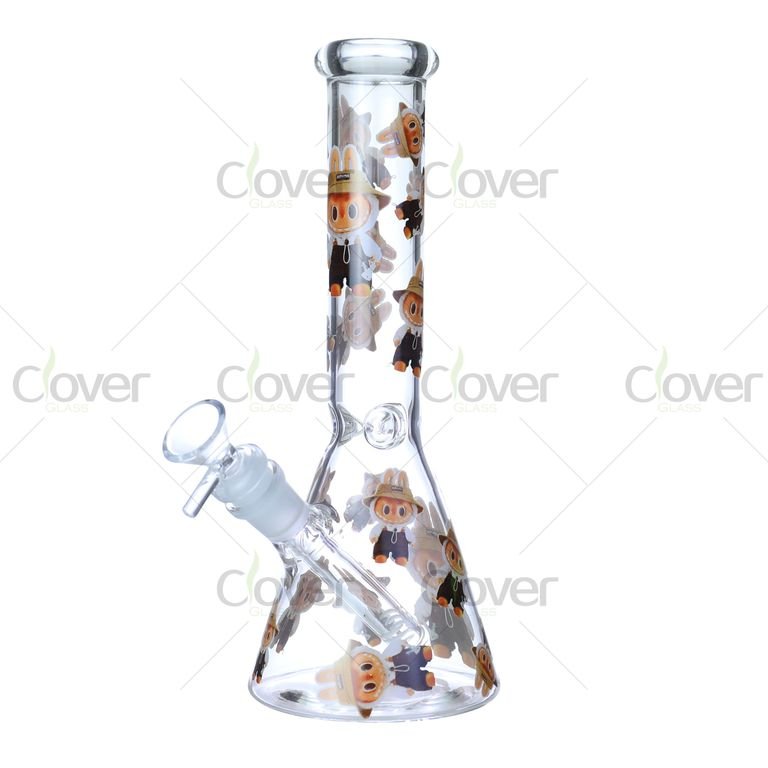 Add a touch of fun to your smoke shop collection with this 10-inch cartoon-themed beaker bong. Each piece is made from durable 5mm thick borosilicate glass, printed with cute character decals that appeal to younger customers, casual users, and collectors. The classic beaker base improves stability and holds more water for smoother hits, making it practical as well as playful.