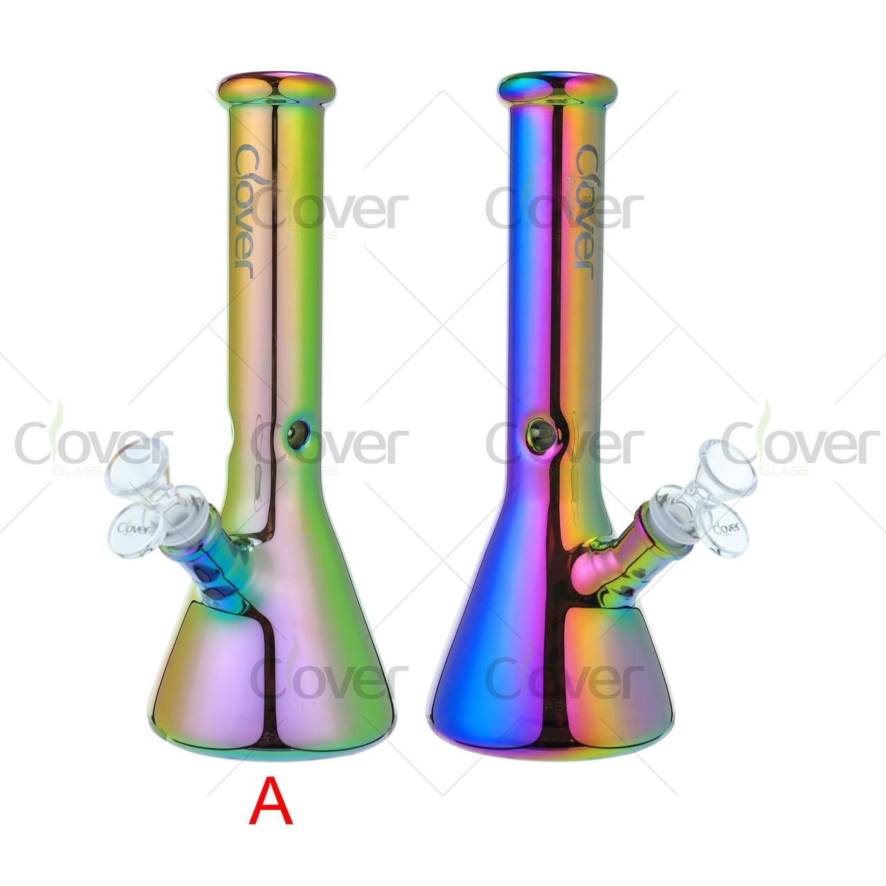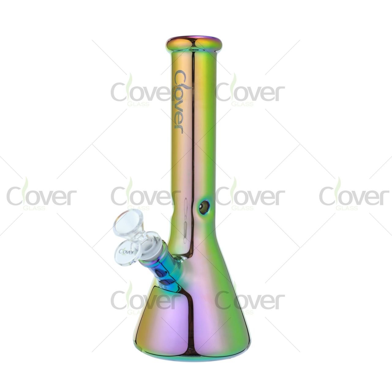 Turn heads with this full-body electroplated rainbow beaker water pipe, designed for customers who want maximum color and shine. Standing 10 inches tall, this piece is crafted from 5mm thick borosilicate glass and finished with a highly reflective, multicolor metallic coat — creating a futuristic, premium look that pops on any shelf or website.