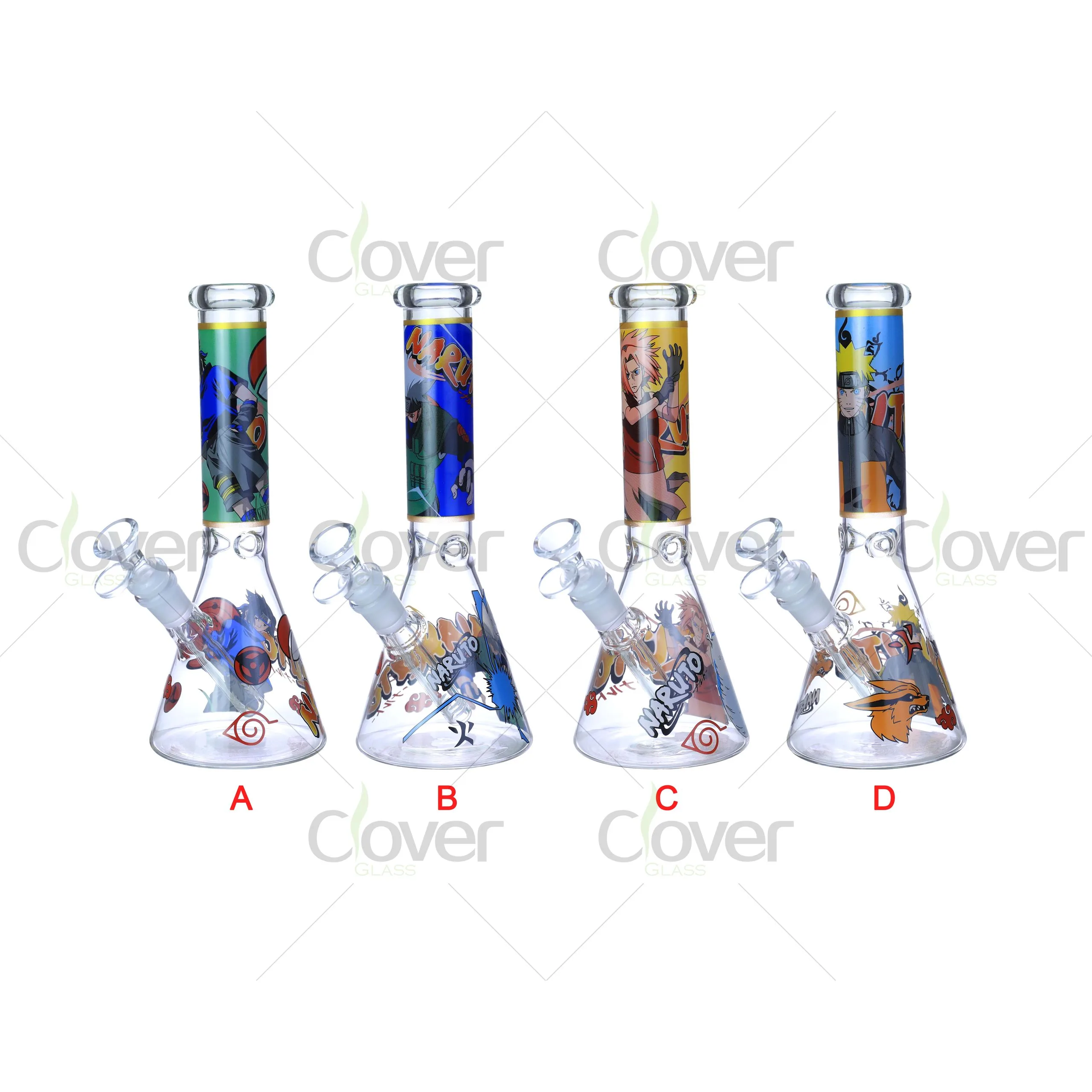 Tap into fan culture with Clover’s Anime Beaker Bong Series, featuring Naruto-style ninja artwork across four collectible variants (A–D). These 10 inch glass bongs are wrapped in action-packed illustrations that anime fans instantly recognize—making them perfect for shops targeting a Gen Z & pop culture audience.