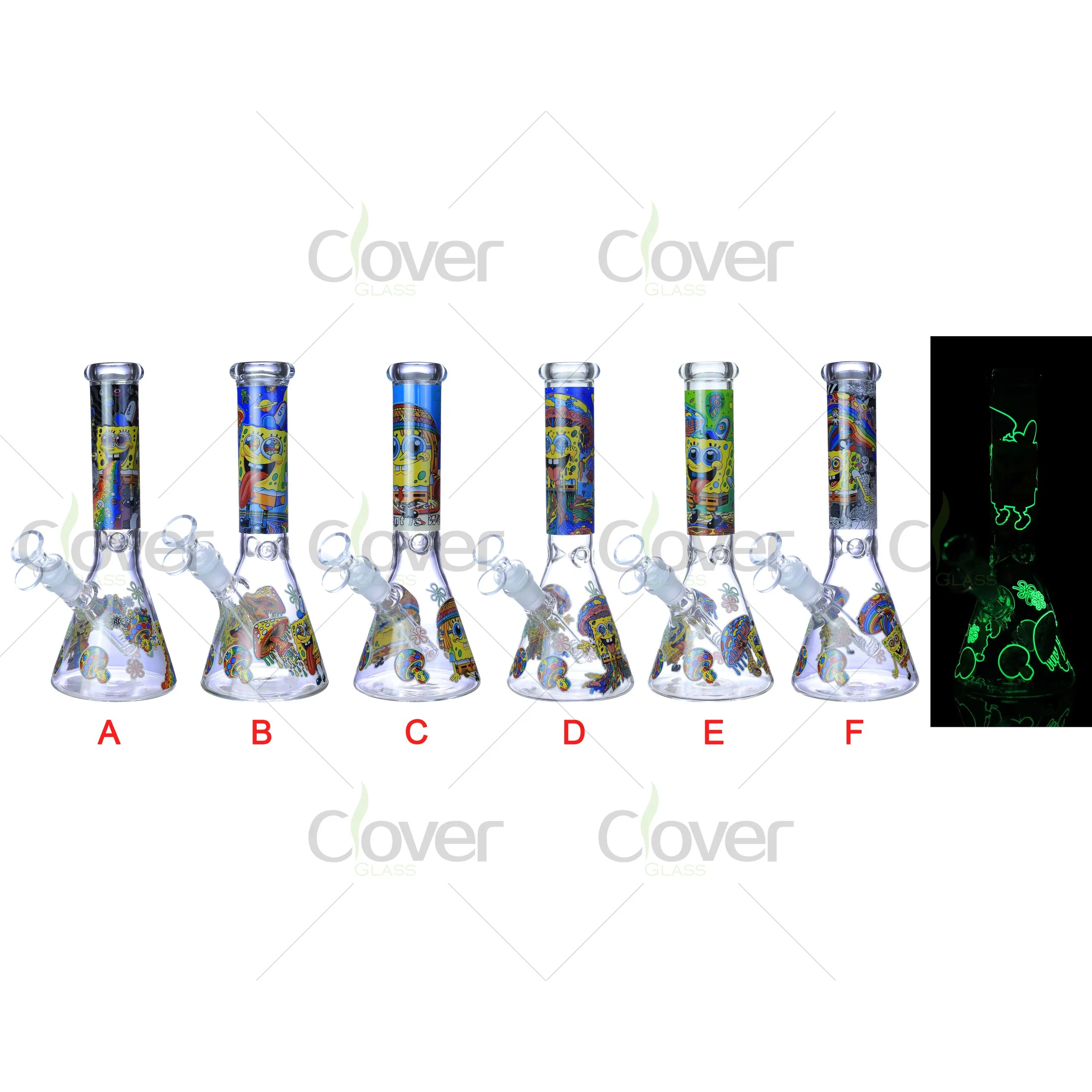 Catch attention—and customers—with the Glow Cartoon Beaker Bong Series (A–F), inspired by beloved characters and rendered in a fun, collectible cartoon style. Wrapped in bold, colorful designs that glow under blacklight, these 10 inch water pipes are built to perform and made to sell.