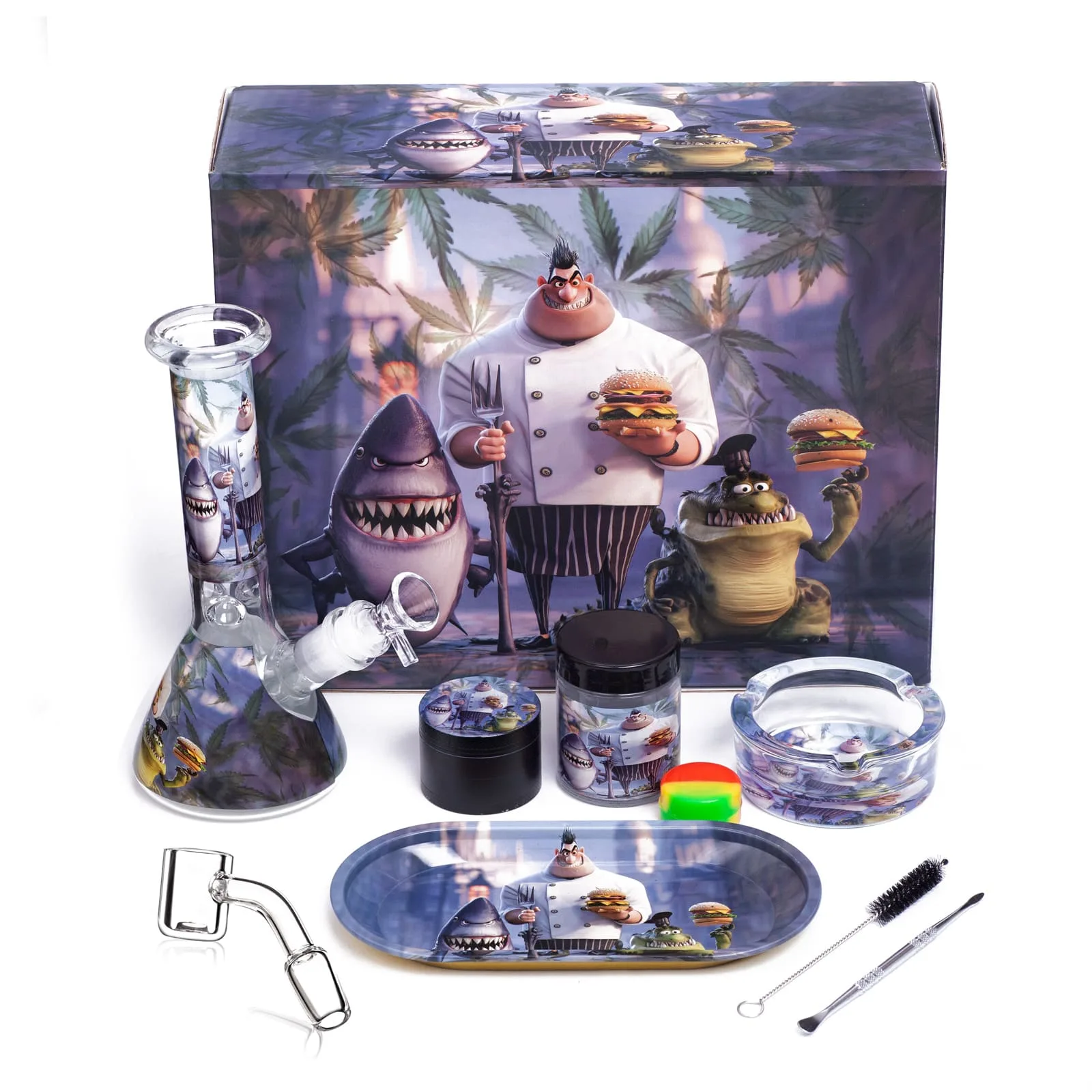 Bring the heat — and the burgers — with the bold “Burger Gang” Cartoon Gift Box Set. This playful, mob-inspired design stars a crew of intimidating (yet hilarious) characters and includes a matching 8-inch glass water pipe, tray, grinder, and more. Themed from top to bottom, it’s the perfect novelty set for fans of animated chaos and street-style accessories.