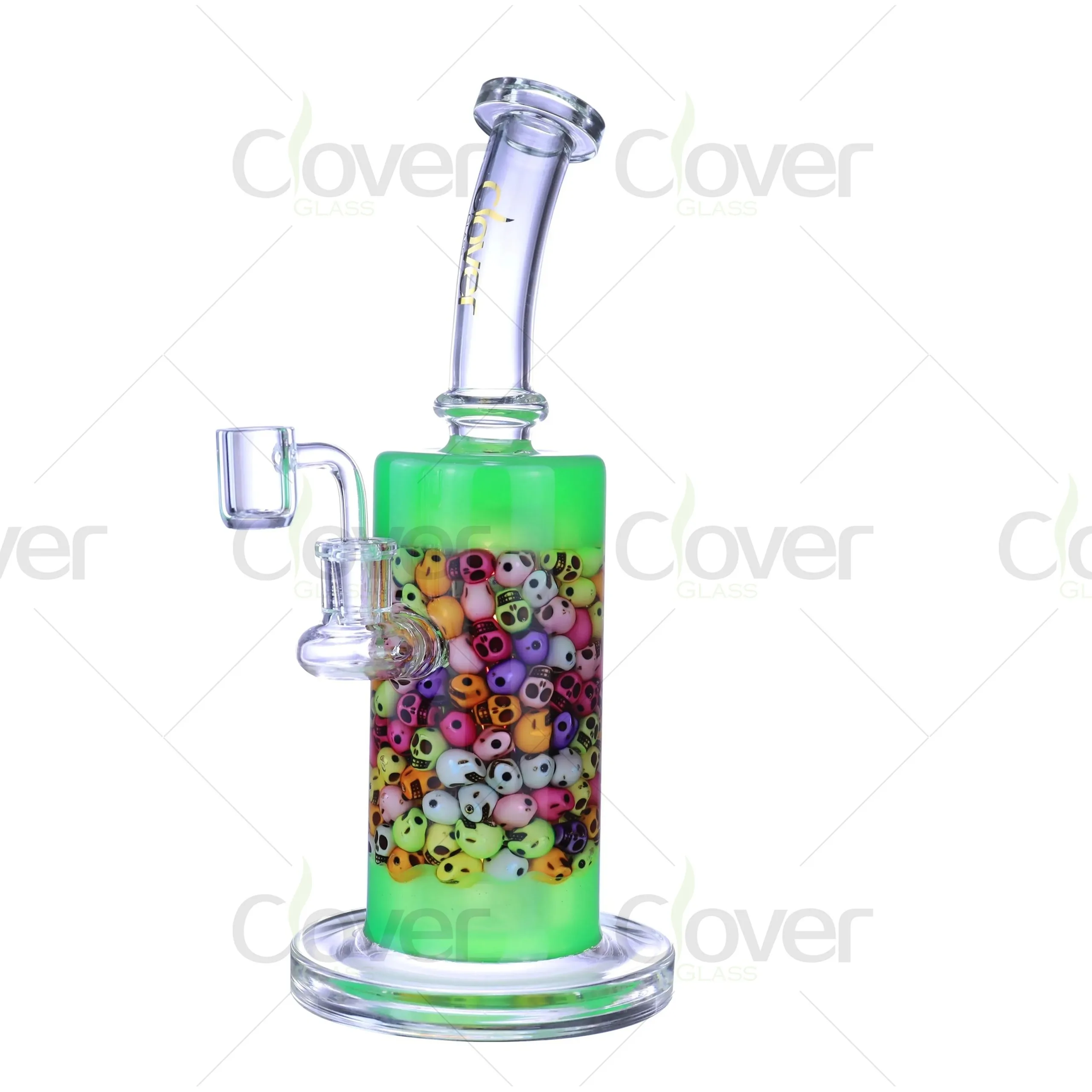 Retailers and distributors looking to offer unique glycerin dab rigs with artistic and functional appeal. Partner with Clover Glass today to bring your customers the Skull Beads Glycerin-Infused Dab Rig, a product that combines innovation, style, and quality!