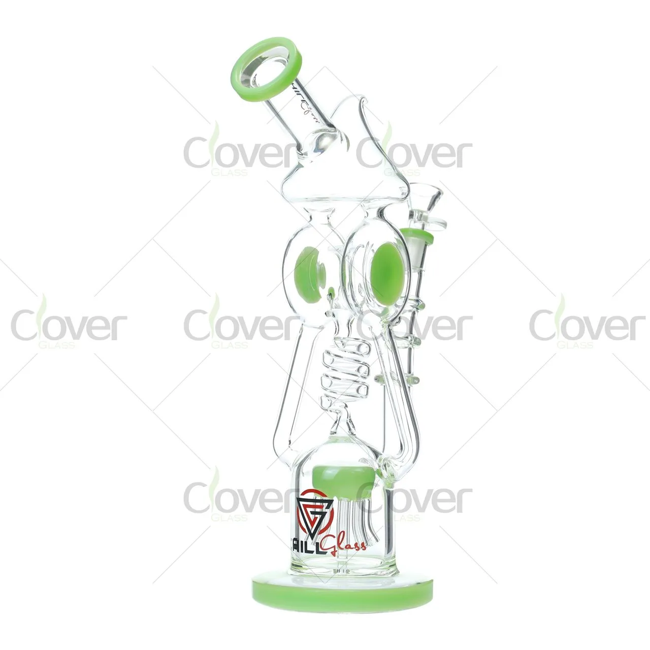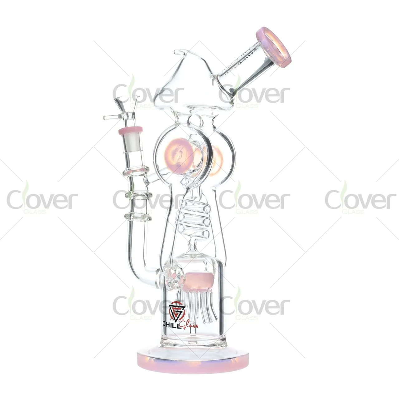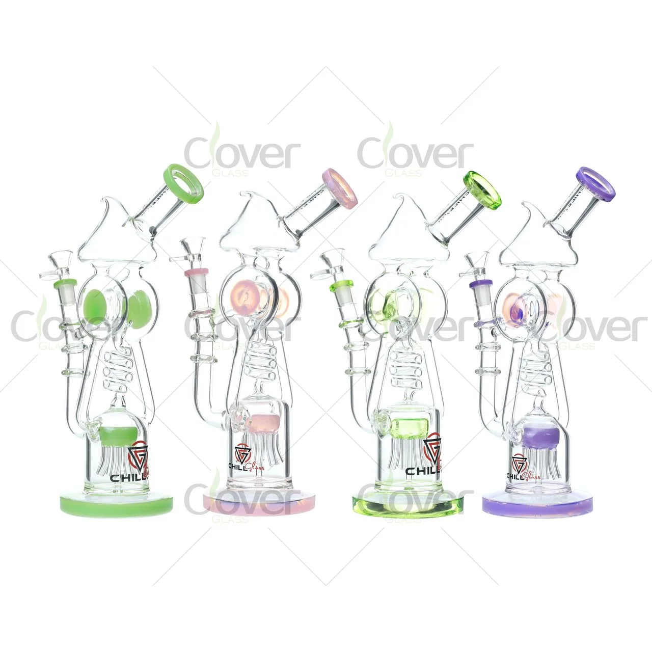 At the heart of this piece is a precision matrix percolator, which breaks the smoke into hundreds of microbubbles for optimal cooling. The recycler system pulls vapor through looping channels, reducing splash and delivering ultra-smooth hits. The side-accented color knobs and matching base give each rig its own personality, with multiple colorways available for varied retail displays.