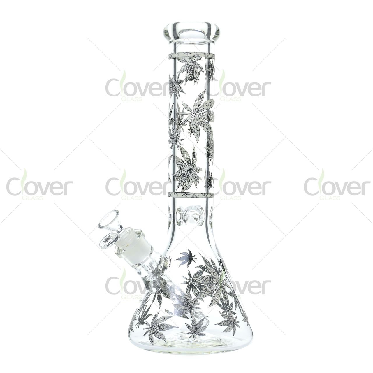 The standout feature is the all-over UV-reactive leaf pattern, which lights up in green under blacklight or in the dark, making it perfect for night sessions or display. The classic beaker base holds more water for smoother filtration, while the ice pinch allows for extra cooling with ice cubes.