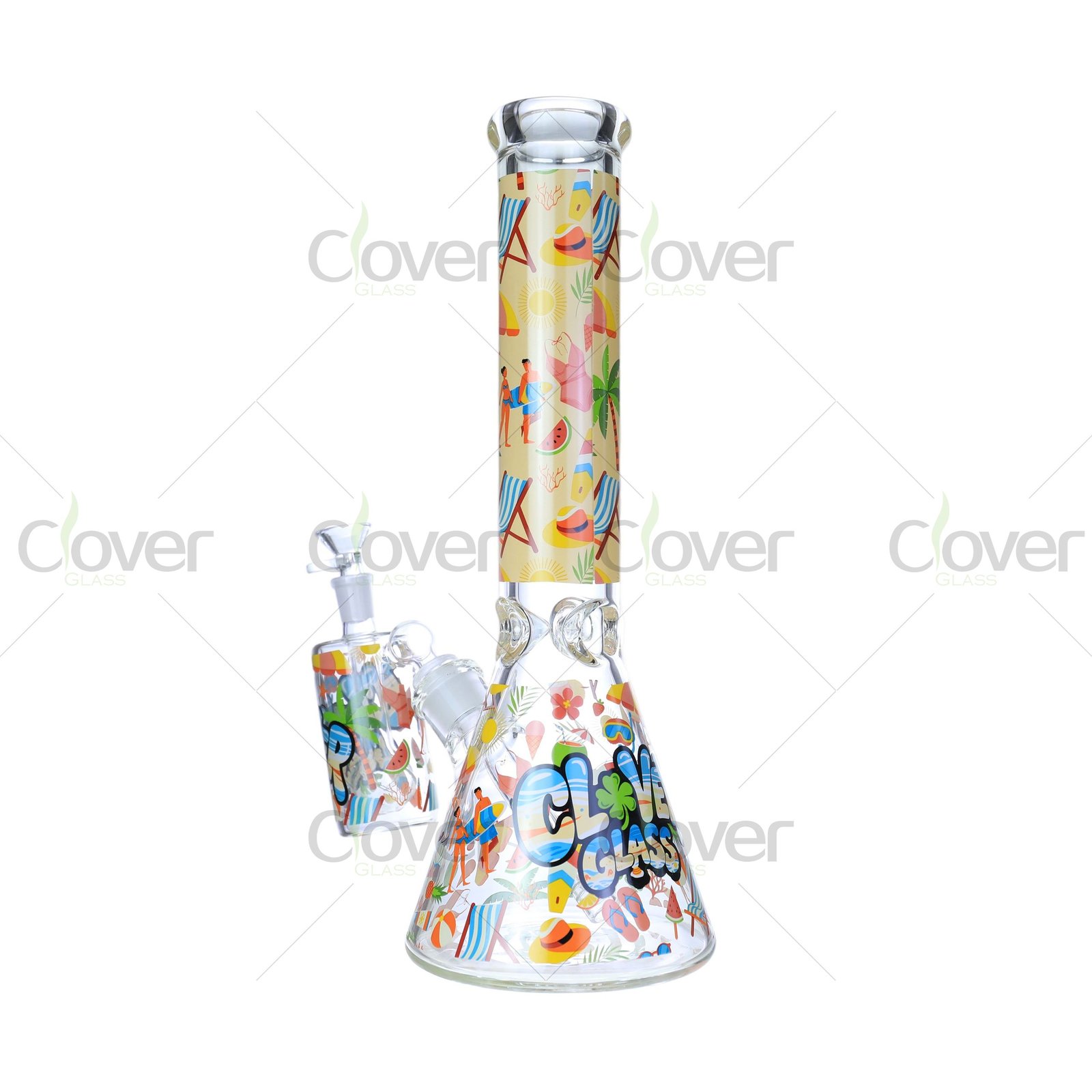 14″ Beaker Bong with Summer Print & Ash Catcher Set | 7mm Thick Glass | Clover Glass Series