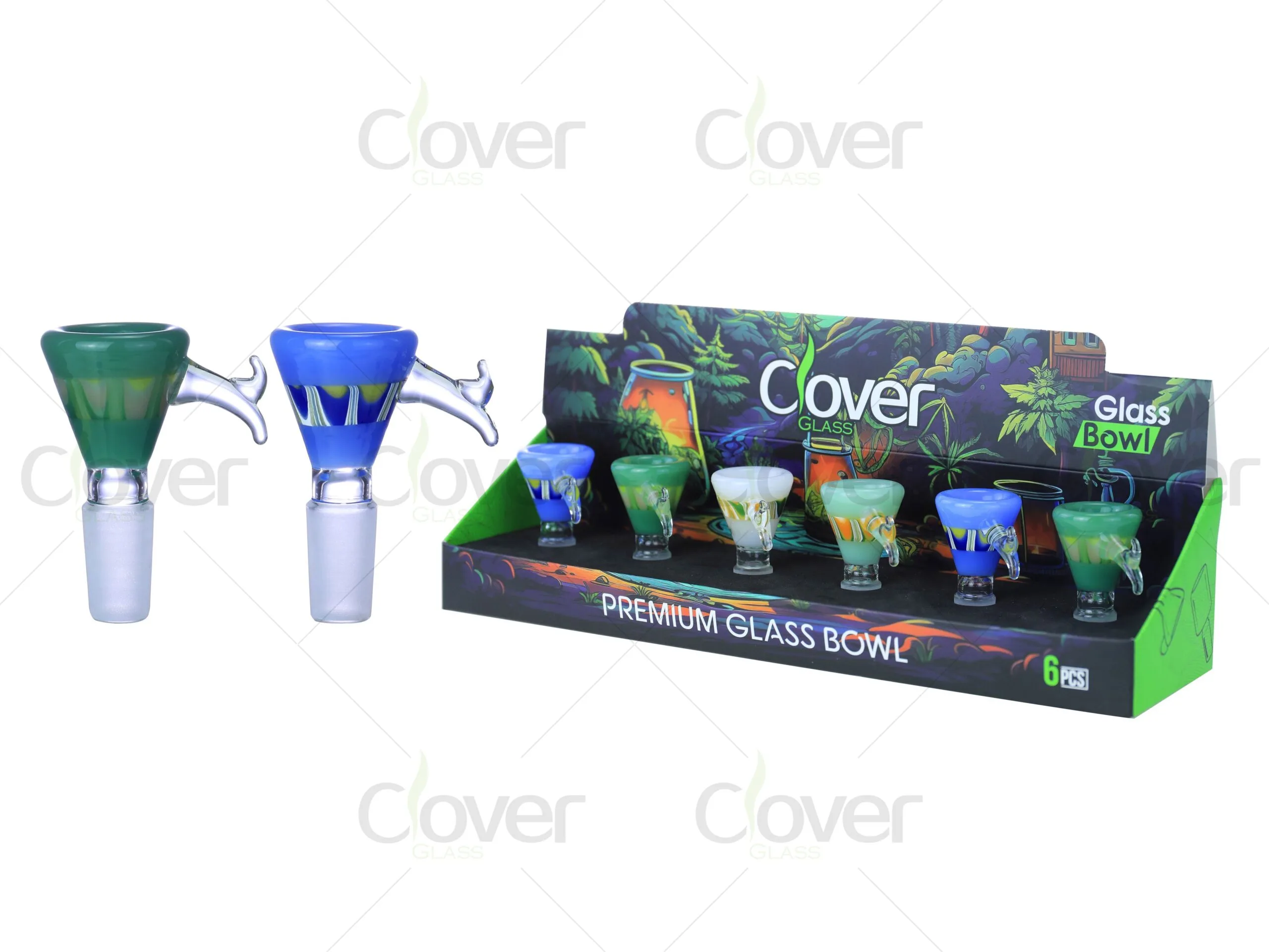 Elevate your bong collection with our Artistic Handle Glass Bowl, featuring vibrant colors and a distinctive sculpted handle for easy grip and added flair. Designed with colorful swirls and bold patterns, this bowl is both functional and visually striking. Made from durable borosilicate glass, it is heat-resistant and built to last. Compatible with 14mm and 18mm bong joints, this bowl fits most water pipes effortlessly. Each retail-ready display box contains 6 uniquely crafted bowls, making it ideal for wholesalers and retailers seeking high-quality, artistic smoking accessories.