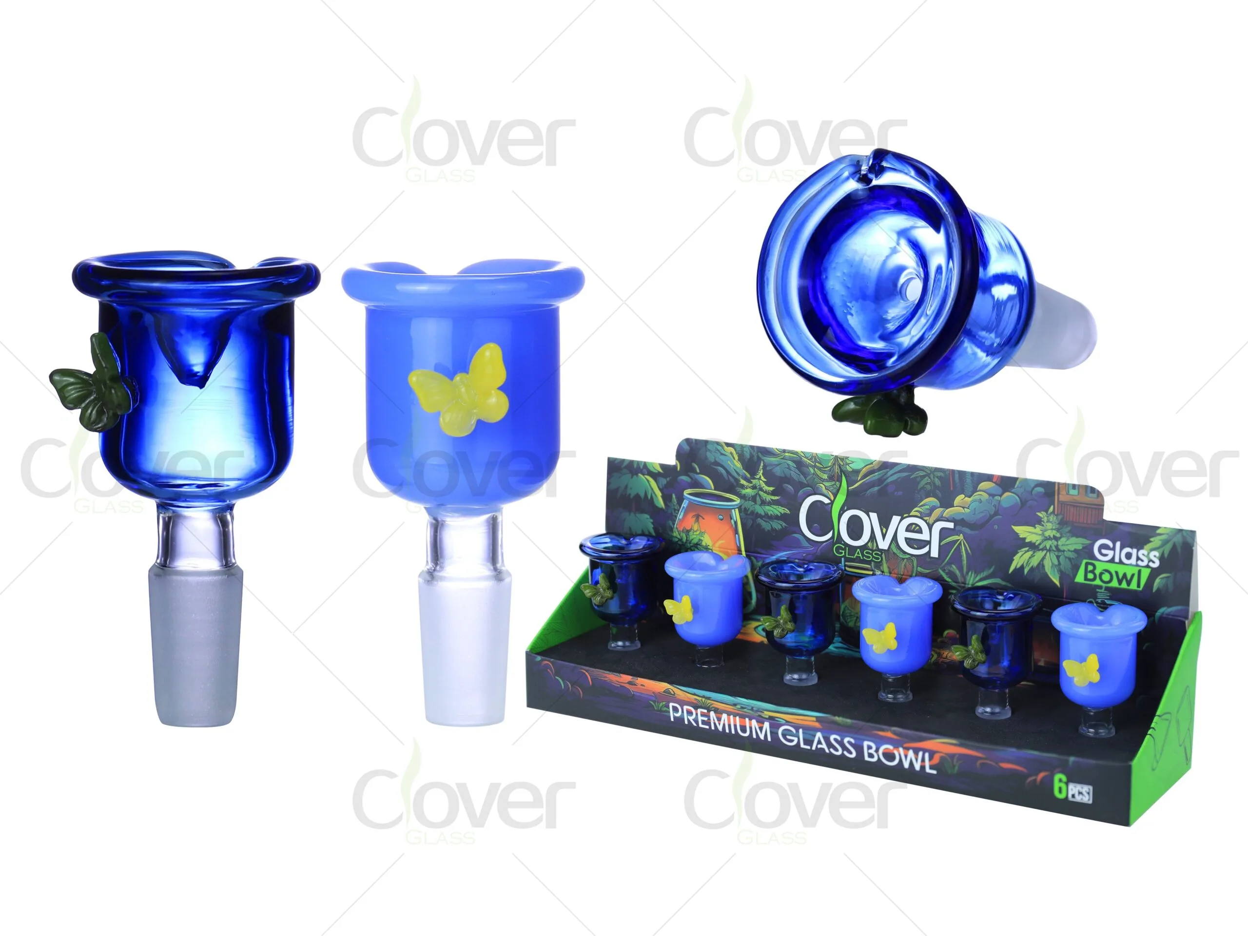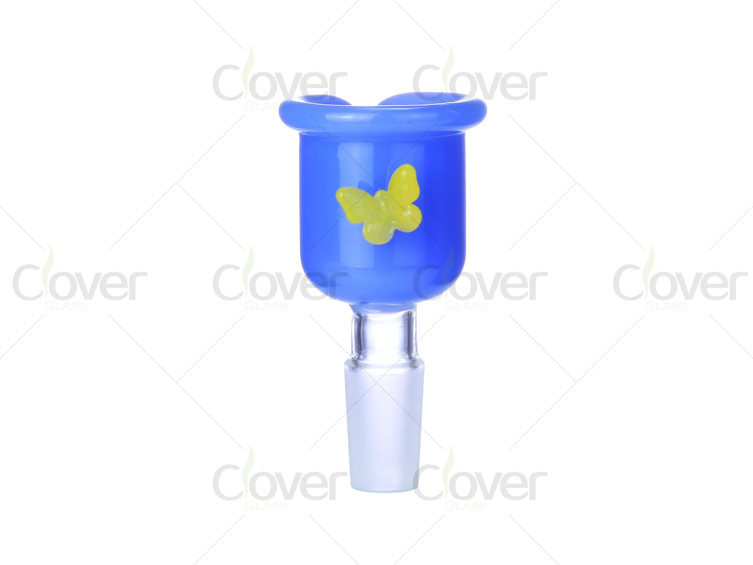 Bring a touch of elegance to your smoking accessories collection with our Butterfly-Decorated Glass Bowl. Featuring delicate butterfly embellishments and vibrant colors like deep blue and soft yellow, this bowl combines aesthetics with functionality. Made from high-quality borosilicate glass, it is designed to withstand high heat while offering long-lasting durability. The universal 14mm and 18mm joint sizes make it compatible with most water pipes and bongs. Each retail-ready display box contains 6 beautifully crafted bowls, making it a great option for wholesalers and retailers looking to offer unique and elegant smoking products.
