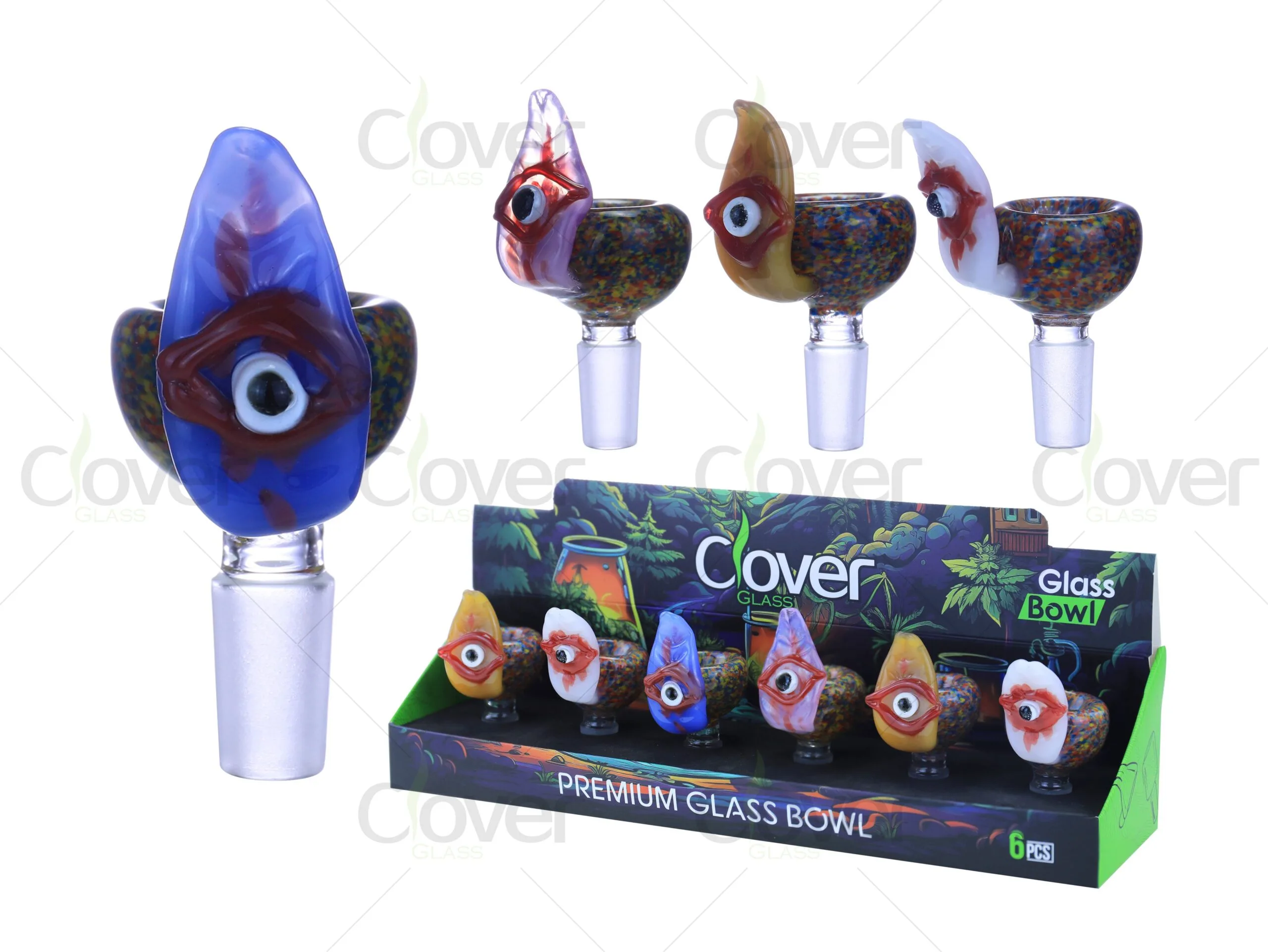 Add a mystical and artistic vibe to your bong collection with our Evil Eye-Themed Glass Bowl. Designed with bold, colorful eye motifs and vibrant patterns, this bowl stands out as a functional and stylish accessory. Crafted from durable borosilicate glass, it ensures heat resistance and reliability for everyday use. Available in universal 14mm and 18mm joint sizes, this bowl fits seamlessly with most bongs. Each set includes 6 individually crafted bowls, packaged in a retail-ready display box, making it perfect for wholesalers and retailers seeking unique and high-quality smoking products.