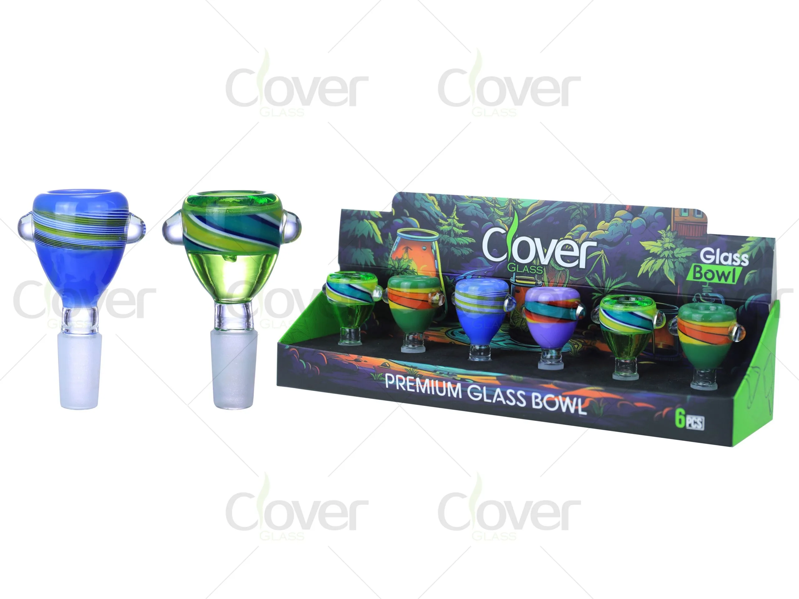 Upgrade your bong collection with our Striped Handle Glass Bowl, designed with vibrant colors and sleek spiral patterns. Featuring two sturdy side handles for easy grip and a stylish striped aesthetic, this bowl blends practicality with eye-catching design. Crafted from durable borosilicate glass, it provides excellent heat resistance and longevity. The universal 14mm and 18mm joint sizes make it compatible with most water pipes. Each retail-ready display box contains 6 colorful bowls, making it an ideal choice for wholesalers and retailers seeking premium, attractive smoking accessories.