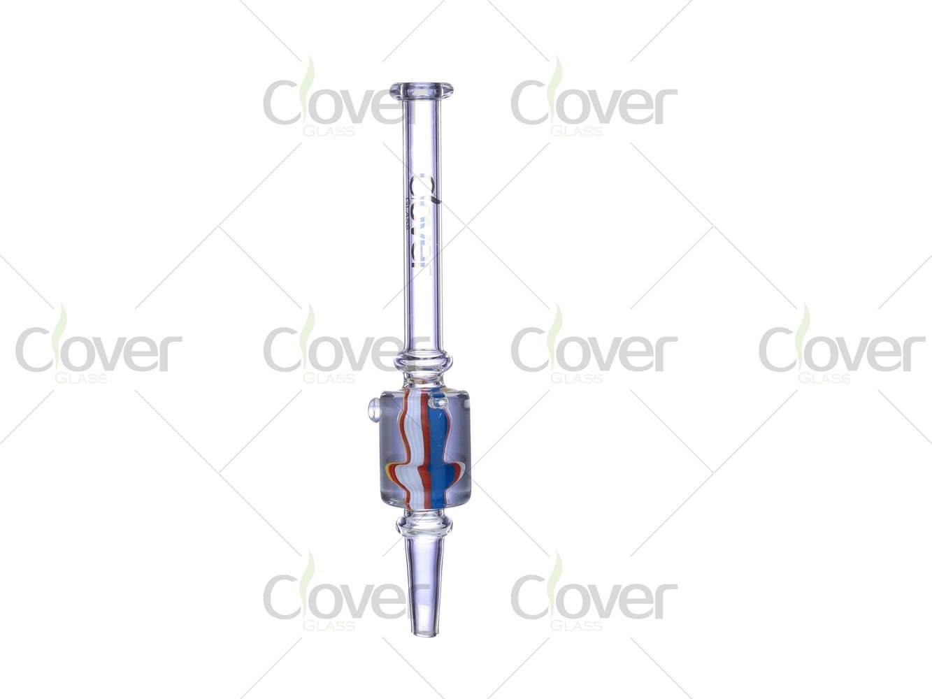 This 14mm glass nectar collector features a clean, straight clear-glass body paired with a color-core chamber, creating a bold visual contrast while maintaining a professional, retail-friendly look. The internal color accents run through the central chamber, giving each piece a unique appearance without affecting airflow.