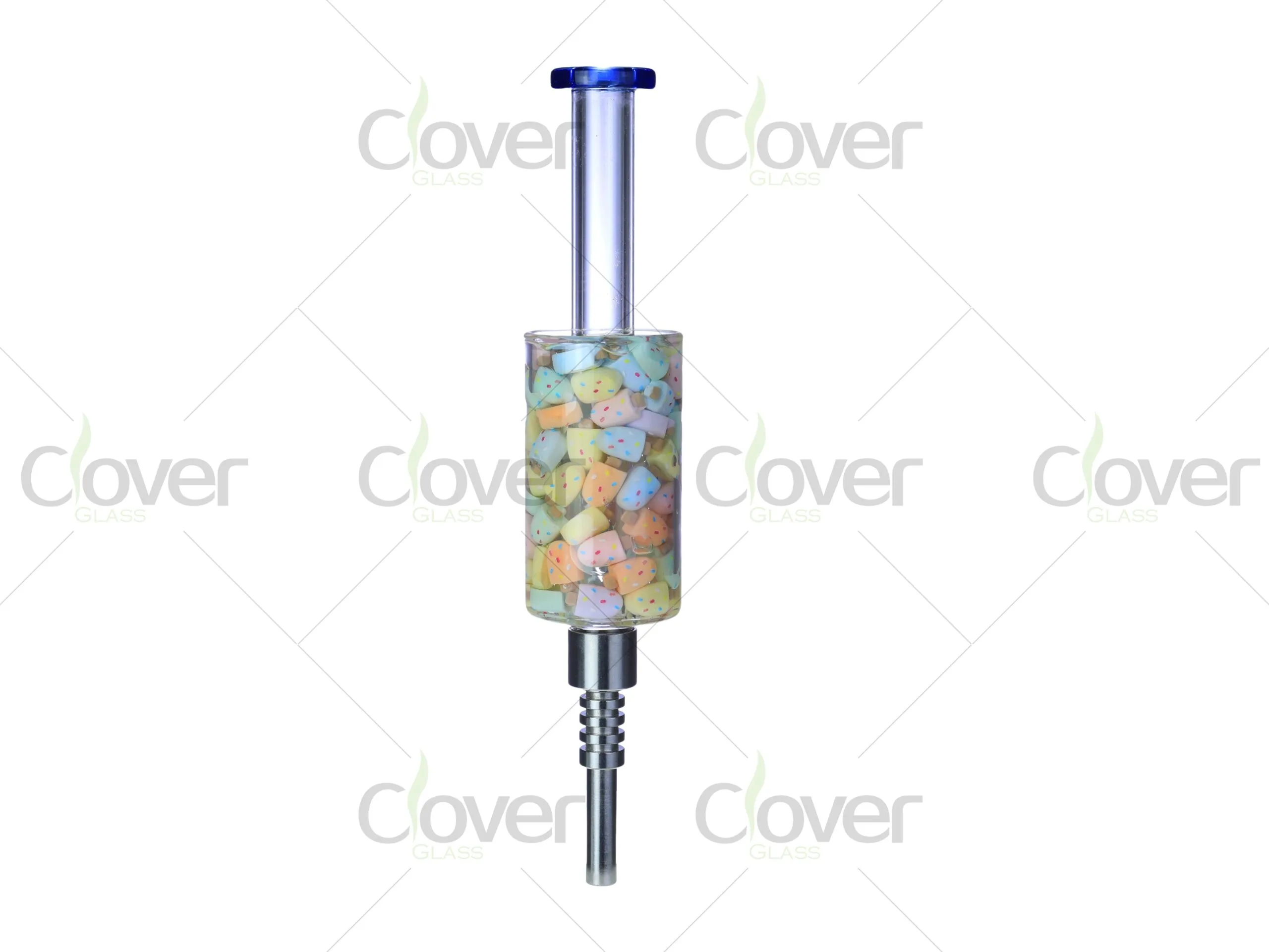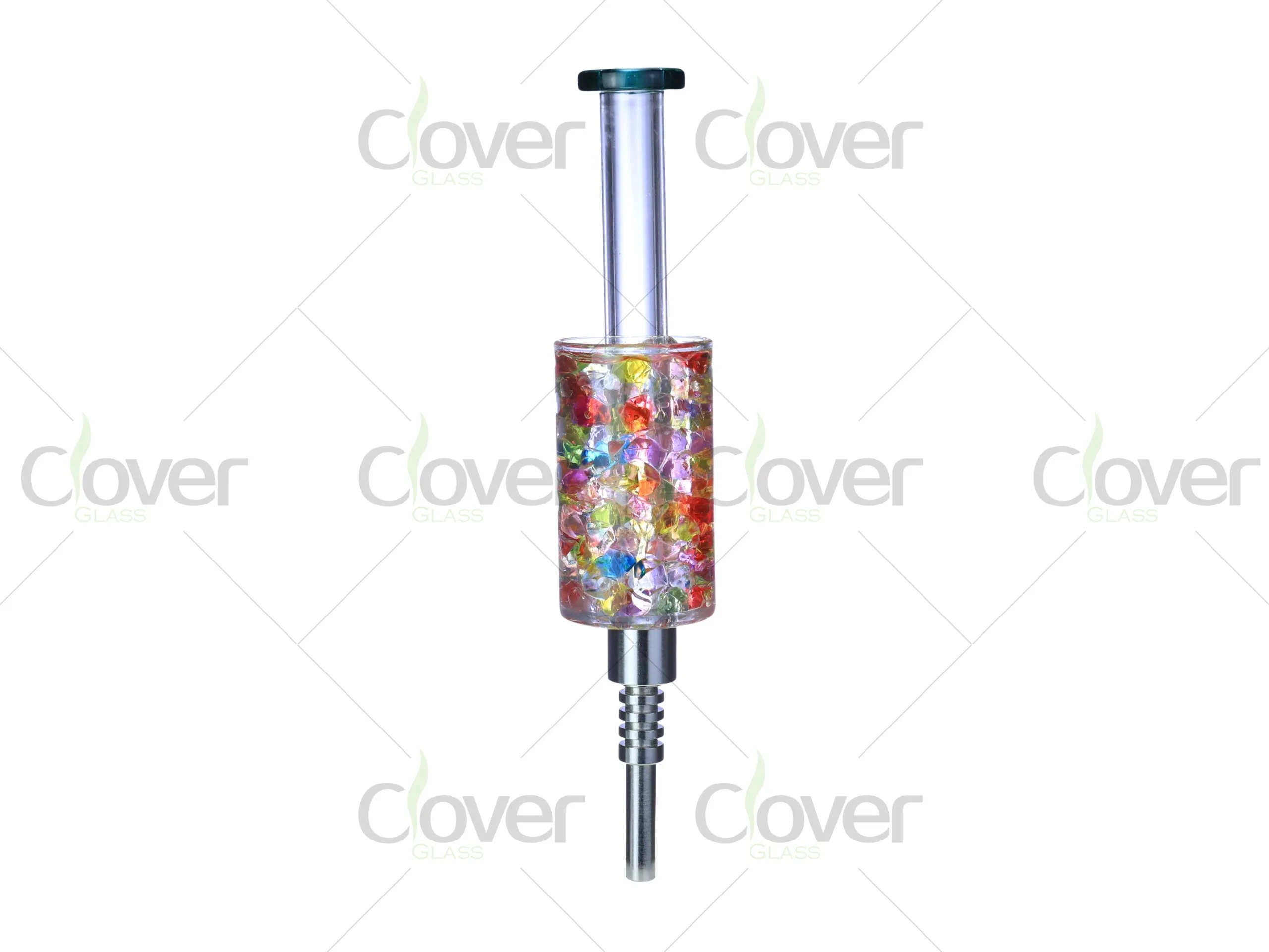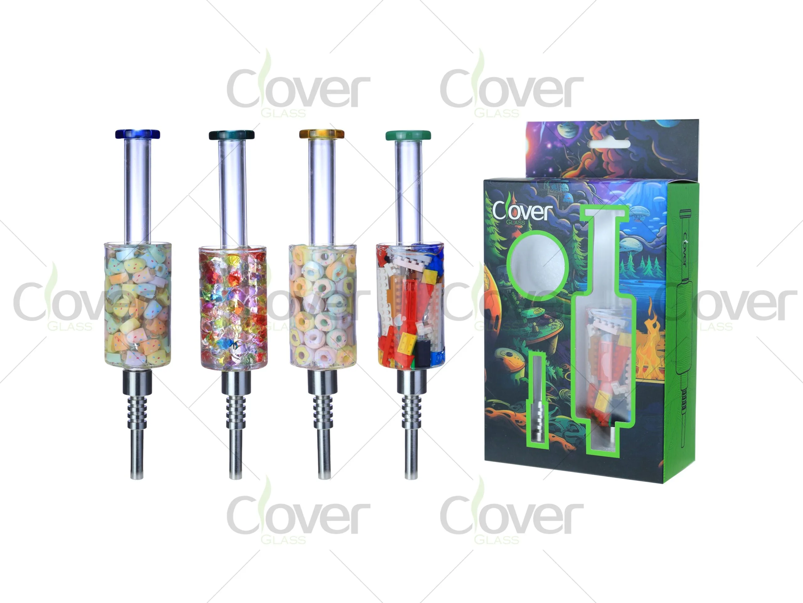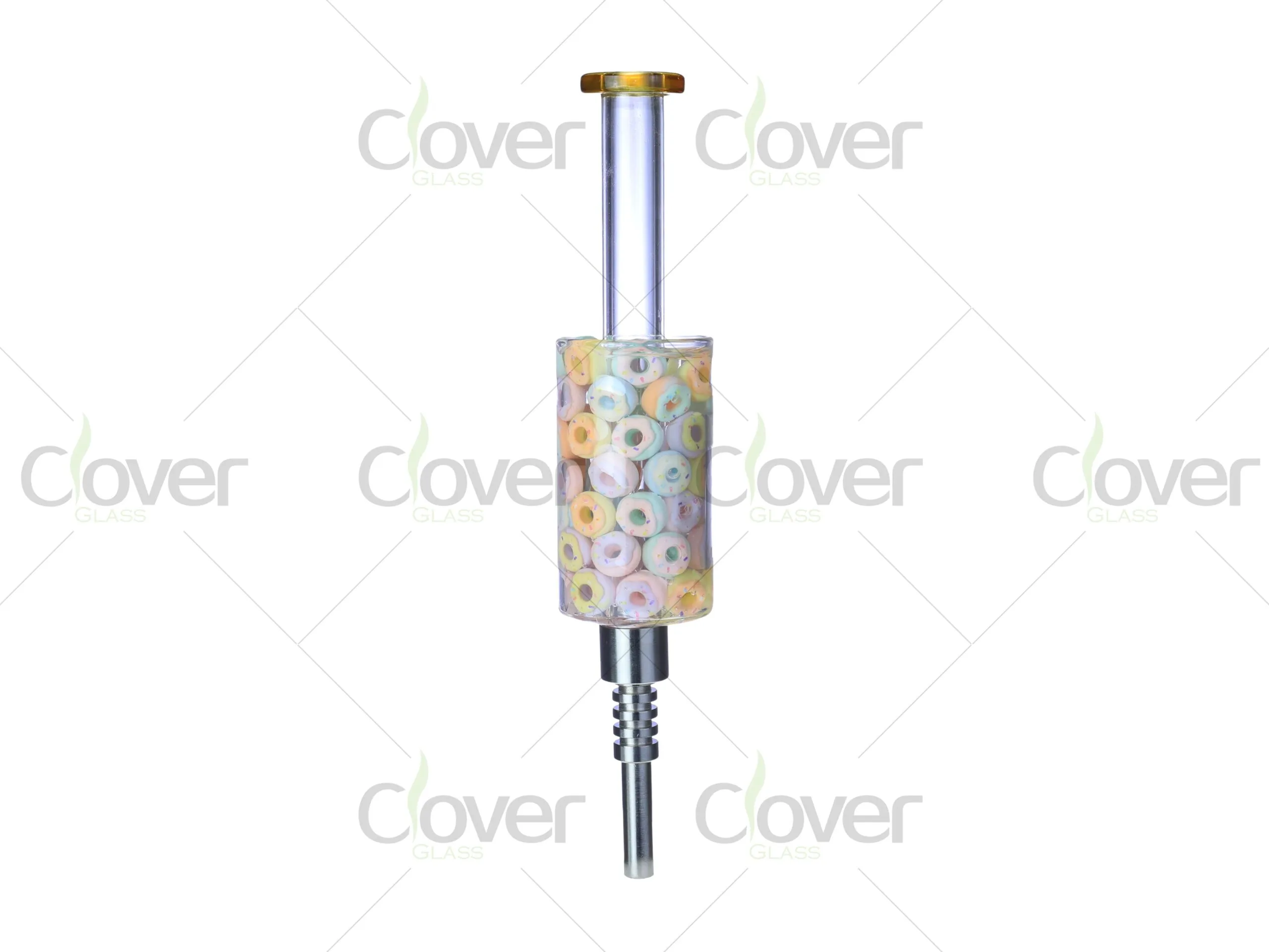 This 154mm fun-filled nectar collector is here to shake up your concentrate accessory shelf. Designed for both performance and personality, each kit features a colorful clear resin handle filled with novelty items like cereal loops, candy beads, or toy bricks, creating a true visual talking piece your customers won’t forget.
