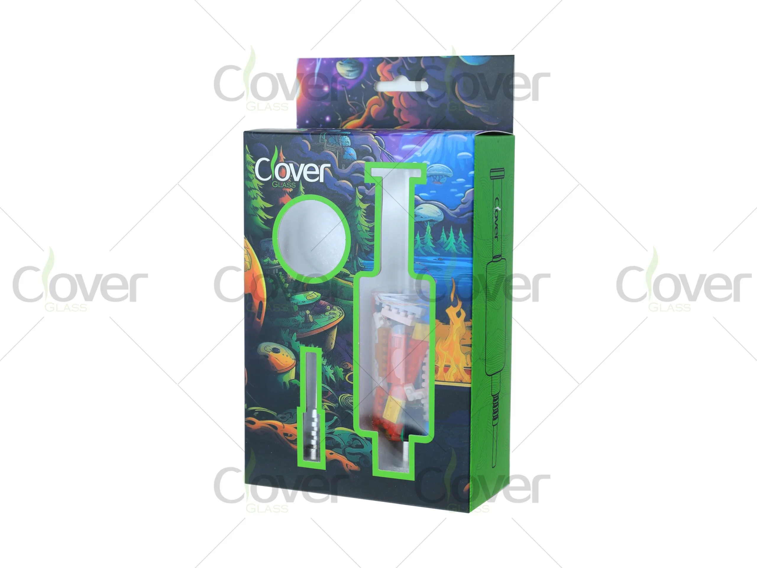Made with high-quality borosilicate glass, each piece includes a ceramic nail, a glass concentrate dish, and comes in a fully illustrated, hangable gift box — perfect for retail or online resale.