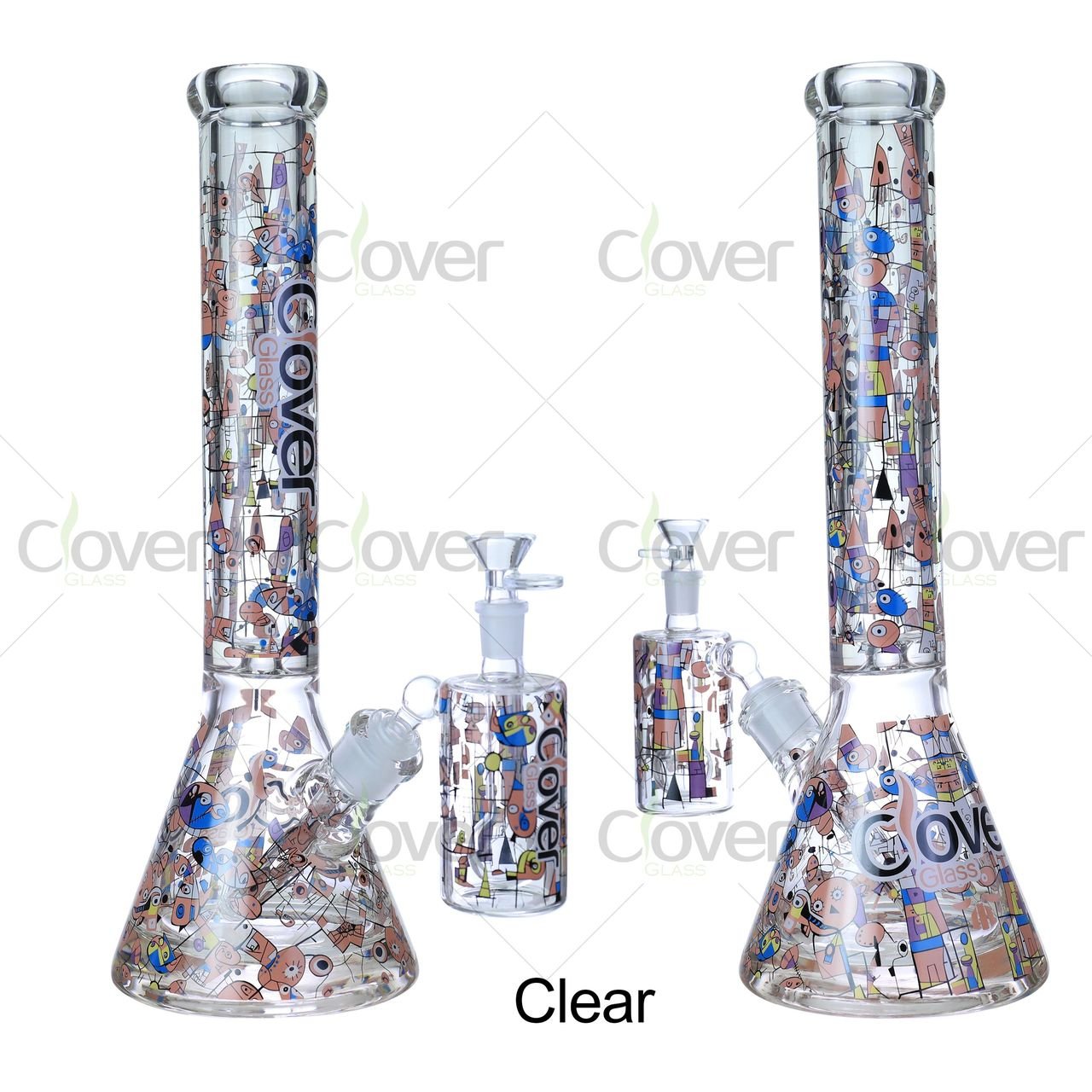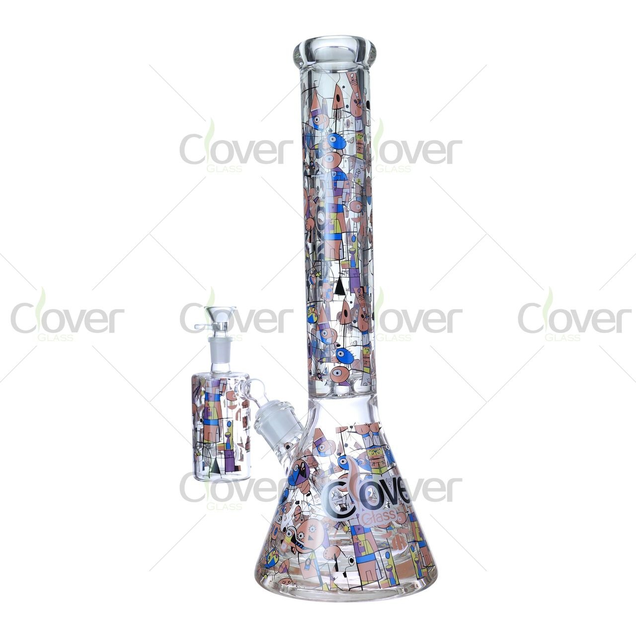 Inject fun and color into your collection with this 16-inch cartoon-style beaker bong from Clover Glass. Featuring a whimsical full-wrap graffiti design filled with abstract cartoon characters and playful shapes, it’s a standout for smokers with a creative edge.