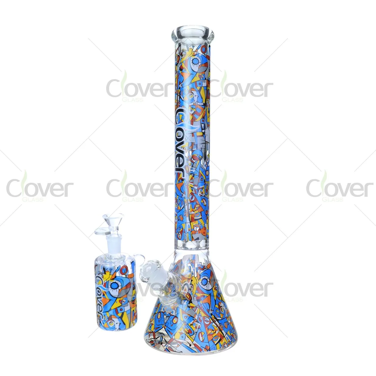 Turn your smoke sessions into a colorful statement with this graffiti-style beaker bong from Clover Glass. At 17.7 inches tall and made from ultra-durable 9mm borosilicate glass, this piece delivers bold artistic flair and heavy-duty performance.