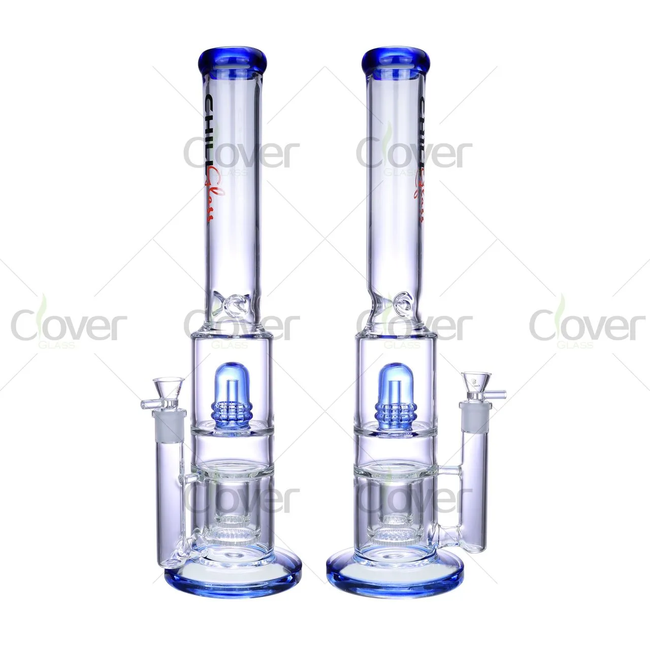 The thick 5mm borosilicate glass ensures durability, while the bold blue color accents add a stylish touch. Whether you're outfitting a smoke shop or an online store, this piece is a must-have for experienced smokers who want function, form, and premium build quality.