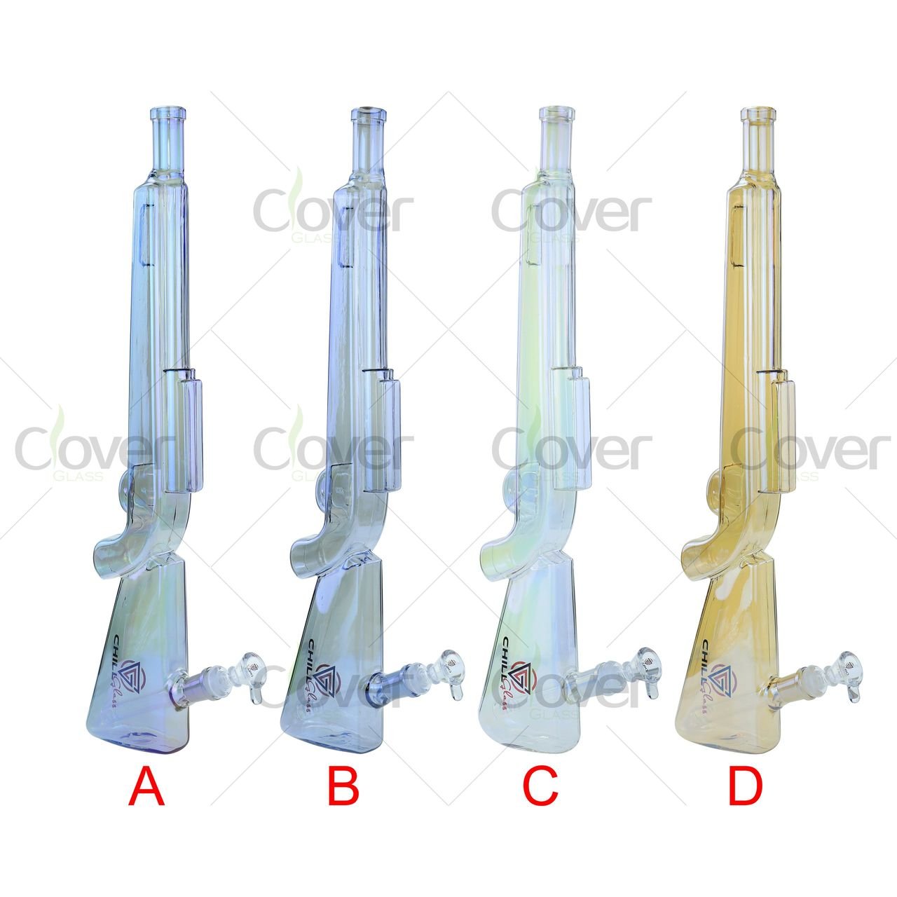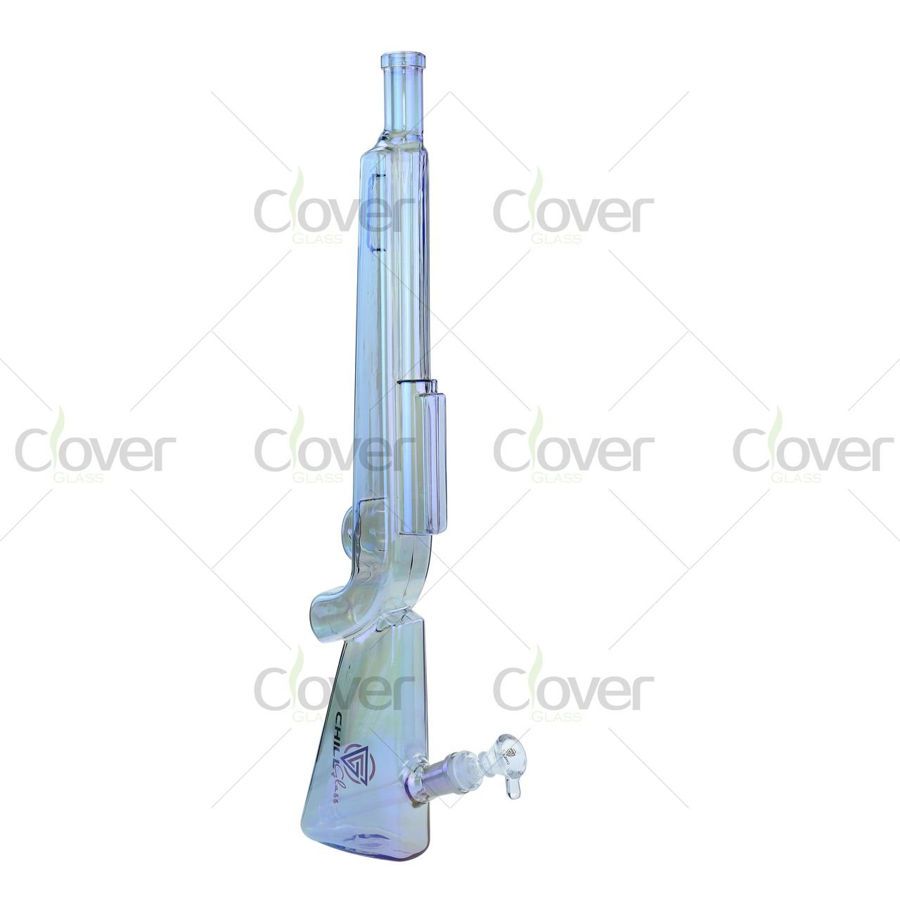 This 19.68-inch rifle-shaped glass bong is designed to turn heads and elevate any smoker's collection. Modeled after a long-barrel firearm, this novelty piece combines aggressive styling with practical function. Made from 5mm thick borosilicate glass, it offers both durability and a solid hand feel despite its sculptural silhouette.