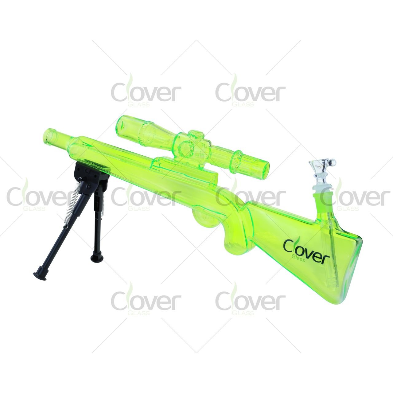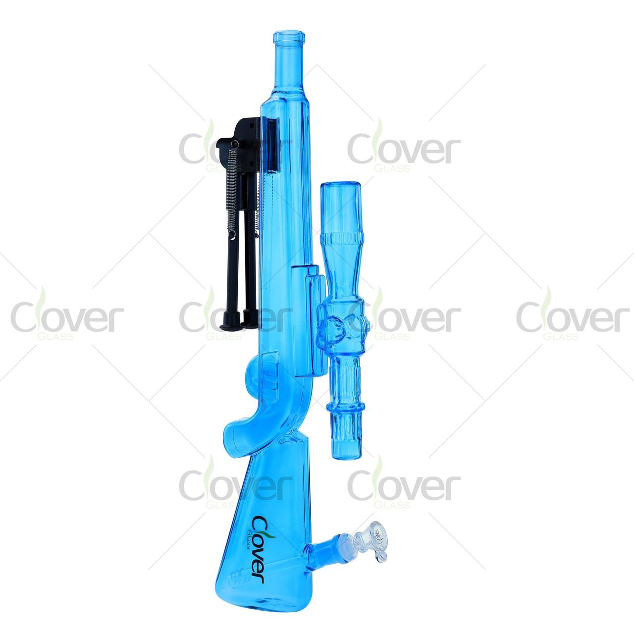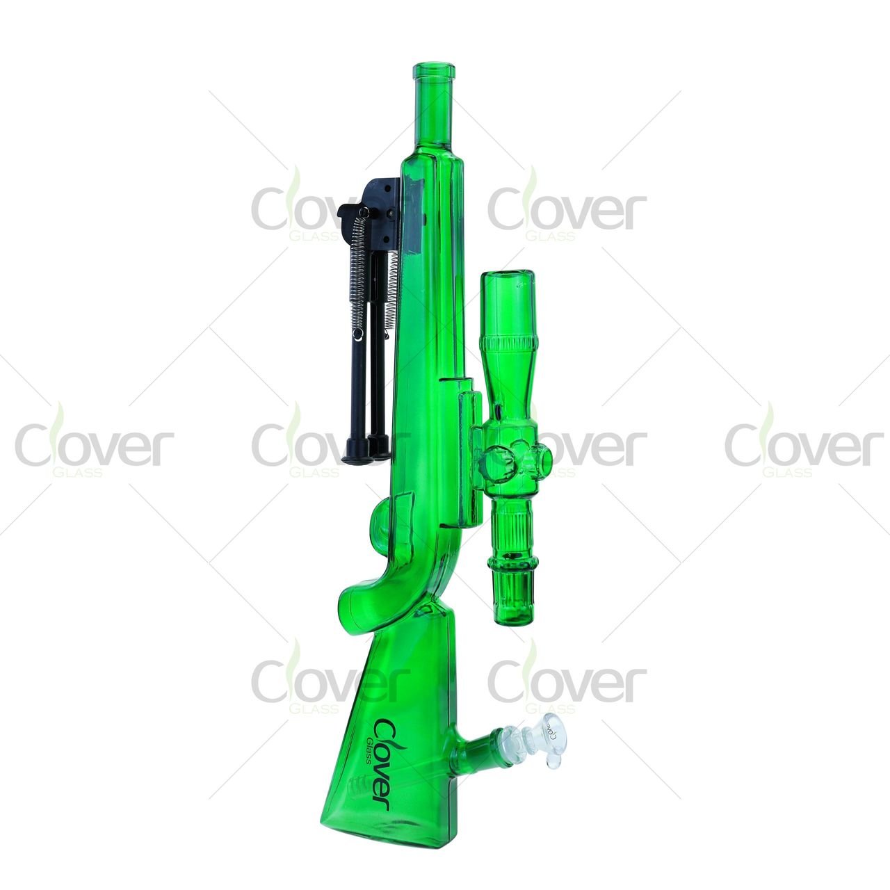 Level up your shelf presence with this oversized sniper rifle-shaped glass water pipe, built to wow customers at first glance. Measuring an impressive 19.88 inches tall, this statement piece is handcrafted from 5mm thick borosilicate glass, and styled with realistic rifle features — including a mounted tripod, faux scope attachment, and ergonomic stock-inspired grip.