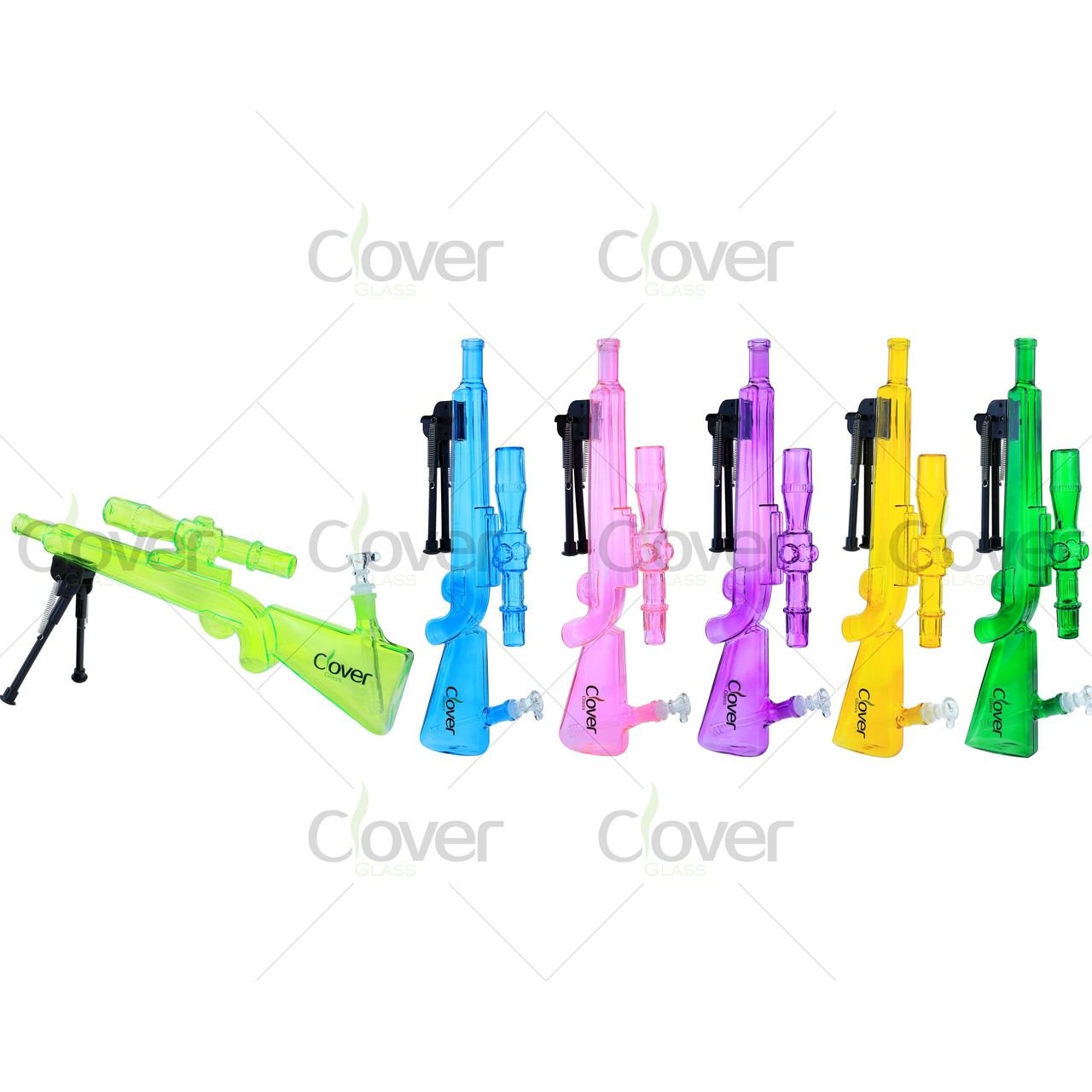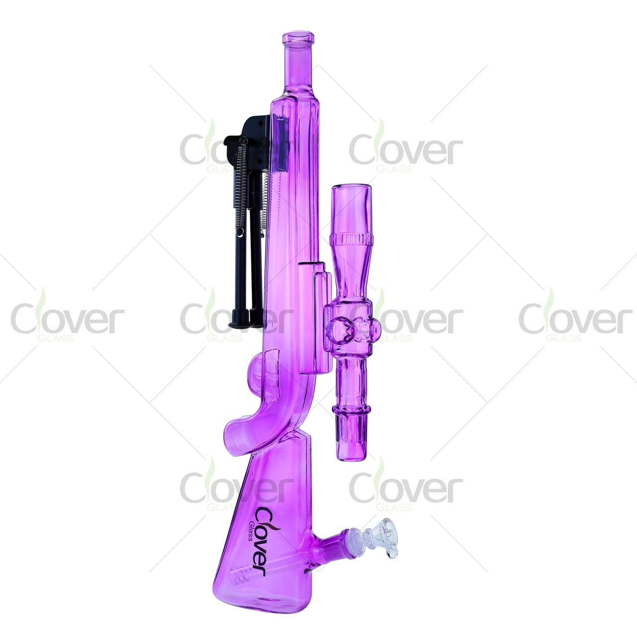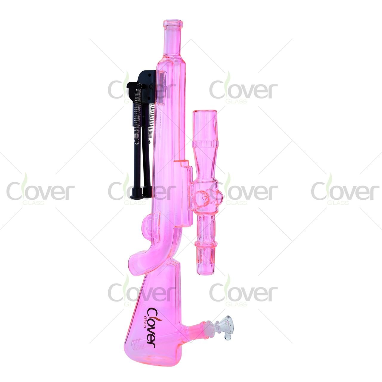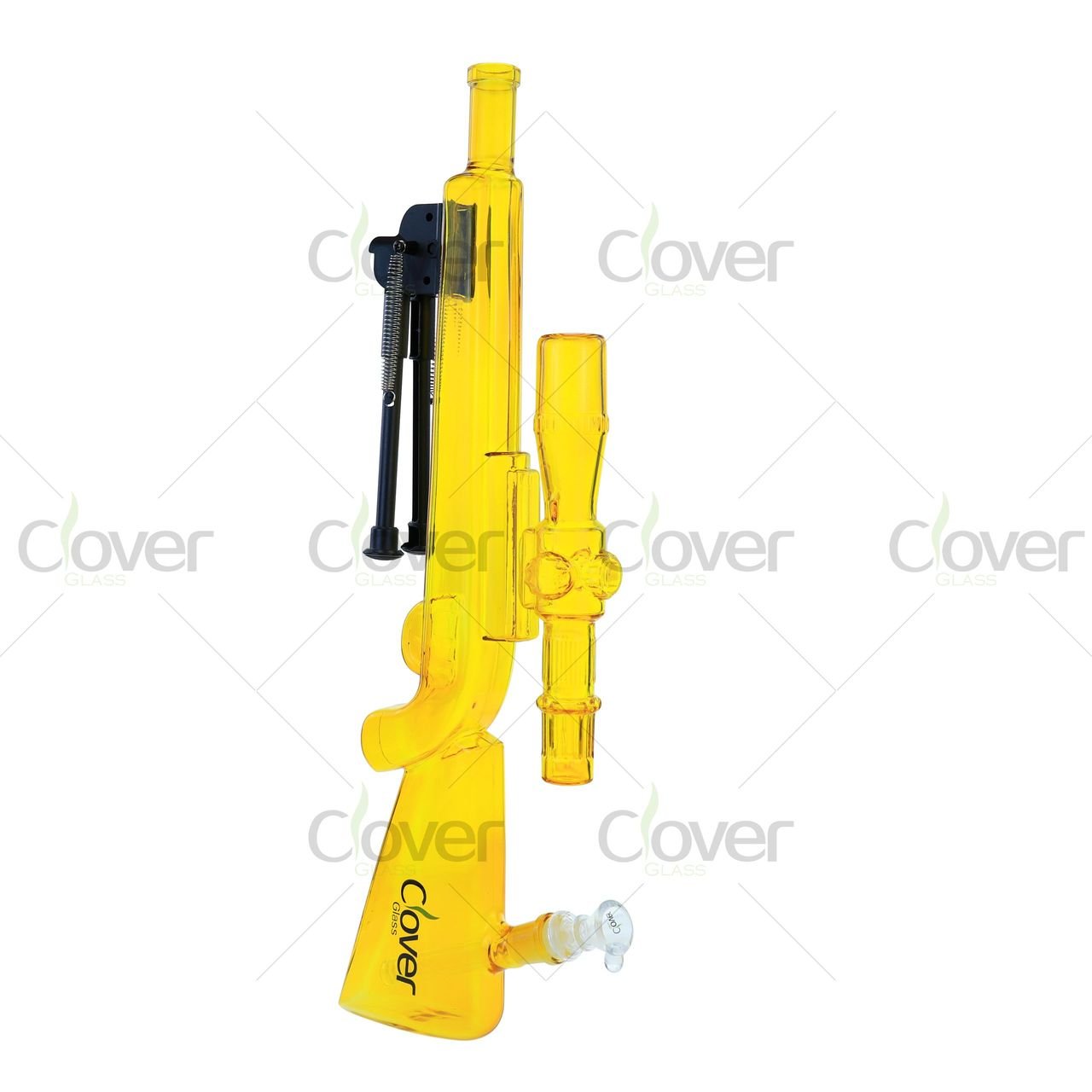 Level up your shelf presence with this oversized sniper rifle-shaped glass water pipe, built to wow customers at first glance. Measuring an impressive 19.88 inches tall, this statement piece is handcrafted from 5mm thick borosilicate glass, and styled with realistic rifle features — including a mounted tripod, faux scope attachment, and ergonomic stock-inspired grip.