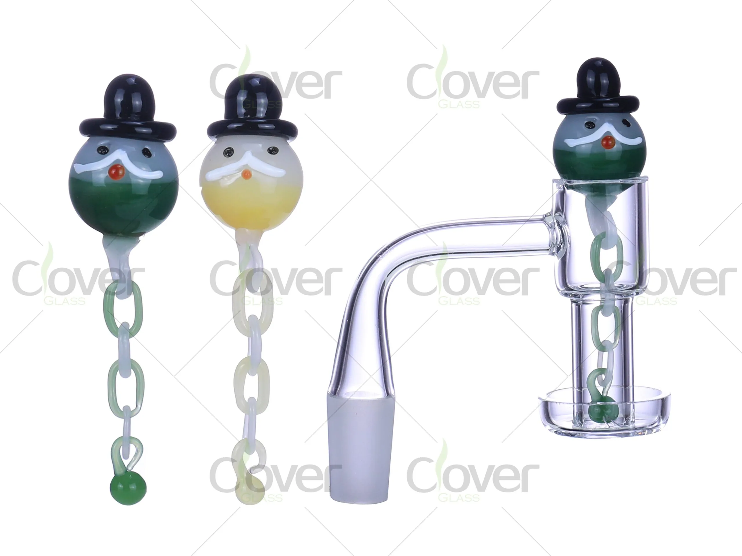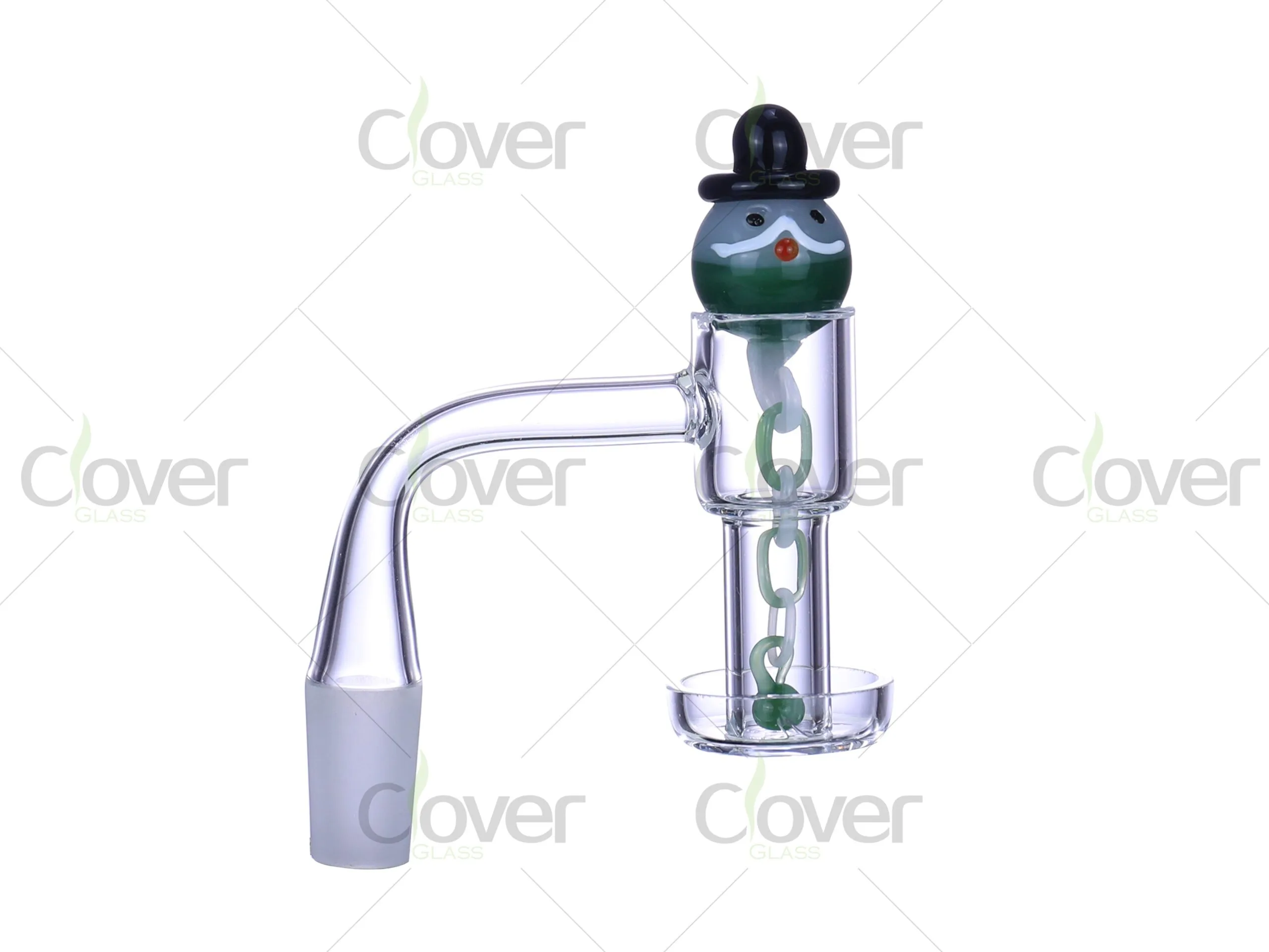 This Quartz Banger Set features a fun and festive snowman-themed chain marble cap, adding a unique touch to any dabbing setup. Made from high-quality quartz, the 2.5mm thick bowl ensures optimal heat retention and even vaporization, providing a smooth and flavorful experience.