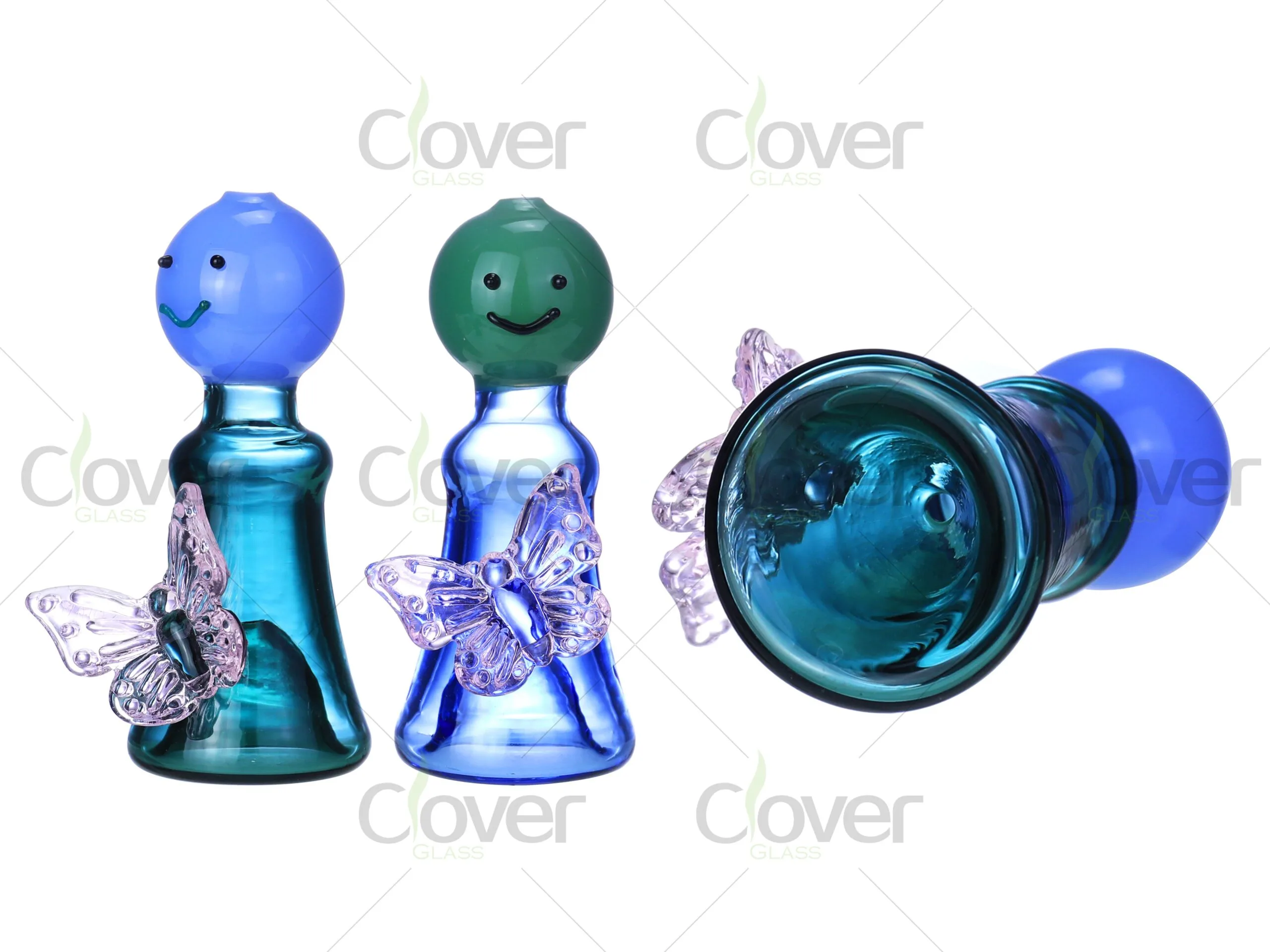Introducing our charming 3.78-inch Glass Hand Pipe, featuring an adorable smiling face and a delicate butterfly design. This unique pipe combines playful aesthetics with high-quality craftsmanship. The smiling face on top adds a lighthearted touch, while the butterfly accents on the body bring a sense of elegance and beauty. The glass itself is clear, showcasing the intricate design while offering a smooth smoking experience.