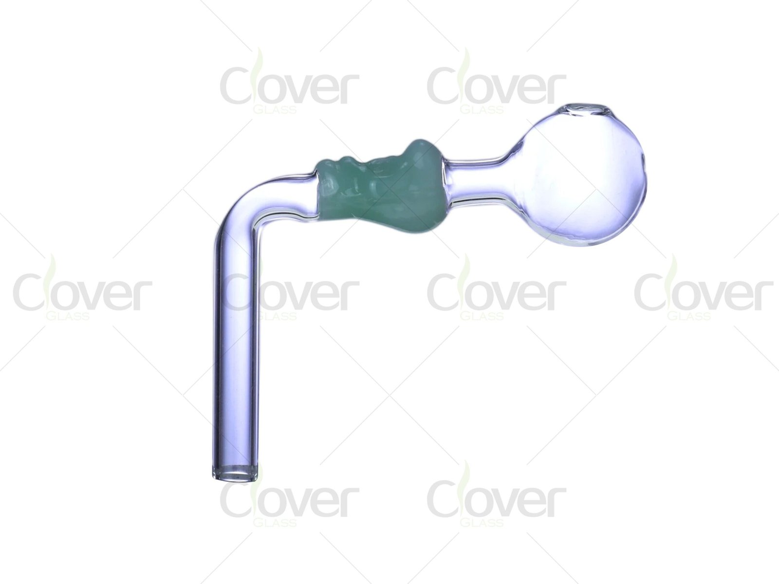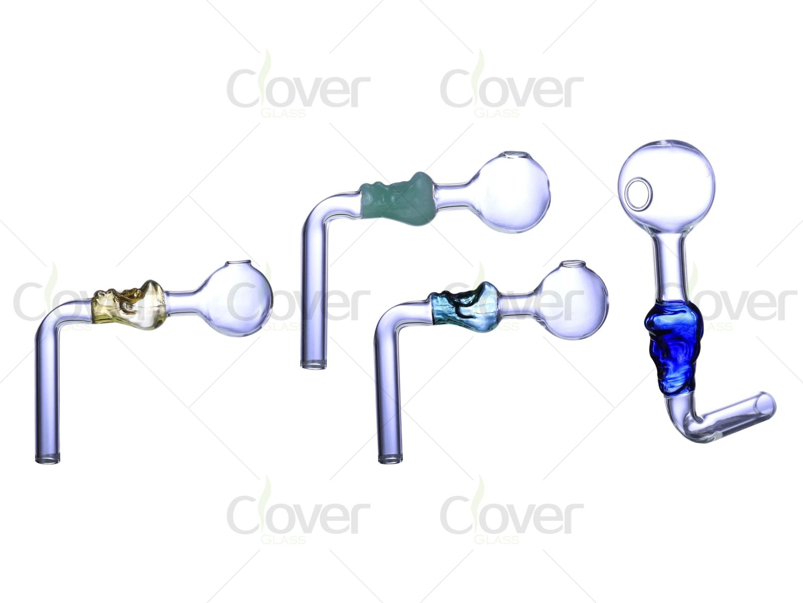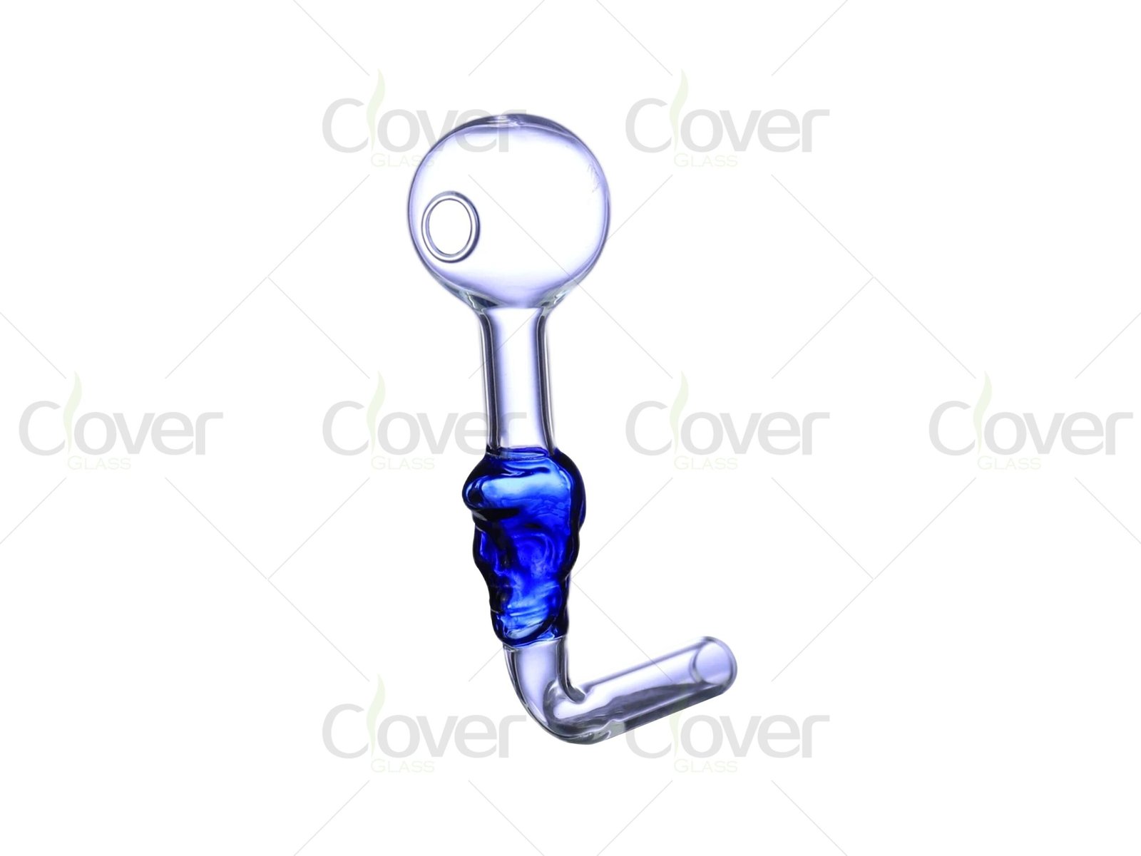 The thick borosilicate glass construction ensures resistance to thermal shock, allowing for high-temperature use without compromising durability. The ergonomic grip area includes sculpted details, including a skull-shaped option, offering both form and function for enthusiasts and collectors alike.