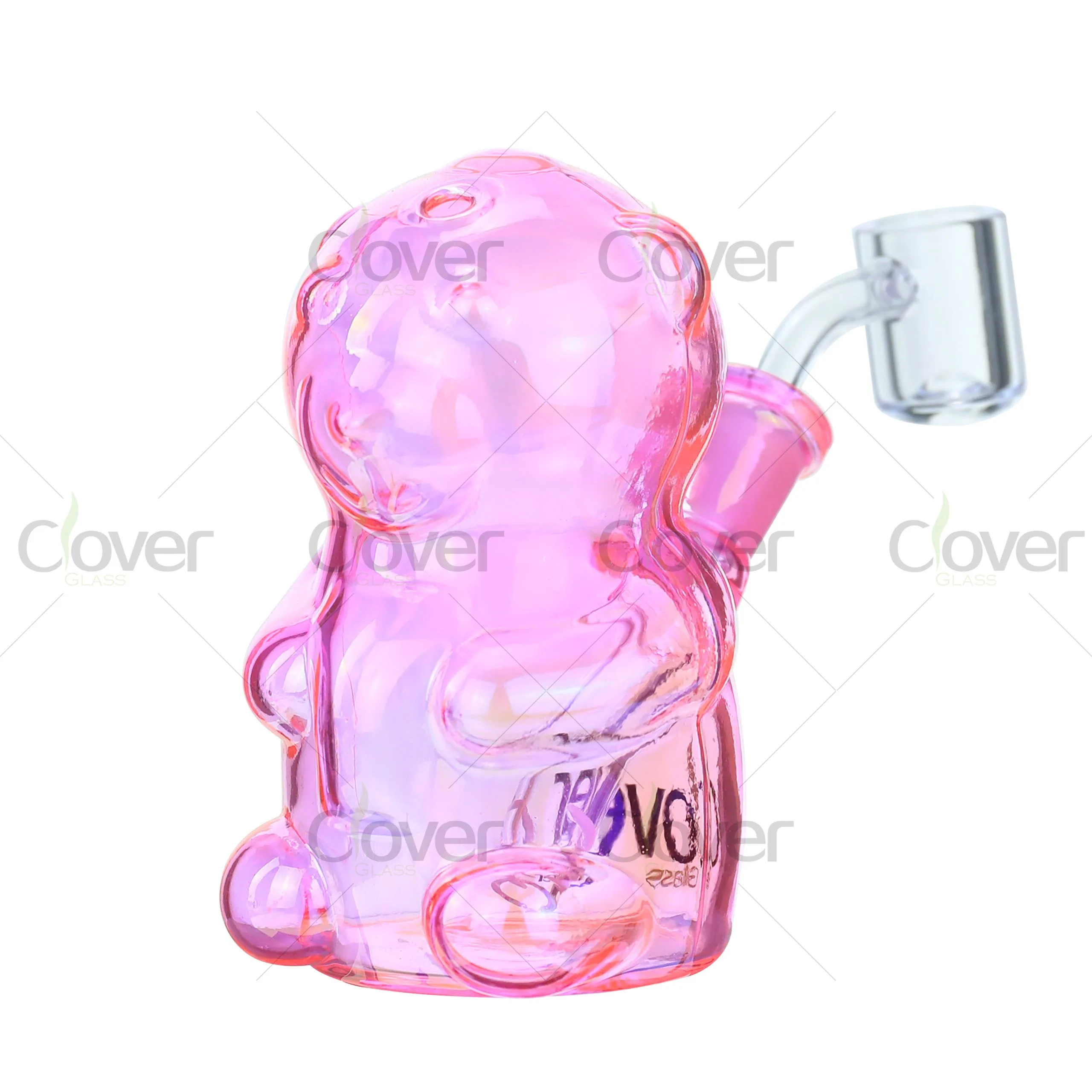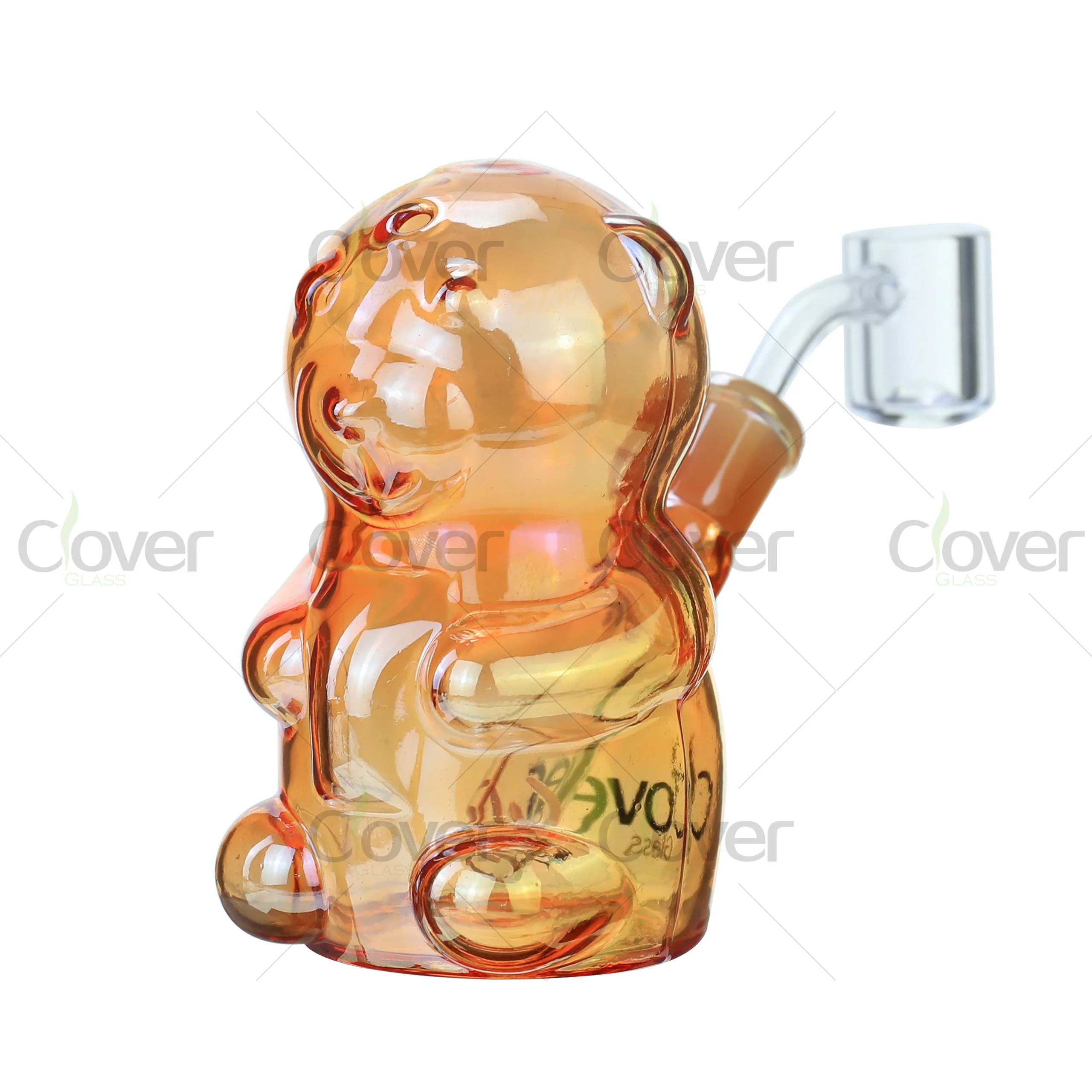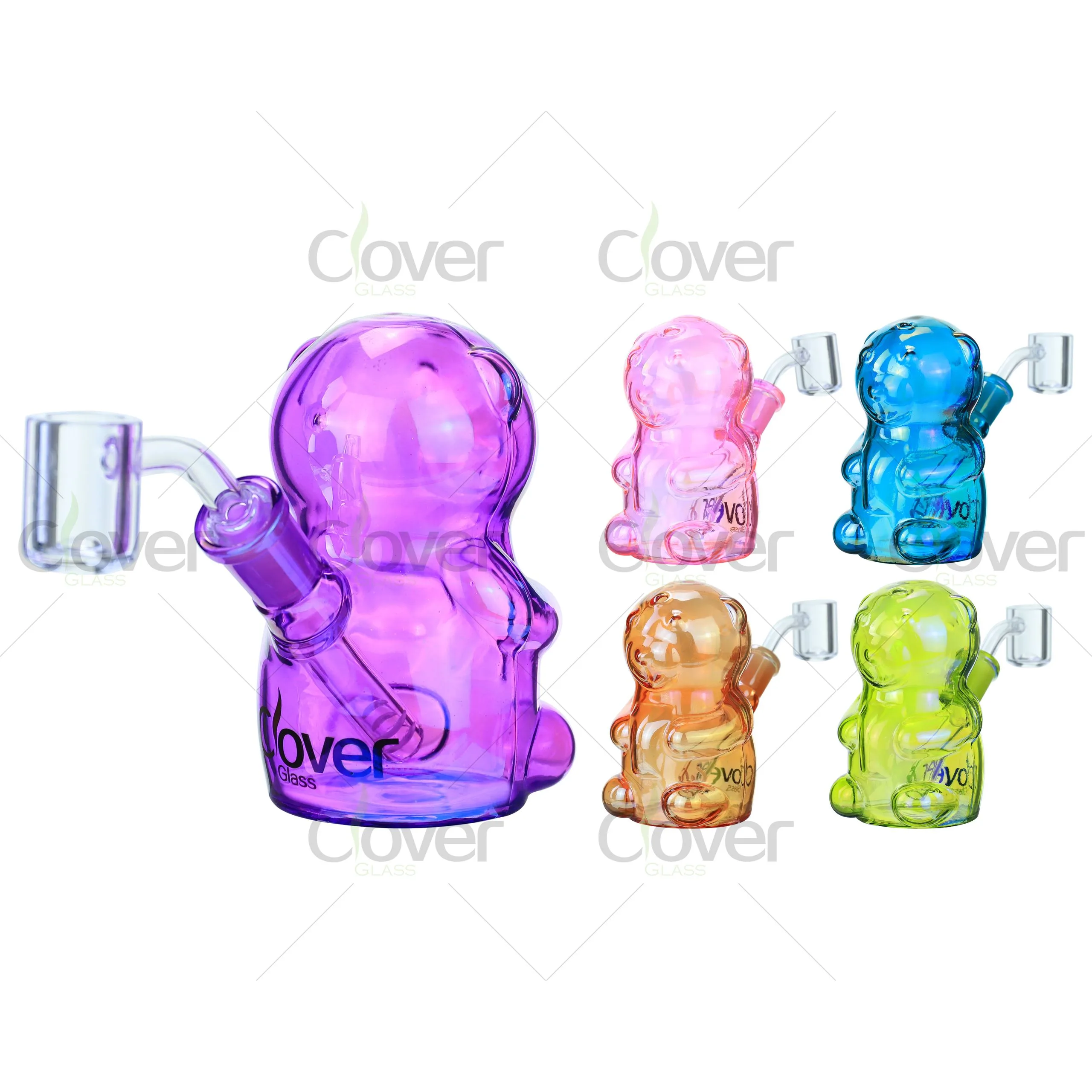 Meet the sweetest rig in your lineup — the Gummy Bear Mini Dab Rig by CloverGlass. Standing just 4.13 inches tall, this piece is shaped like a gummy bear and crafted from 5mm thick borosilicate glass. Its compact build makes it a great grab-and-go rig or impulse buy for novelty-loving customers. The fun candy-inspired design turns every sesh into a conversation starter, while the 14mm joint ensures compatibility with standard accessories.