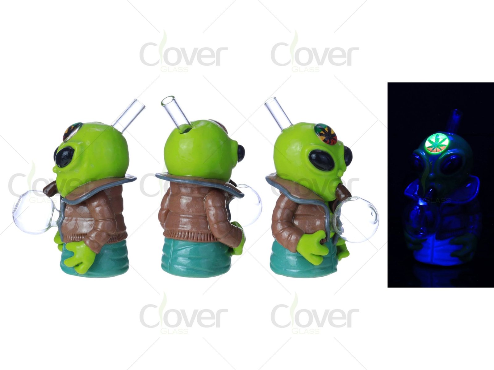 4.3″ Glow Alien Oil Burner Pipe – Green Alien in Jacket with UV-Active Head Design