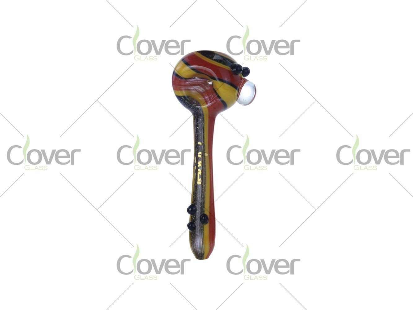 This 4.3-inch glass hand pipe features a rounded bowl head with layered swirl color patterns, creating a smooth, flowing visual effect that makes each piece visually distinctive while staying consistent in form.