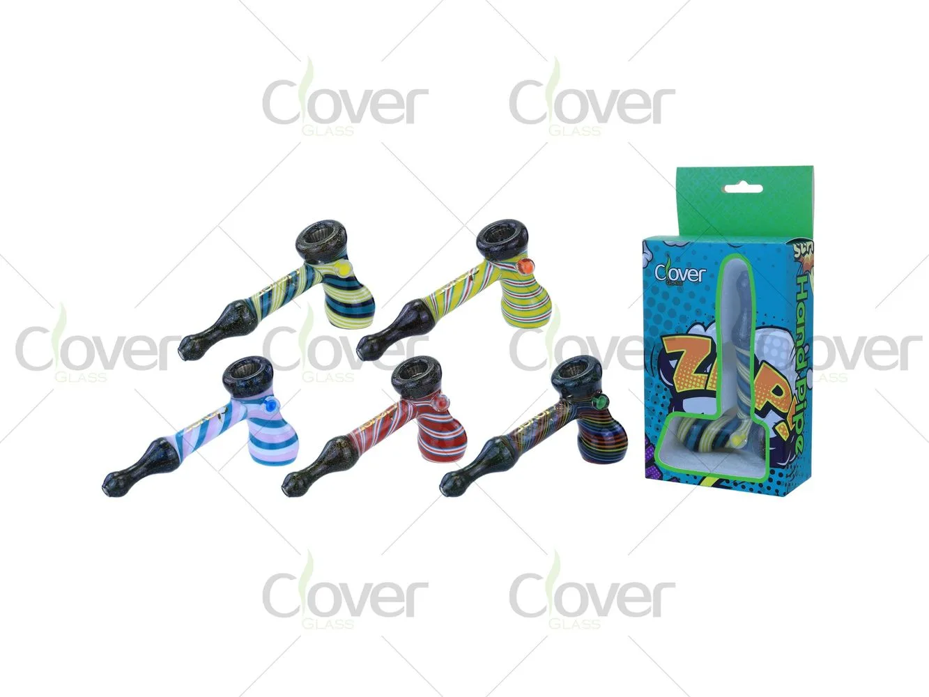 Clover Glass focuses on retail-friendly glass designs that combine recognizable shapes with eye-catching color work.