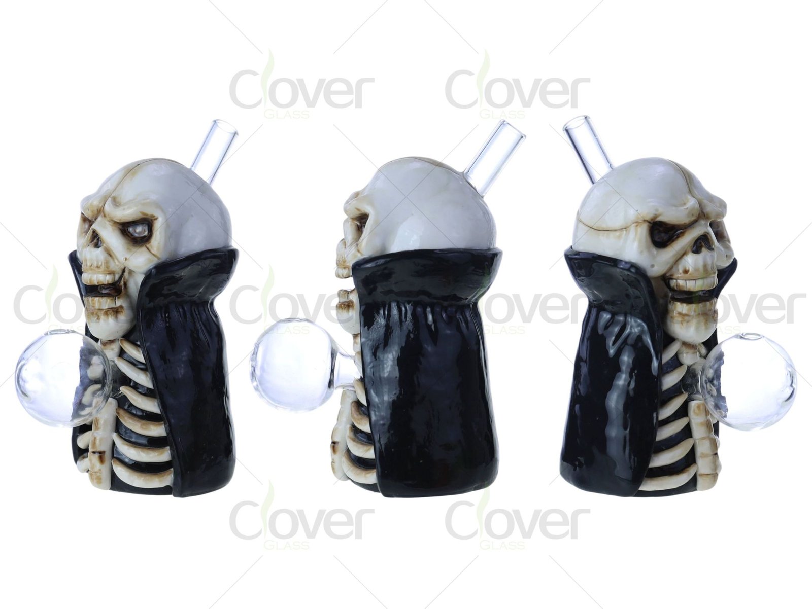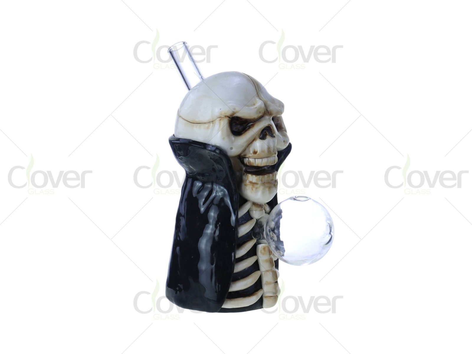 This 4.3-inch Skeleton King oil burner brings dark fantasy to life with a hand-sculpted skeletal form, complete with rib cage details and a high-collar black cloak. The grimacing skull and aged bone finish give it a gothic edge—perfect for Halloween displays, horror collectors, or anyone drawn to the macabre. The front-facing clear oil burner chamber is crafted from borosilicate glass, offering excellent heat resistance and a smooth vapor experience.