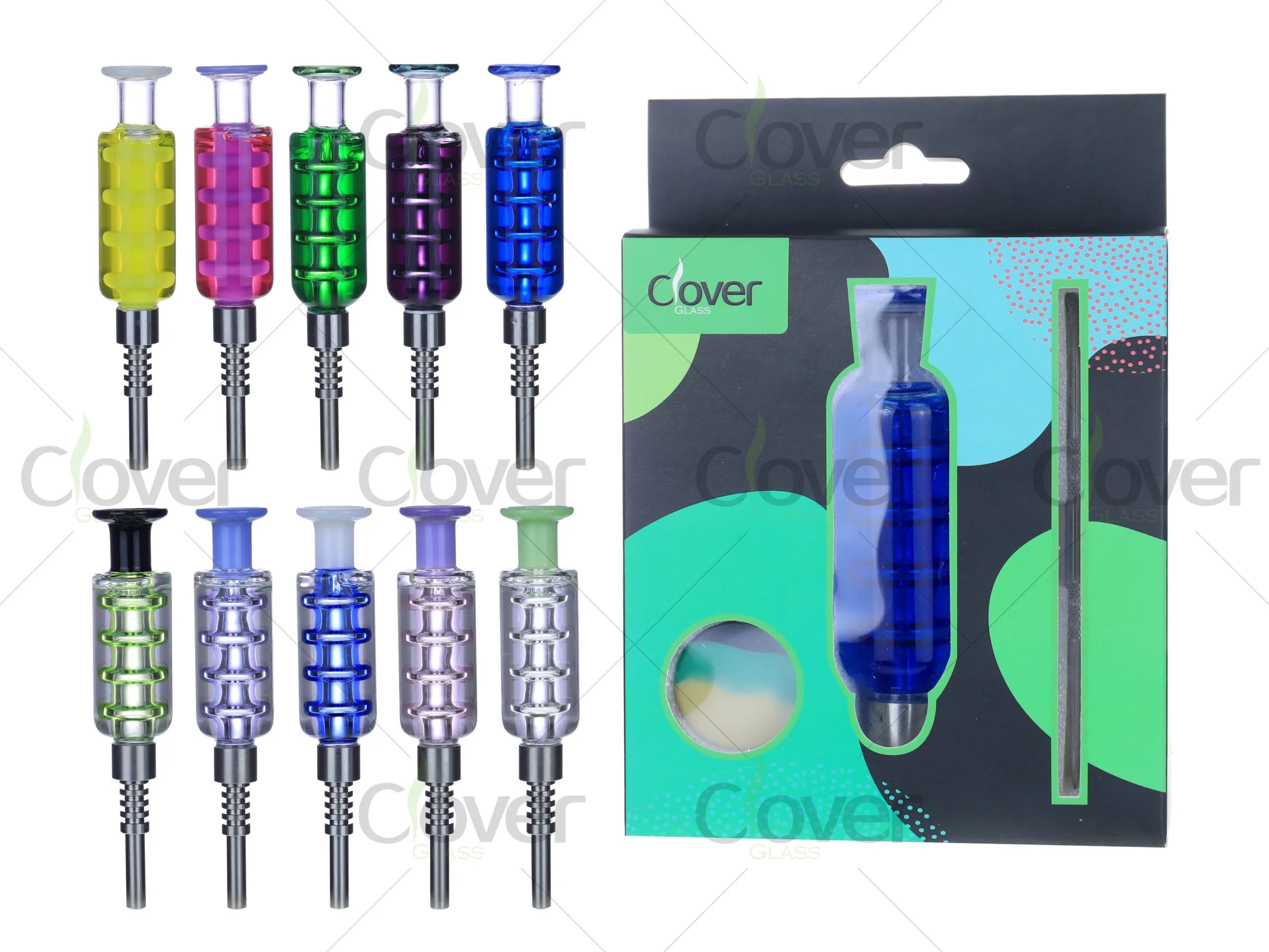 The 4.5 Inch Nectar Collector by Clover Glass is designed for those who appreciate both style and functionality. Featuring a colorful bead design, this compact tool is available in a variety of vibrant colors, including green, yellow, purple, blue, and more. It comes with a 14MM joint and includes everything you need for a smooth, enjoyable dabbing experience: 1 subject, 1 stainless steel tip, 1 cup, and 1 protective box for easy storage and transport.