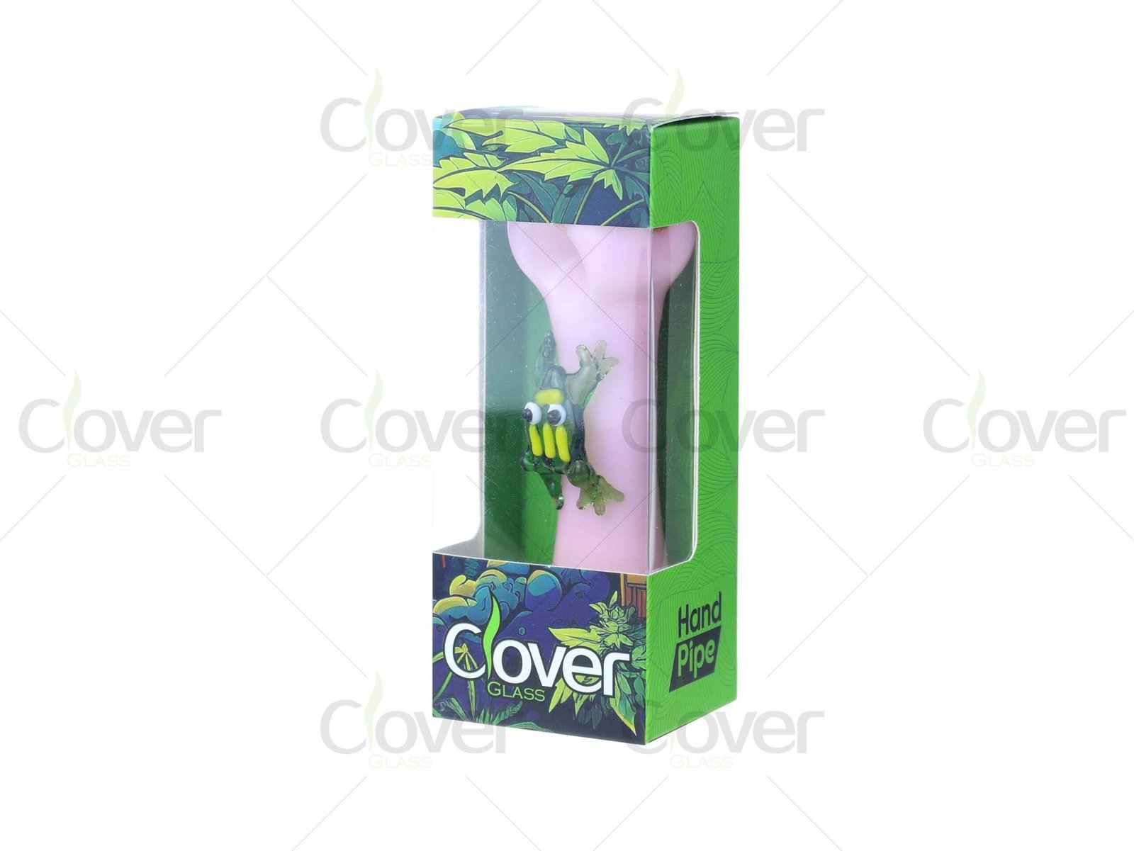 This 4.7 inch glass hand pipe features a playful frog-inspired design, combining smooth pastel glass with detailed hand-applied art accents.