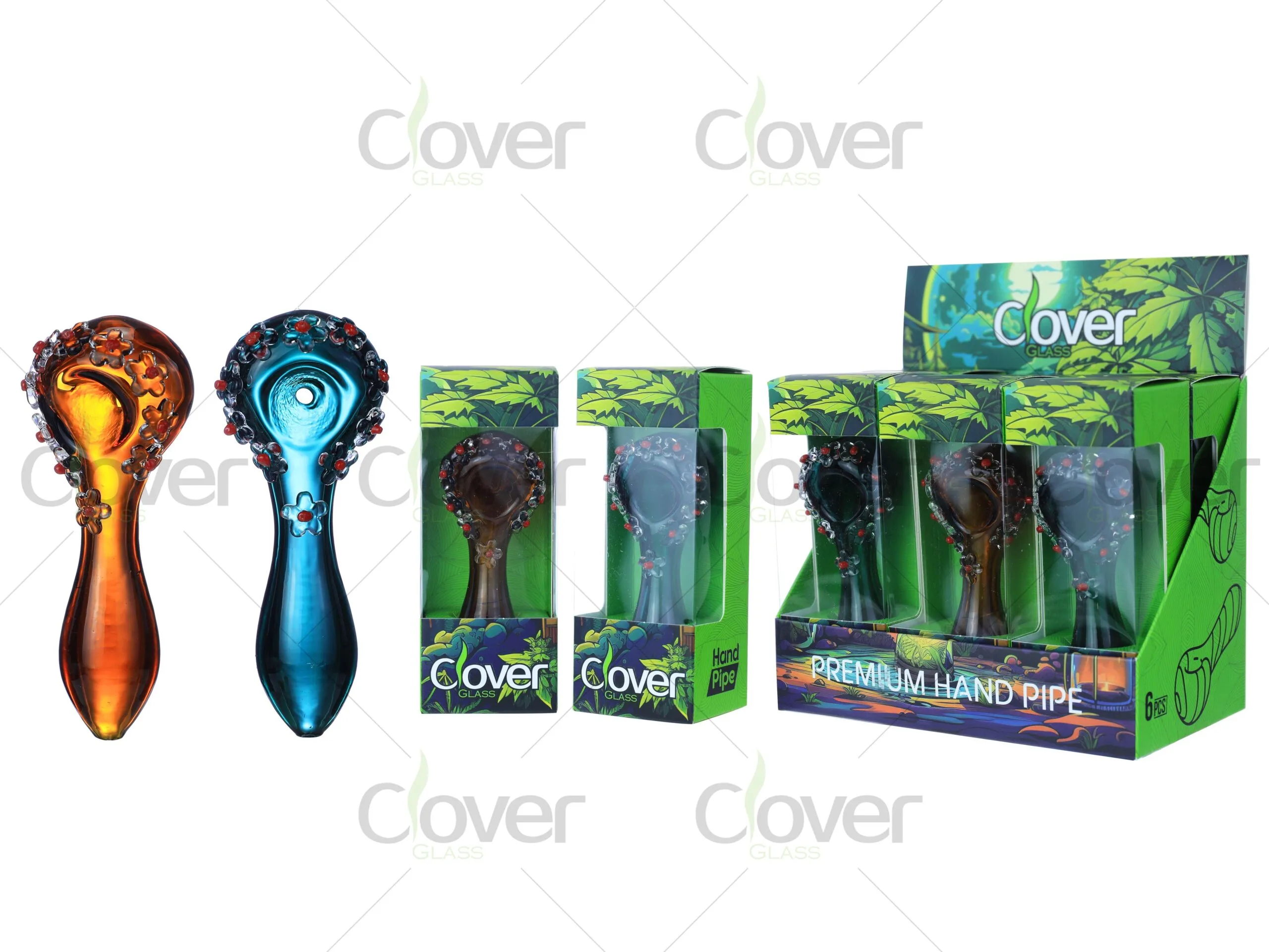 The 4 Inch Glass Hand Pipe by Clover Glass combines a floral design with a clear glass body, offering both style and functionality. The delicate flower patterns add a unique and artistic touch to the pipe, making it not only a smoking tool but also a decorative piece. With a compact size of 4 inches, it is perfect for those who enjoy portability without sacrificing aesthetic appeal.