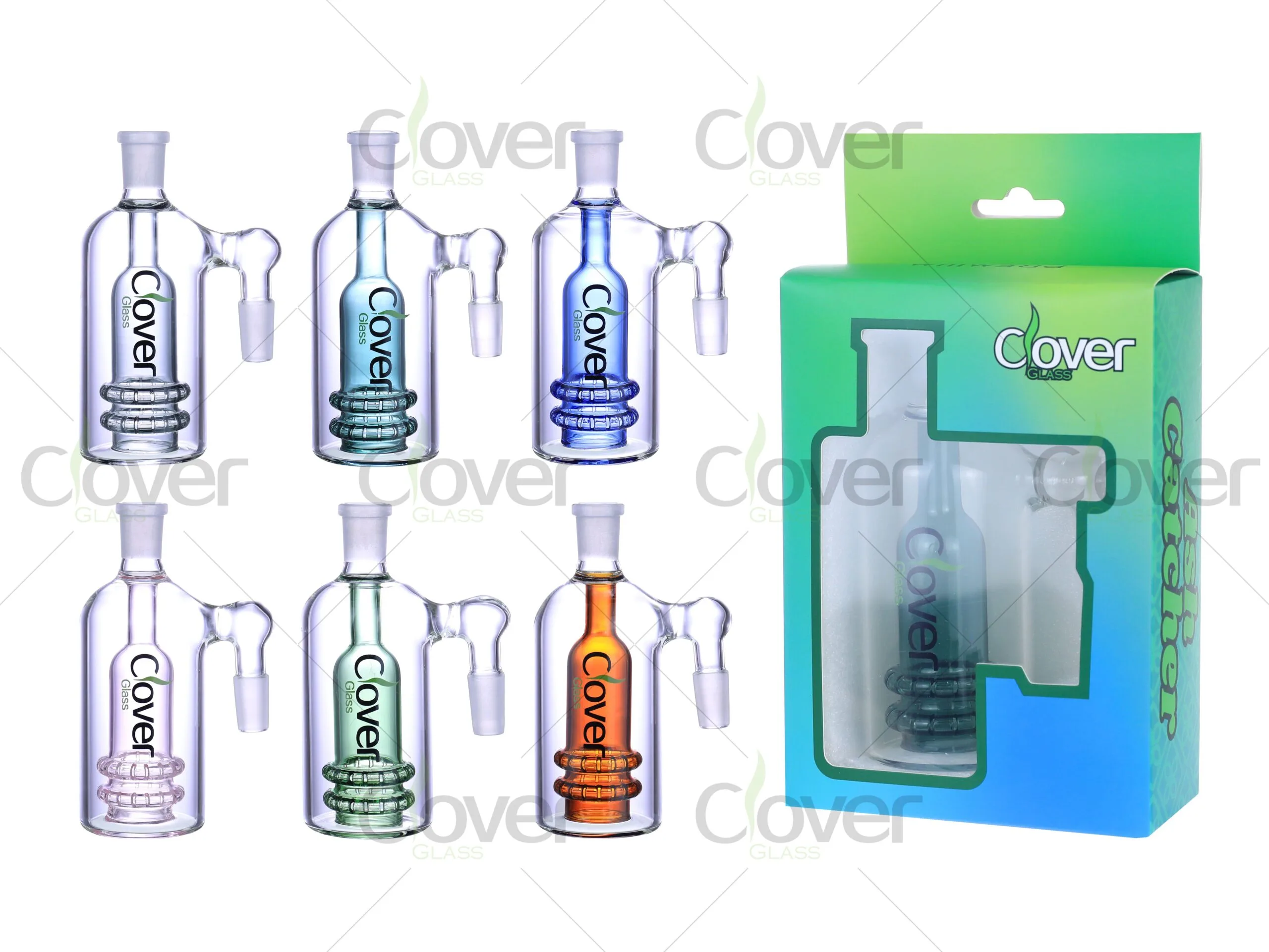 The Clover Glass 5.0-inch Glass Ash Catcher is designed to elevate your smoking experience with its stylish design and efficient filtration. Standing at 5.0 inches, this ash catcher fits most rigs, providing additional filtration that helps keep your pipe cleaner for longer. Available in a variety of vibrant colors, including blue, green, purple, and orange, it adds a touch of personality to your setup.