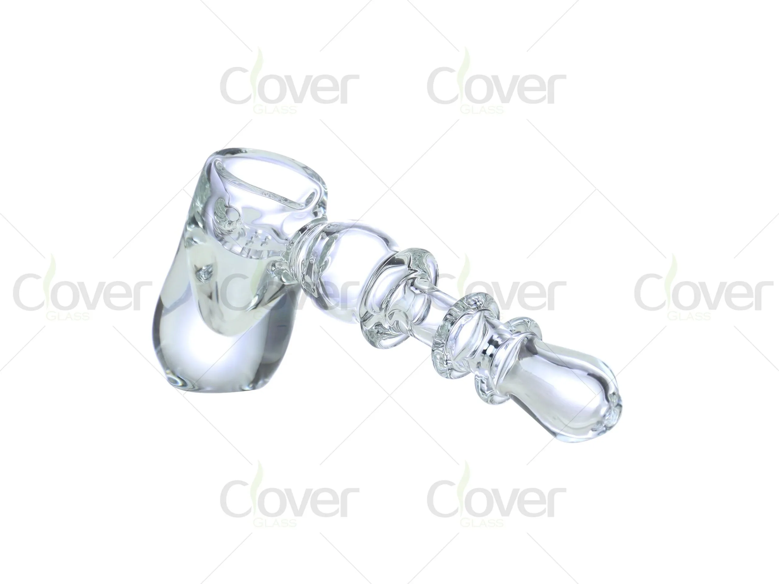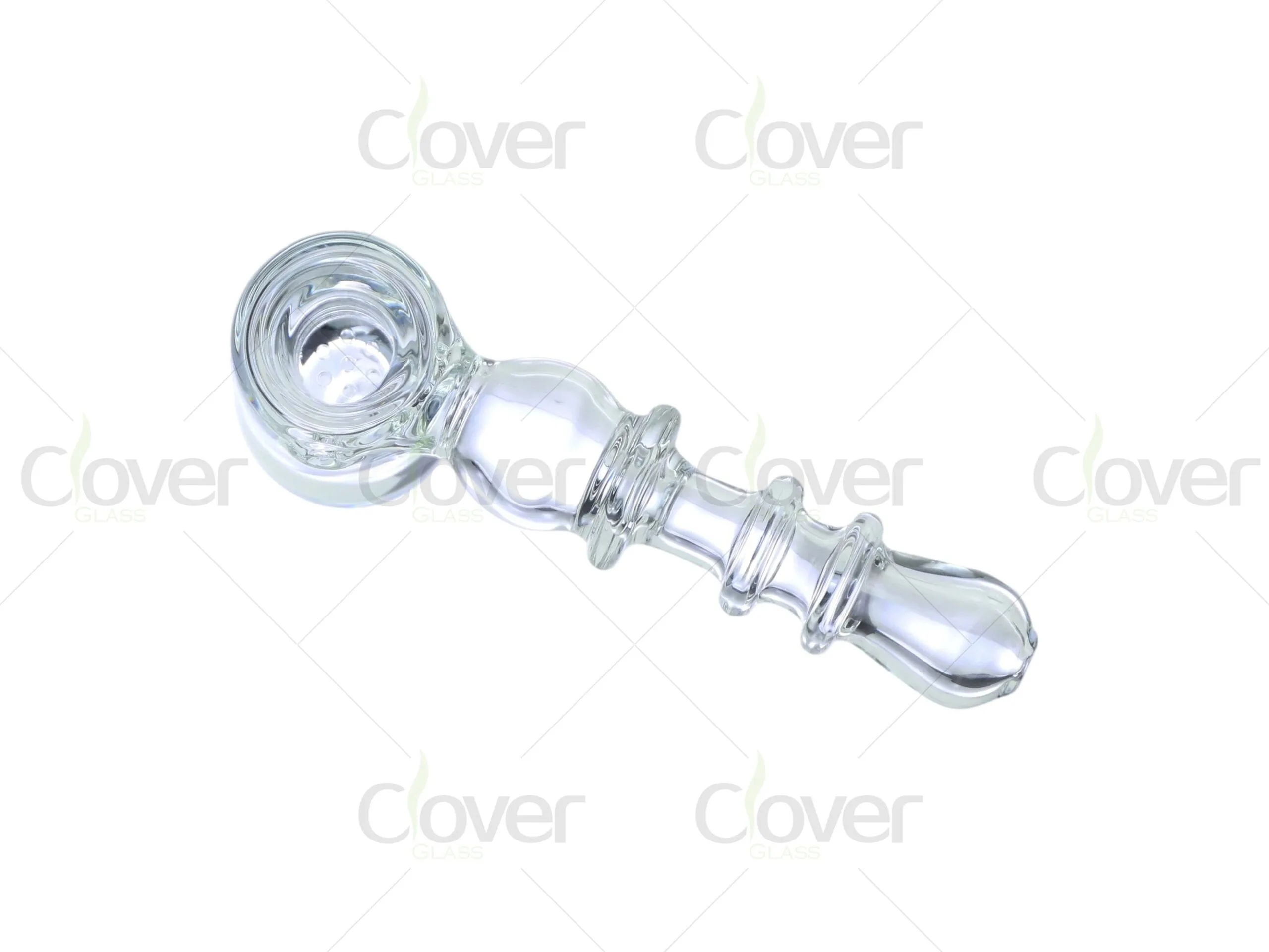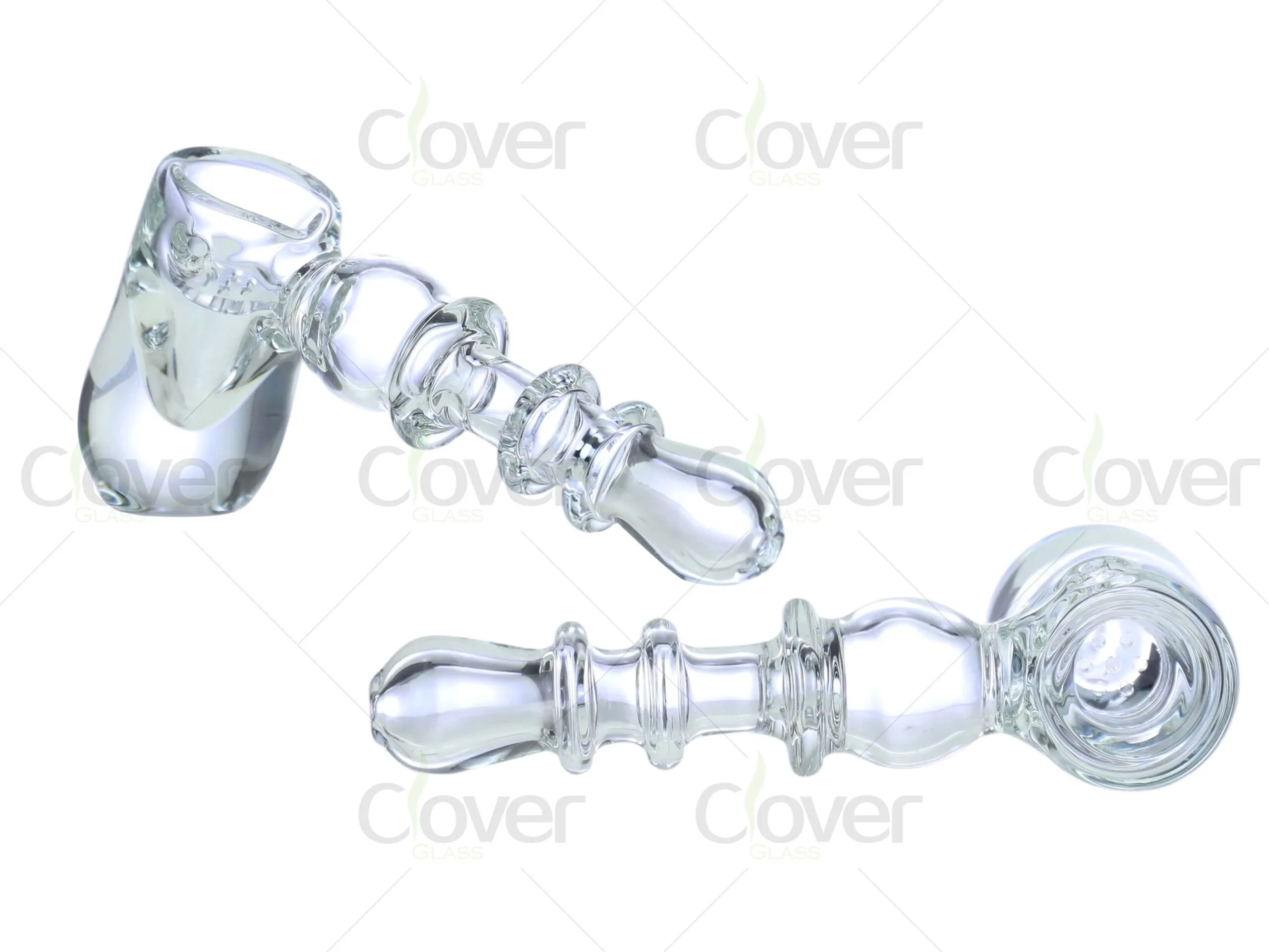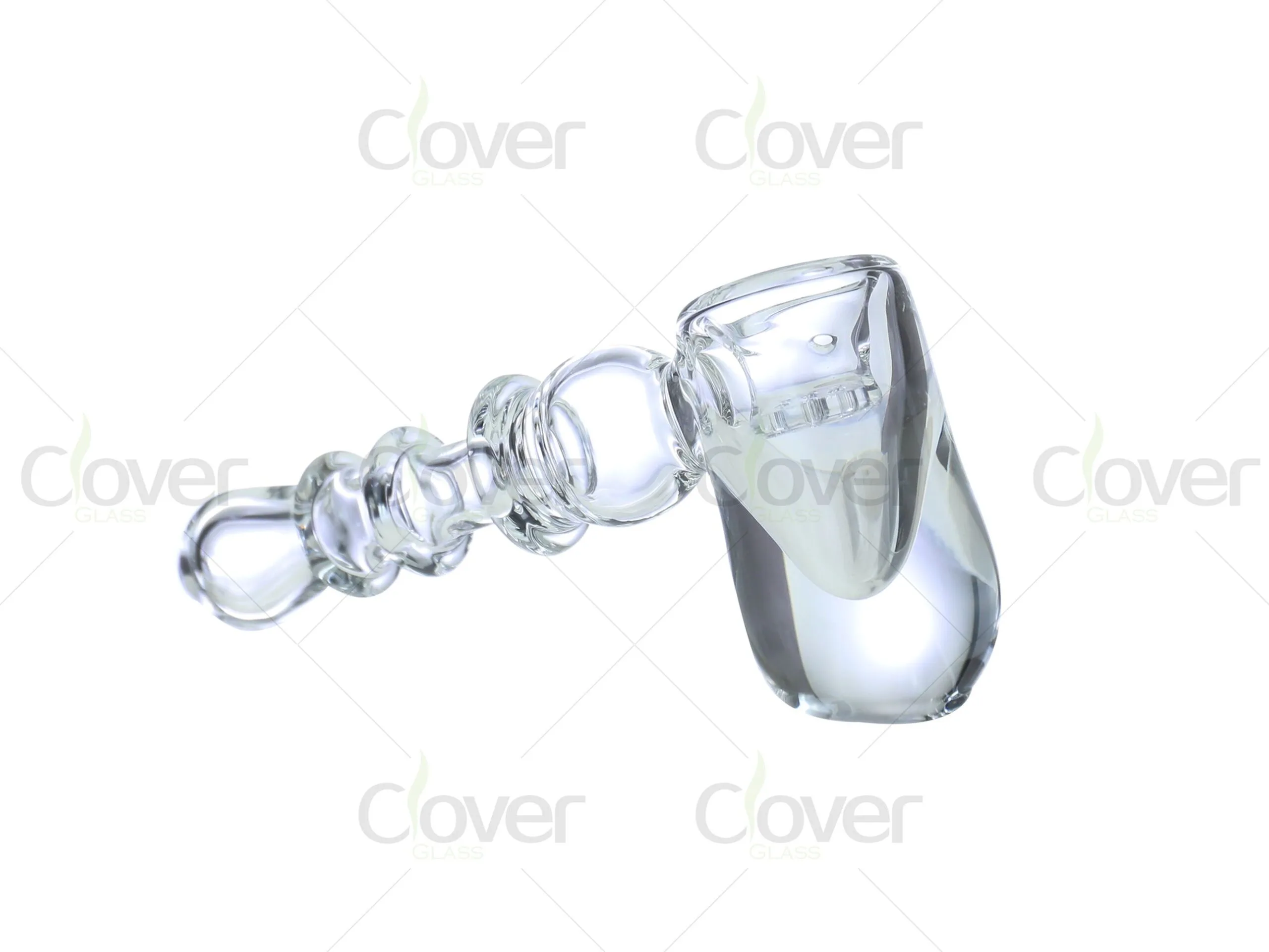The pipe’s sculpted grip area includes raised glass rings, improving hand comfort and control during use. Its clear glass finish highlights the internal structure and craftsmanship, making it suitable for both functional use and clean retail display.