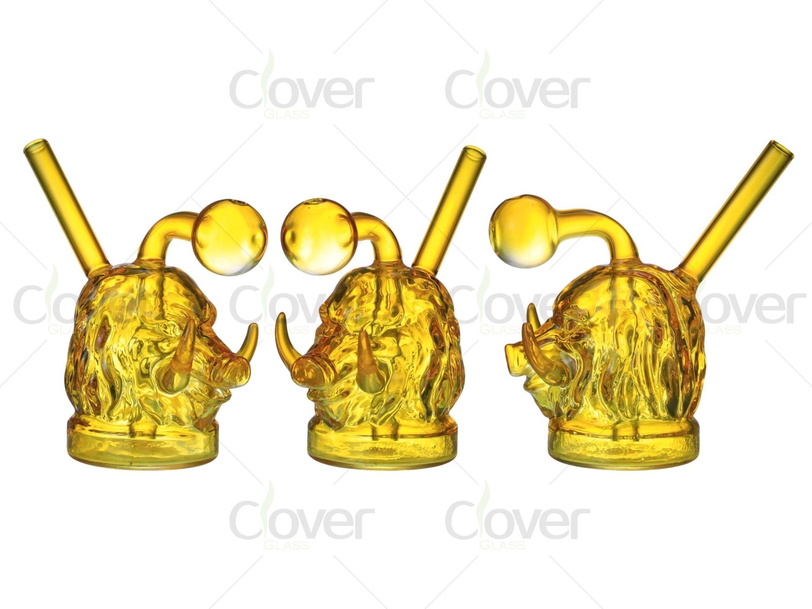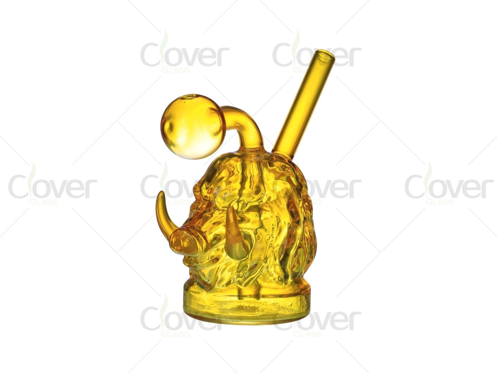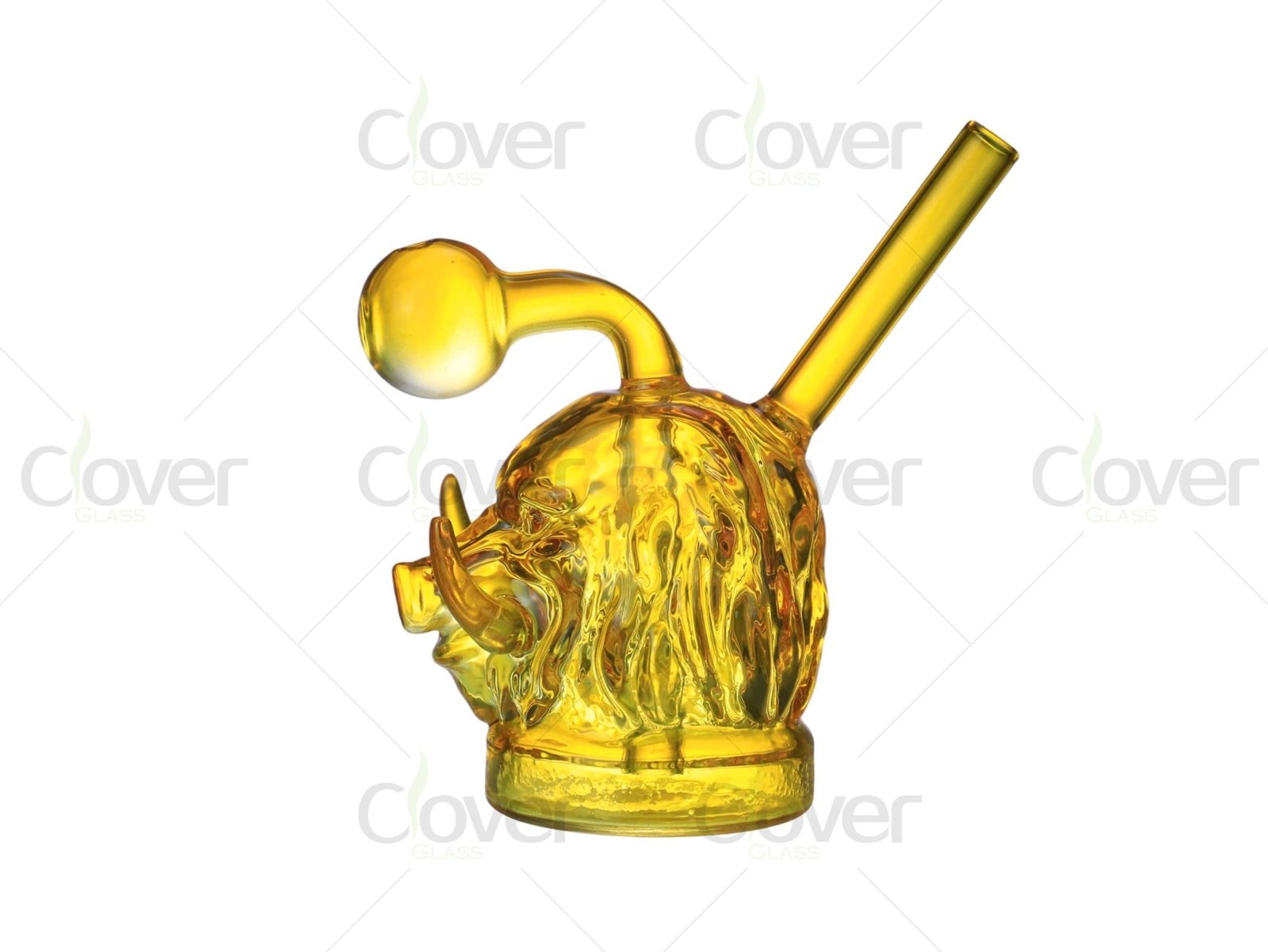 Unleash primal energy with this 5.1-inch wild boar head oil burner pipe, hand-sculpted from heat-resistant borosilicate glass. Featuring textured fur detailing, curved tusks, and a fierce snout, this piece brings bold animalistic character to any smoke shop shelf. The upward-slanted neck and clear globe burner chamber ensure both form and function, while the translucent amber-yellow tone (with mixed colors available) makes each piece stand out as a collectible.