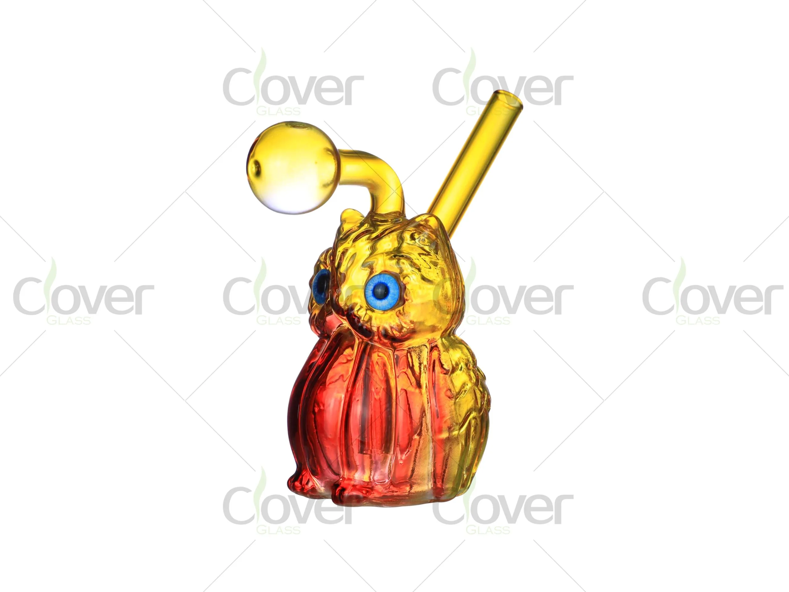 Bring charm and character to your shelf with this 5.12-inch owl-shaped oil burner pipe, a playful yet practical piece made for concentrate lovers. Designed in the shape of a wide-eyed owl with sculpted feathers and colorful glass detailing, this piece doubles as a collectible and a fully functional burner. The angled side tube and round bowl head make it easy to use, while the solid borosilicate body ensures long-term durability.
