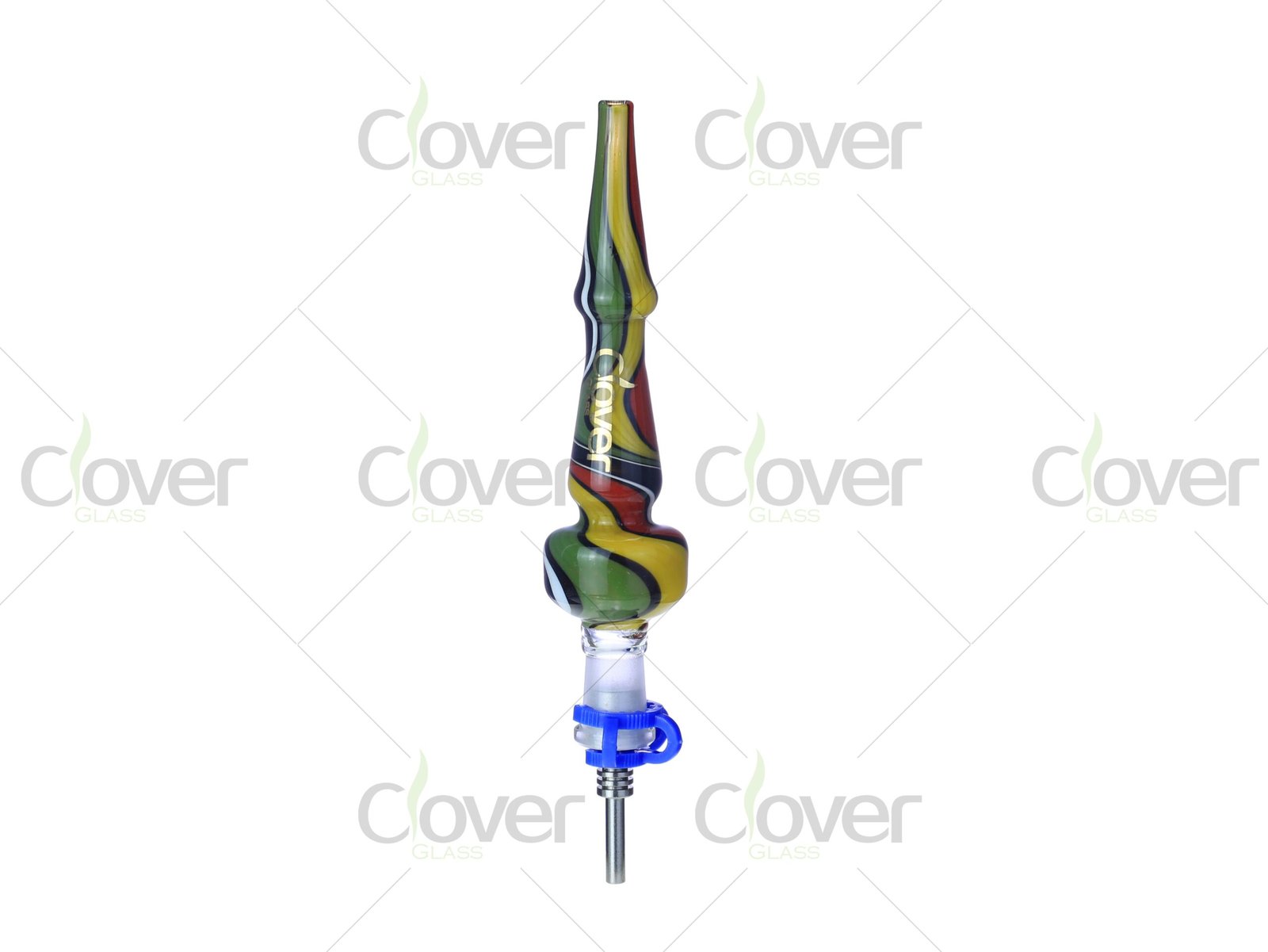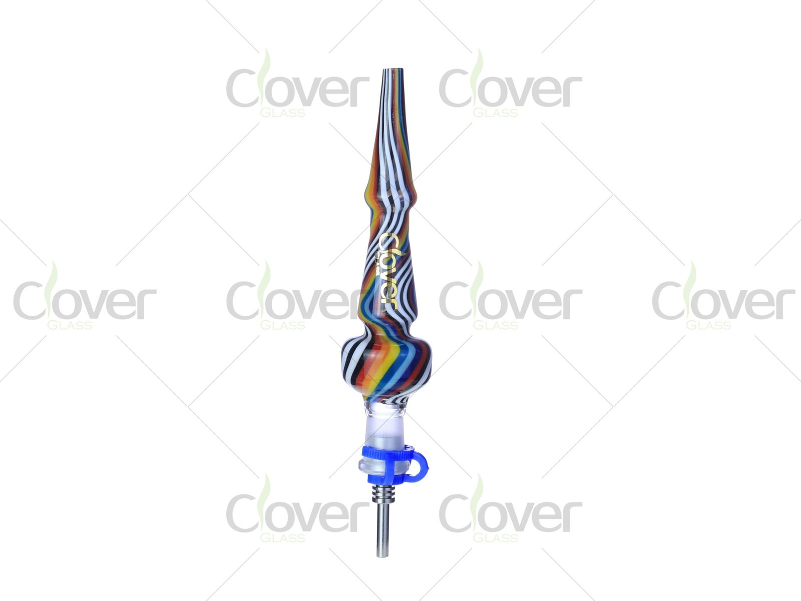 The 5.2 Inch Colorful Stripe Glass Dab Straw Nectar Collector by Clover Glass features a bold, multicolor striped design that instantly catches the eye.