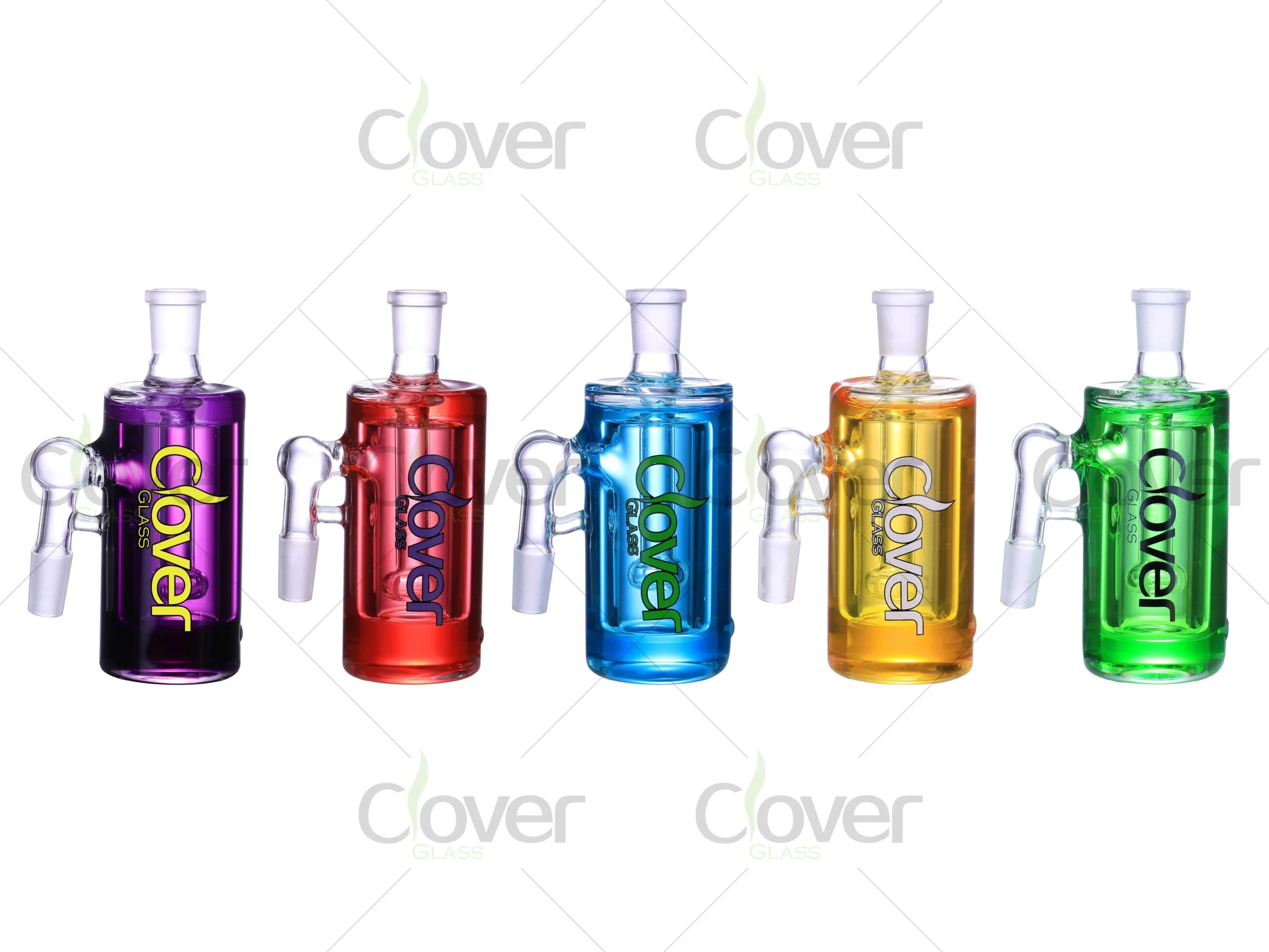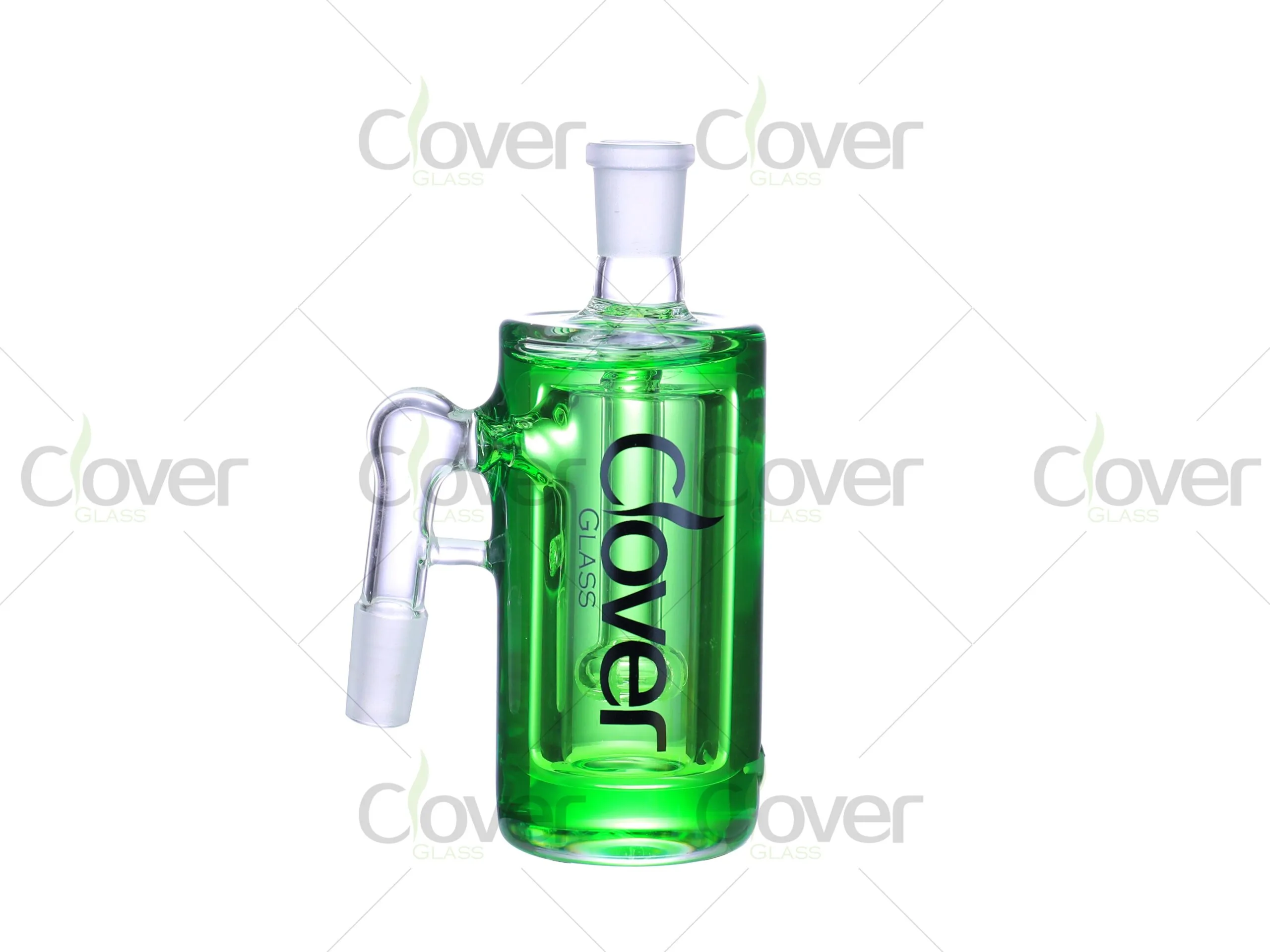 The Clover Glass 5.3-inch Glycerin Coil Ash Catcher is designed to enhance your smoking experience with its superior cooling power. Standing at 5.3 inches, this ash catcher features glycerin coils inside, which provide optimal cooling by trapping cold glycerin to deliver smoother, cooler hits. Available with a 14mm/18mm male joint, it fits a wide range of rigs and ensures versatility for different setups. With a 5mm thick glass construction, it guarantees durability and longevity, while the 90° angle adds ease of use and stability.