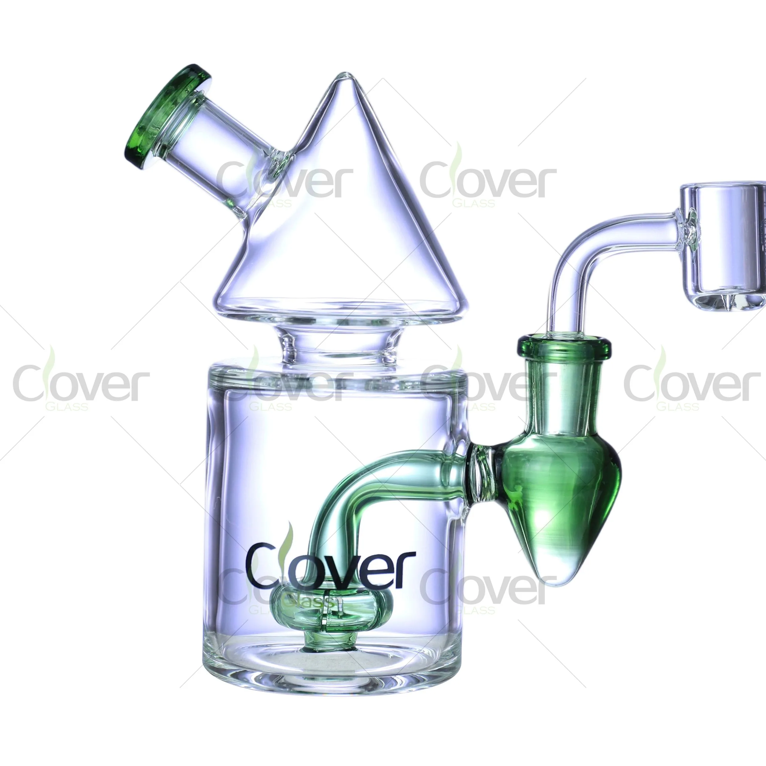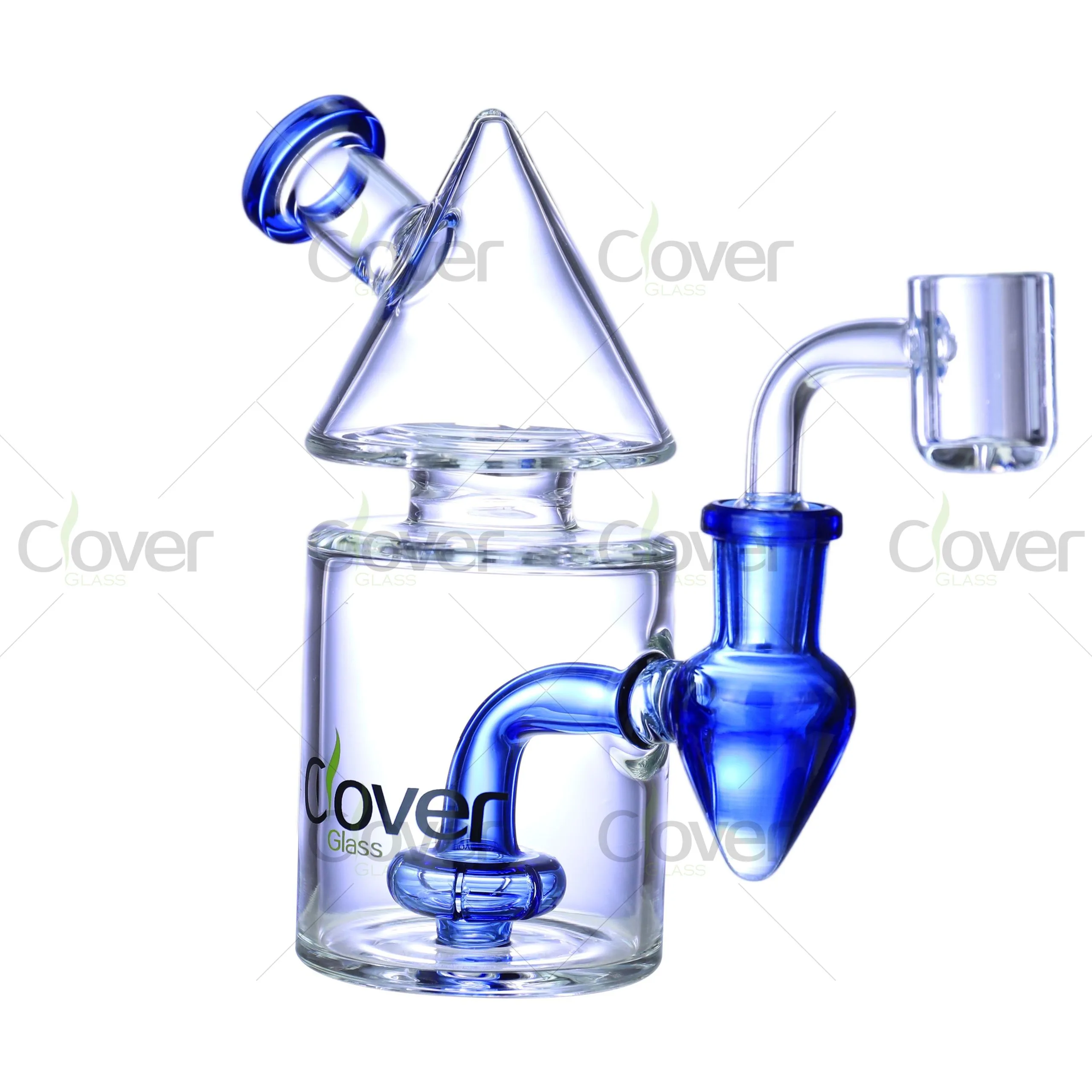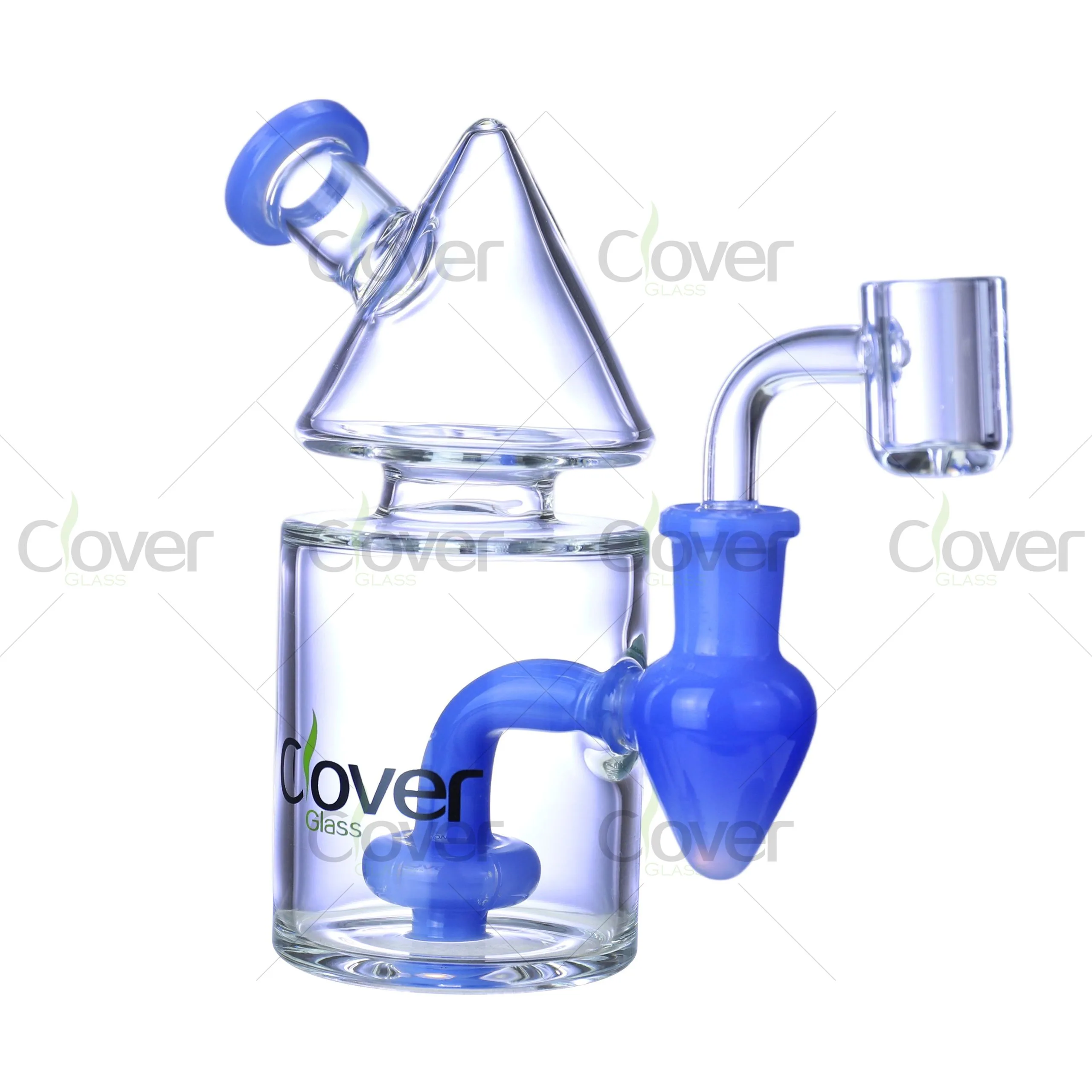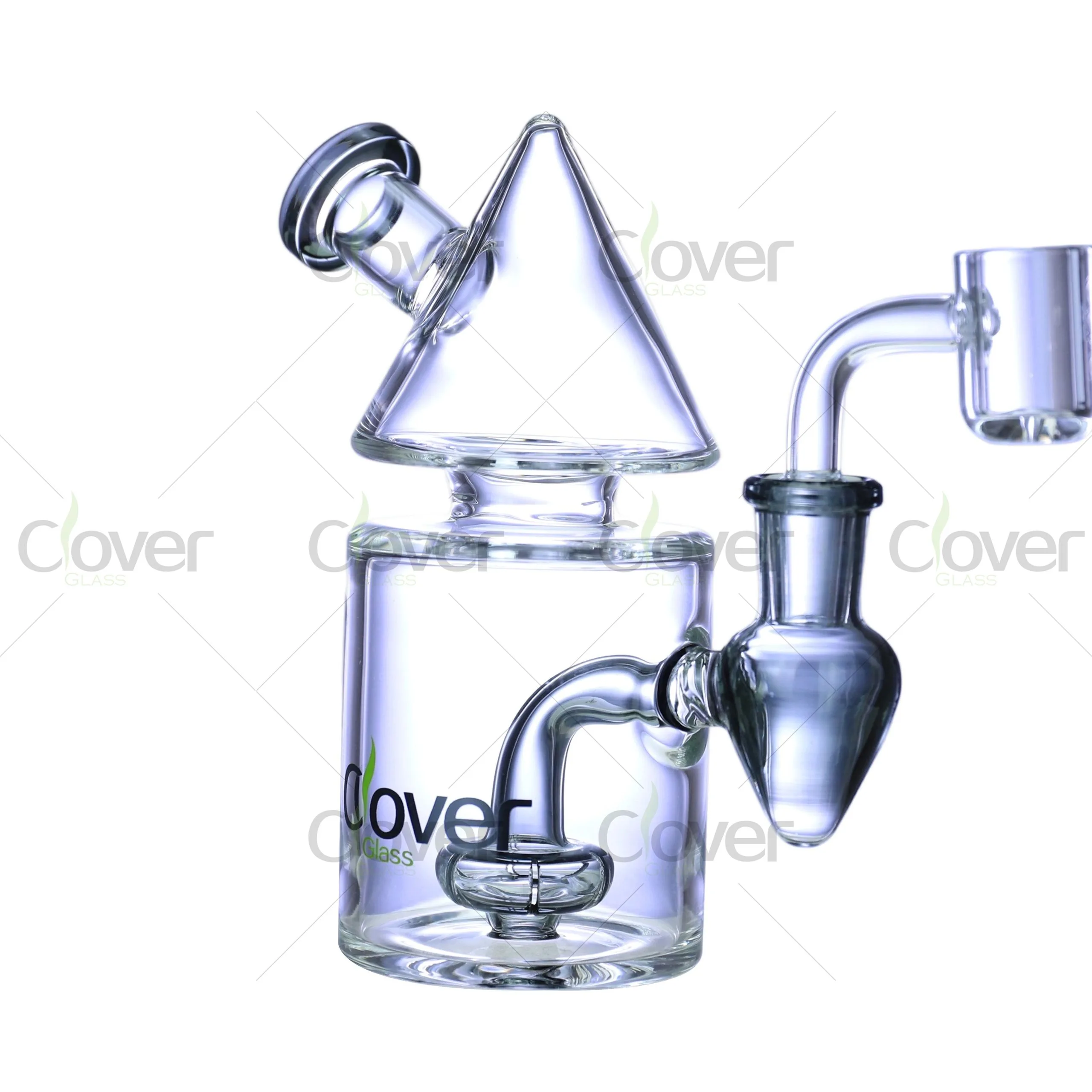 This 5.5" Cone Top Dab Rig by Clover Glass brings futuristic form and functional power into one compact design. Inspired by geometric aesthetics, the cone-shaped chamber not only gives the piece a visually striking silhouette but also helps funnel smoke effectively for a smoother hit.
