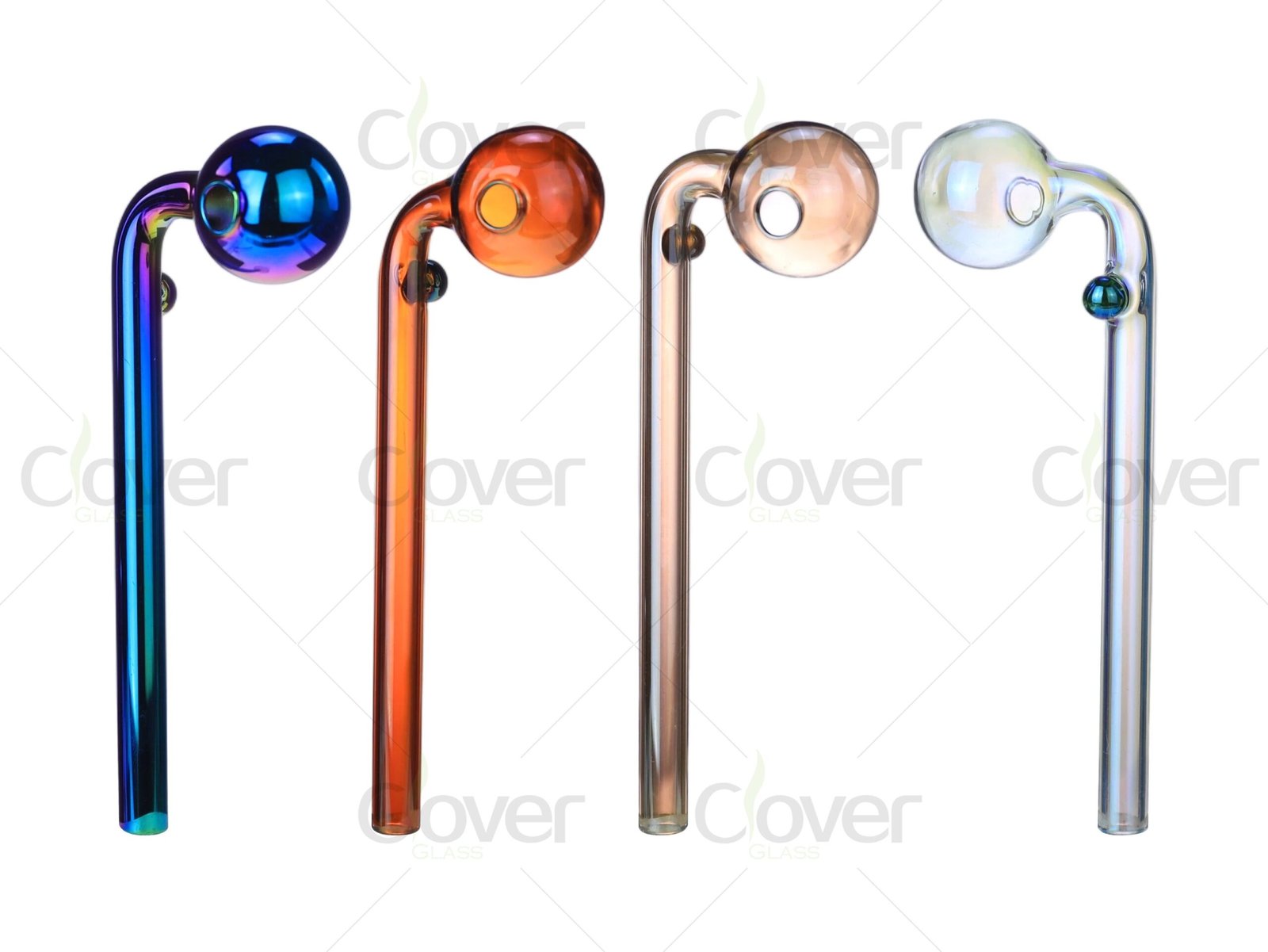Elevate your experience with the 5.6-inch Colored Glass Oil Burner Pipe, featuring a vibrant, curved-neck design and a perfectly rounded bubble bowl for optimal heat distribution. This oil burner is not only a functional tool but also a statement piece, offered in stunning finishes including iridescent rainbow, amber orange, rose gold, and translucent clear.
