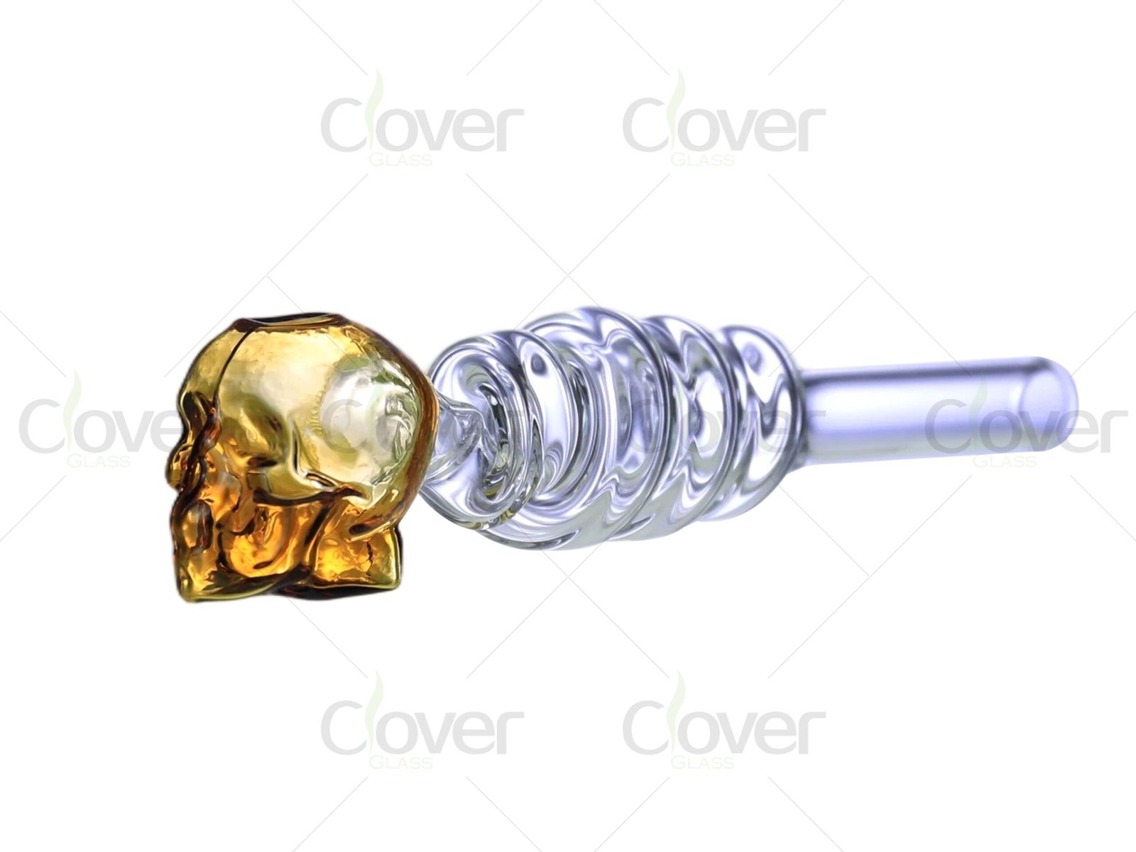 Discover the perfect fusion of art and utility with our 5.6" Skull Head Oil Burner Pipe, featuring a bold skull-shaped head and a striking twisted coil stem. Handcrafted from high-grade borosilicate glass, this unique design not only catches the eye but also improves cooling and airflow for a smoother experience.
