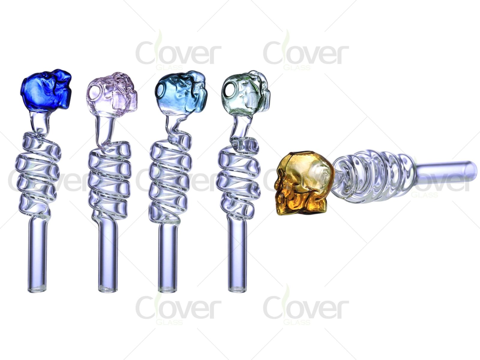 5.6″ Skull Head Oil Burner Pipe with Twisted Coil Design – Borosilicate Glass in Multiple Colors