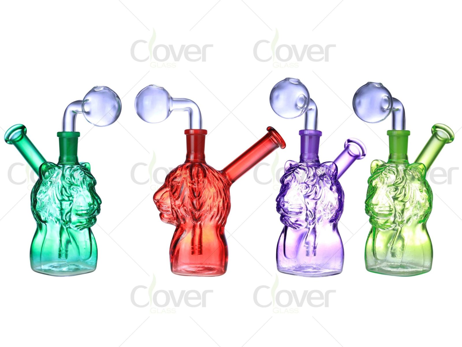 Roar with style using this 5.9-inch lion head oil burner pipe, featuring a beautifully sculpted lion bust that blends regal design with practical smoking use. Made from premium borosilicate glass, this piece includes a clear round burner chamber and a slanted neck for easy handling. The 3D lion head detailing adds a bold, artistic edge, while the mixed translucent colors—including green, red, purple, and more—make each piece stand out on display.