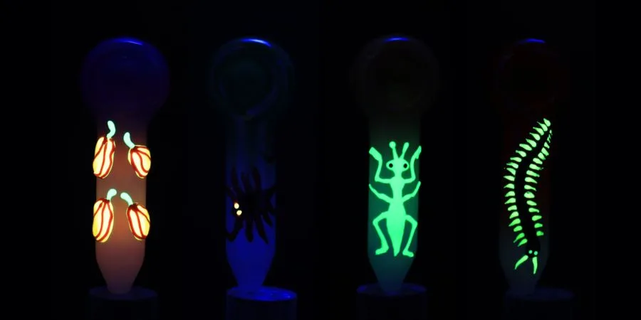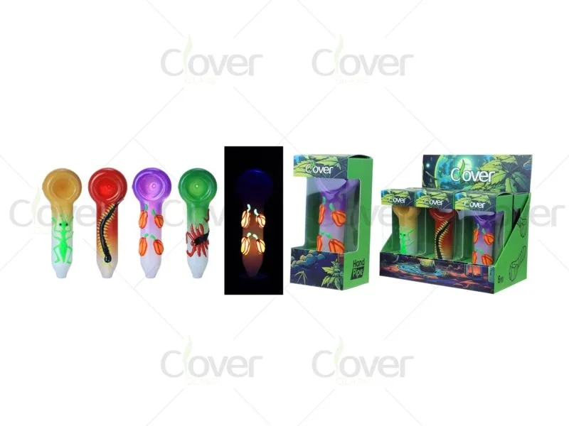 This 5-inch glass hand pipe features a playful insect-inspired luminous design, combining artistic details with eye-catching glow effects. Designed for retail visibility and easy display, it’s a strong choice for smoke shops looking to add novelty items that sell fast.