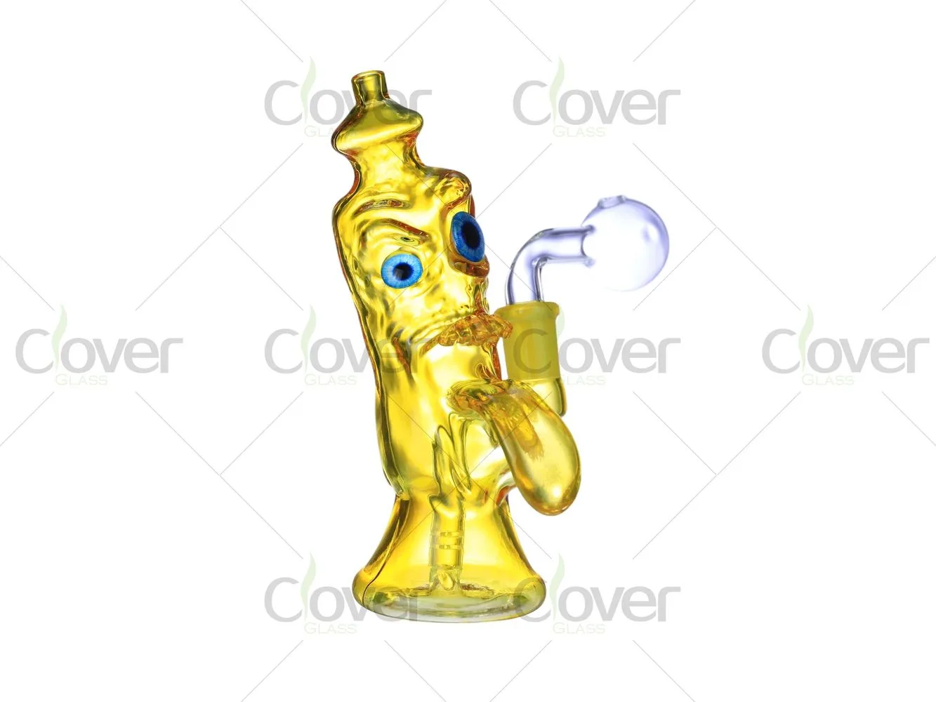 This oil burner pipe features a playful one-eyed monster–shaped glass body, designed with an exaggerated single eye, expressive mouth details, and a cartoon-style stance. The sculpted exterior gives the piece a strong novelty look while the widened base helps provide stable placement on flat surfaces.