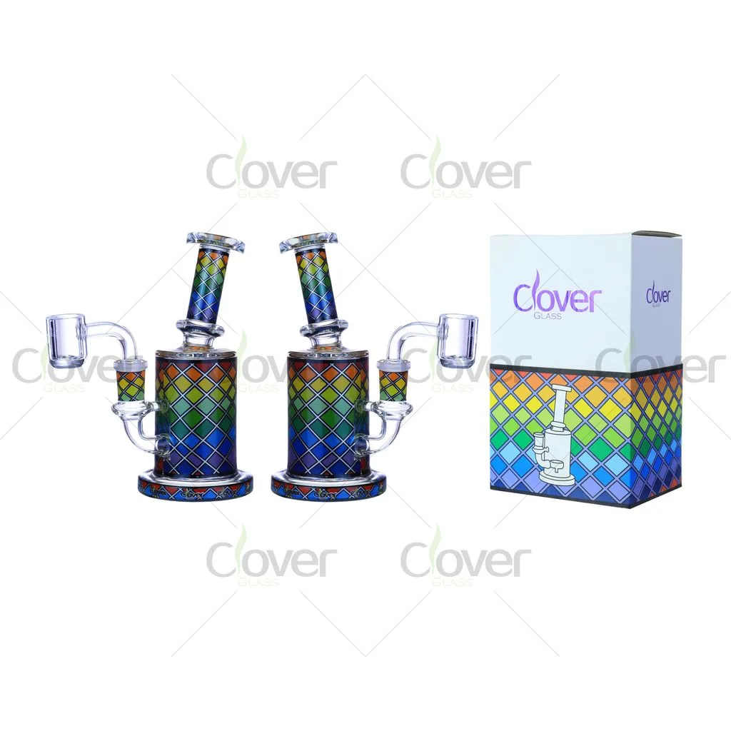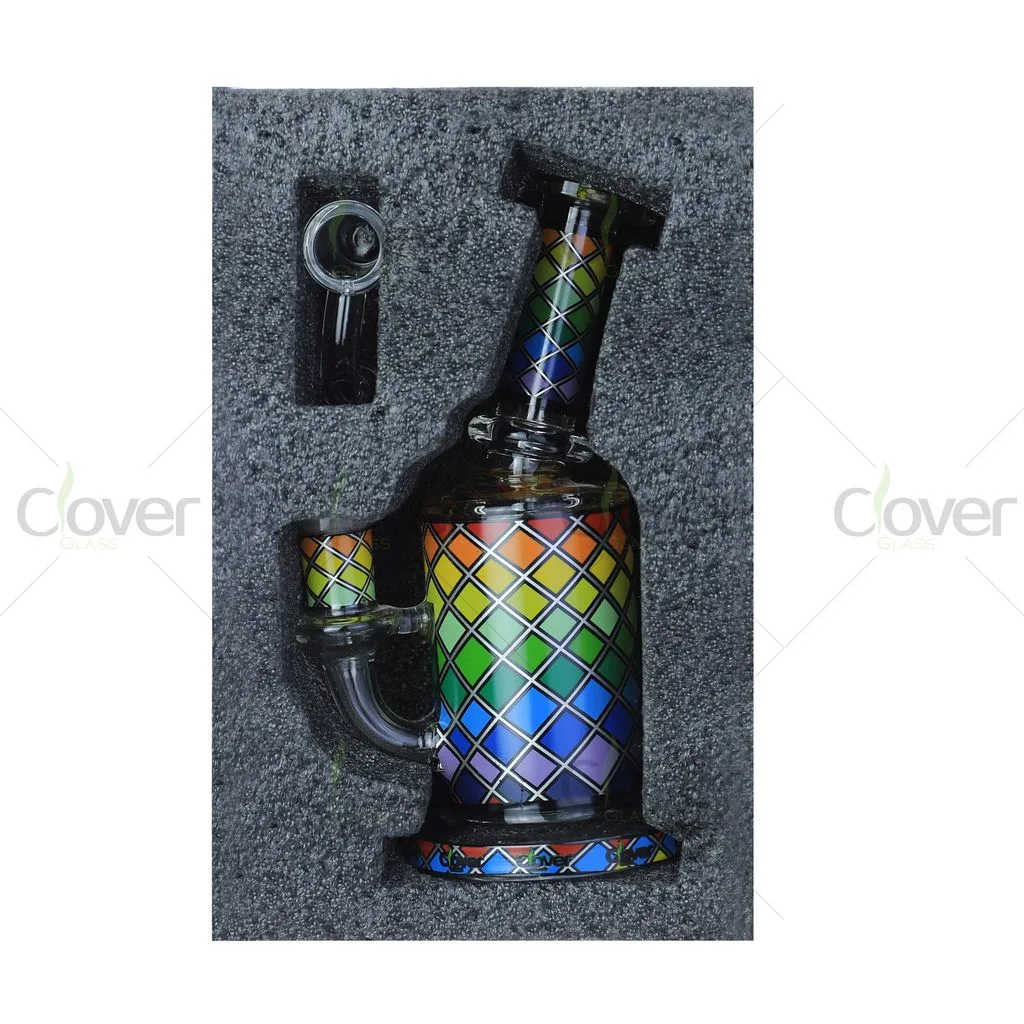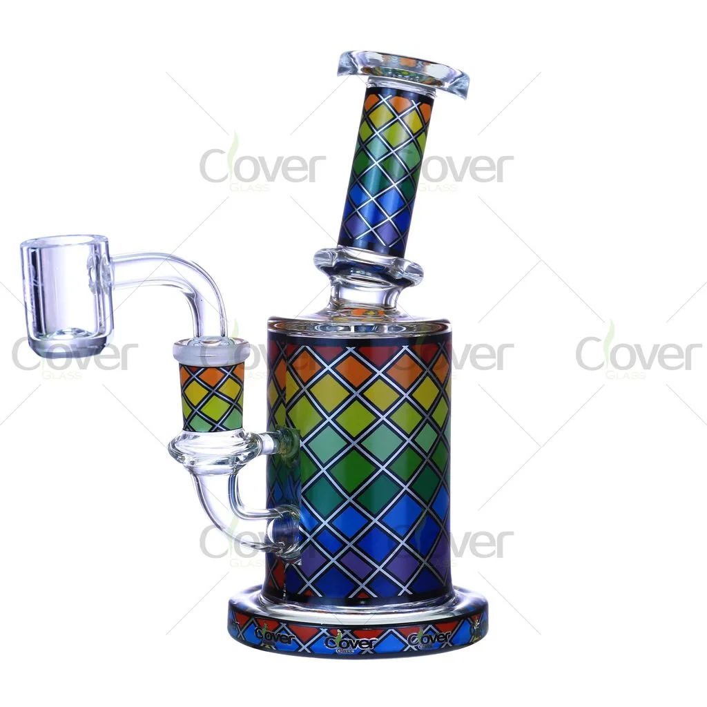 This 6.10-inch dab rig features a bold multi-color lattice pattern wrapped around a compact straight-body design, combining strong visual impact with reliable daily functionality.