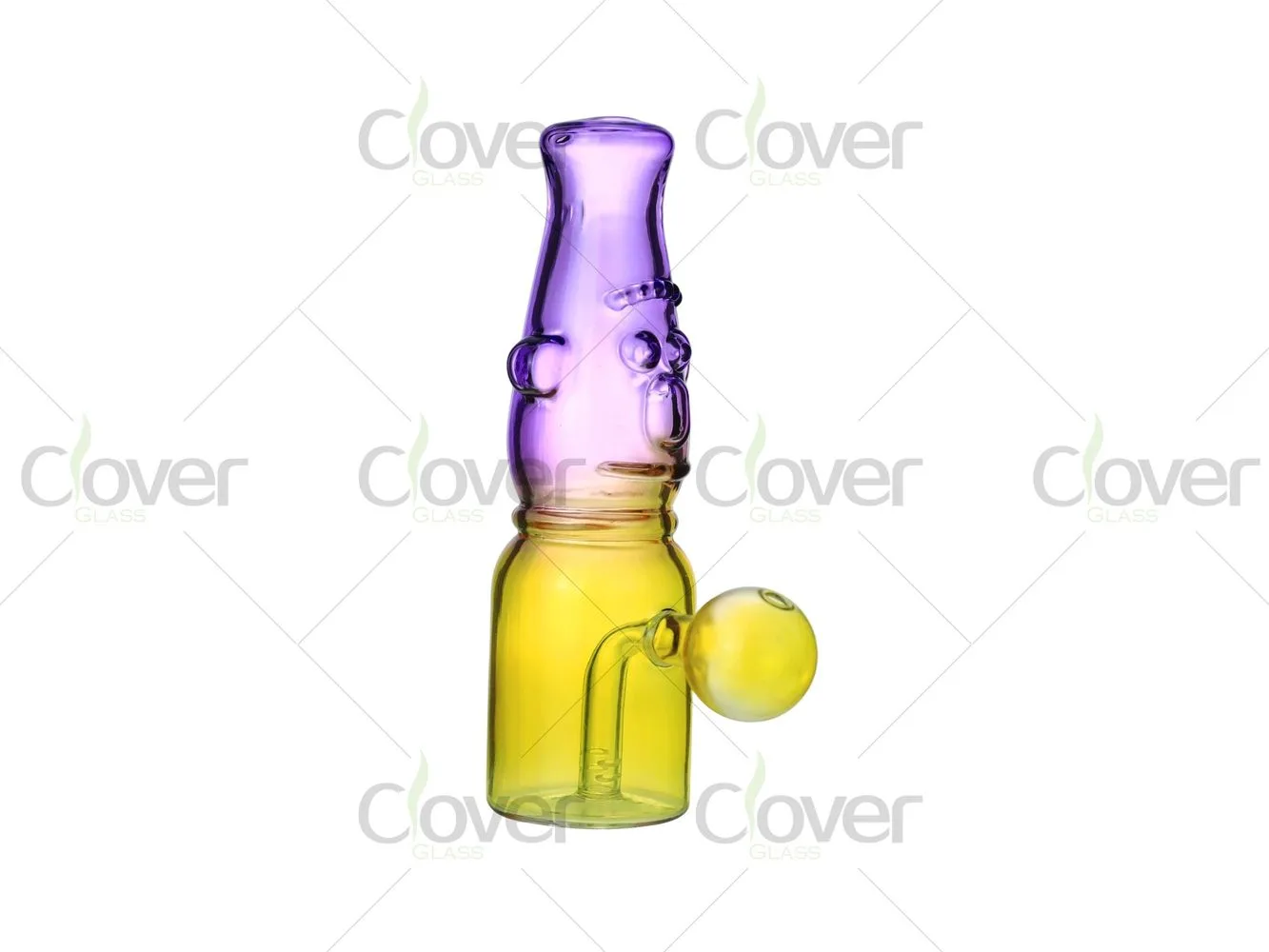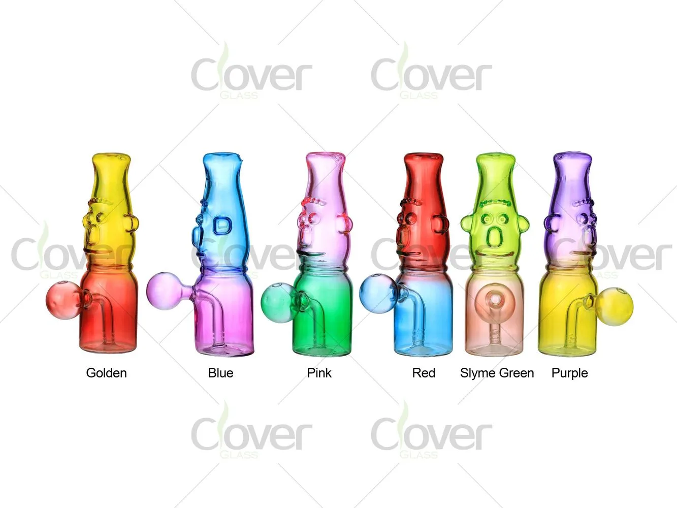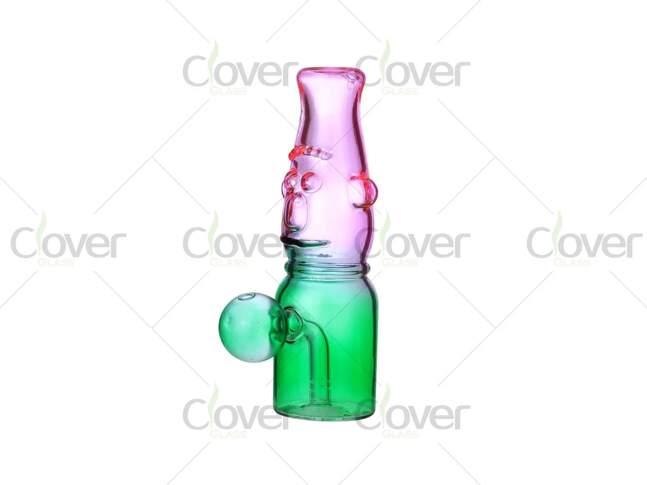 This oil burner pipe features a tall, stylized face-shaped glass body paired with a rounded base chamber, delivering a playful look with functional structure. The elongated upper section showcases molded facial details, adding visual character while providing a comfortable grip during use.